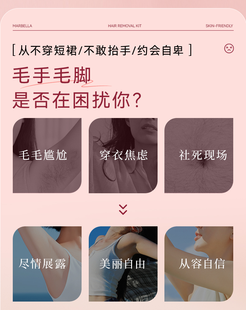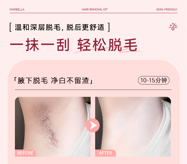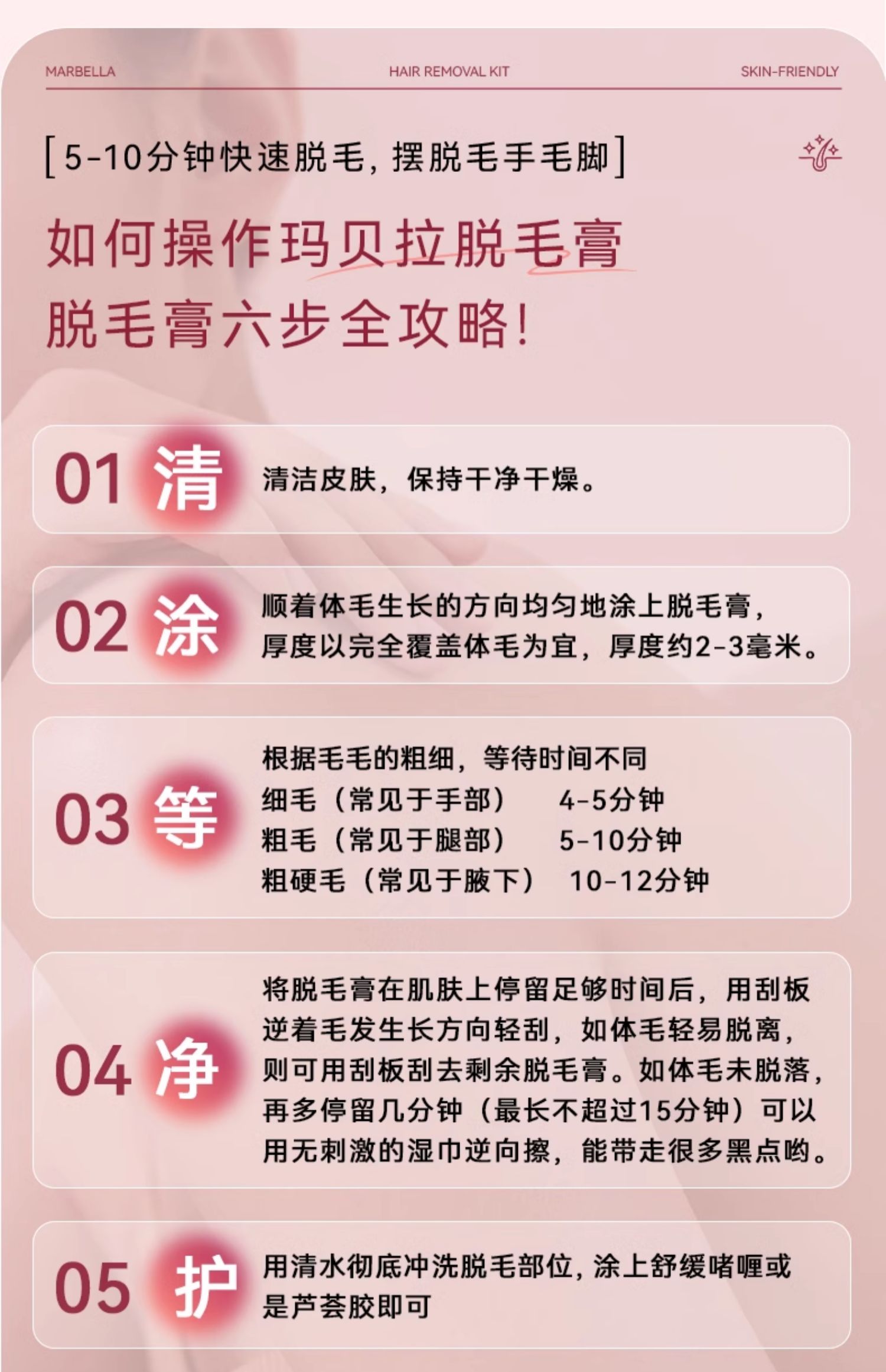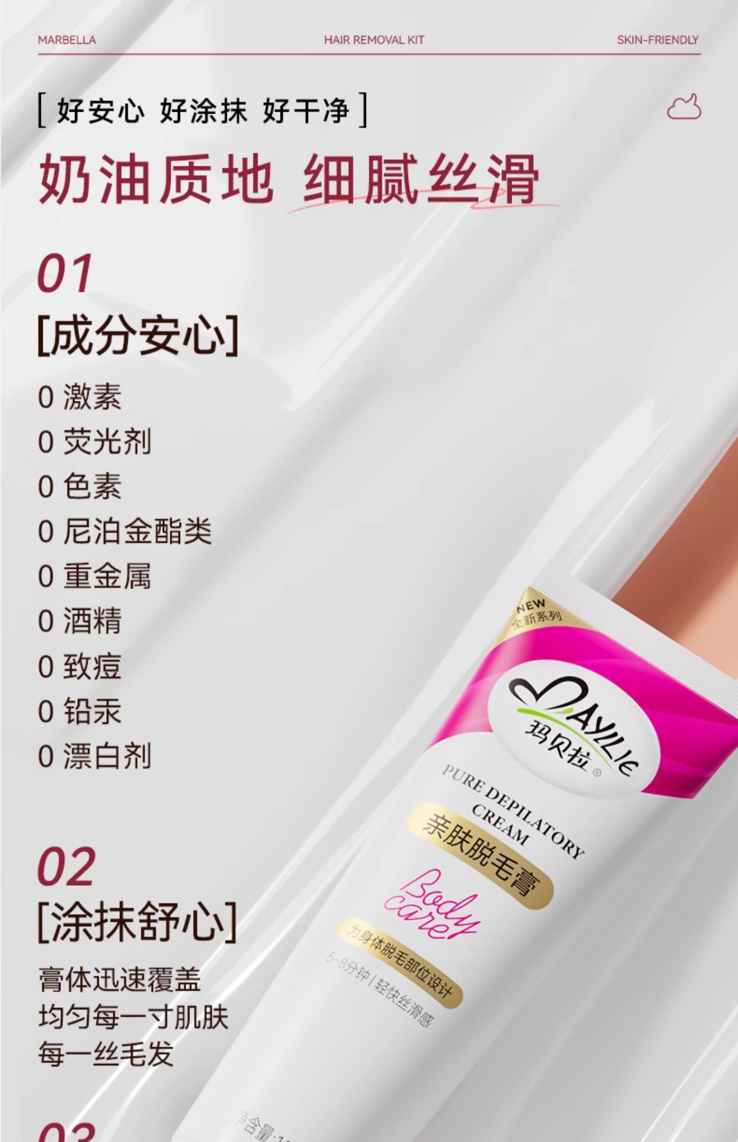 【私密脱毛】玛贝拉亲肤脱毛膏套装(脱毛膏30g+舒润精华啫喱15g)温和男女士腋下腿毛四肢手臂私密除毛脱毛学生
