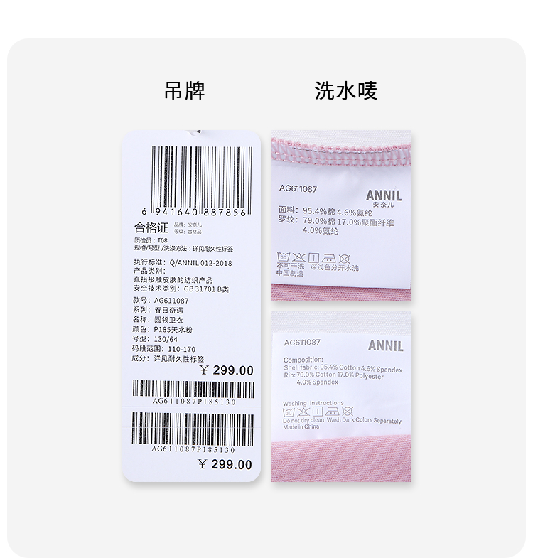 【实体店同款】女童圆领卫衣春季新款安奈儿童装AG611087
