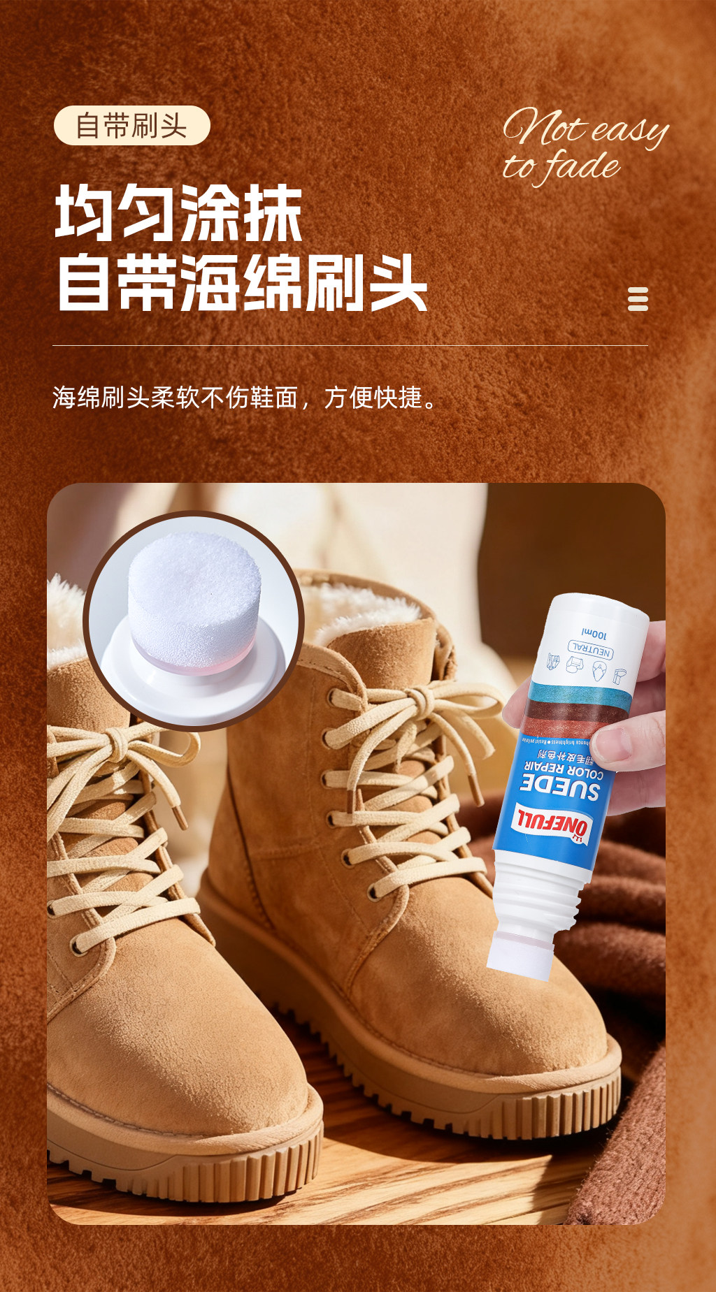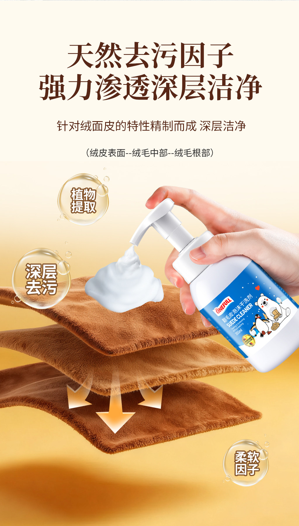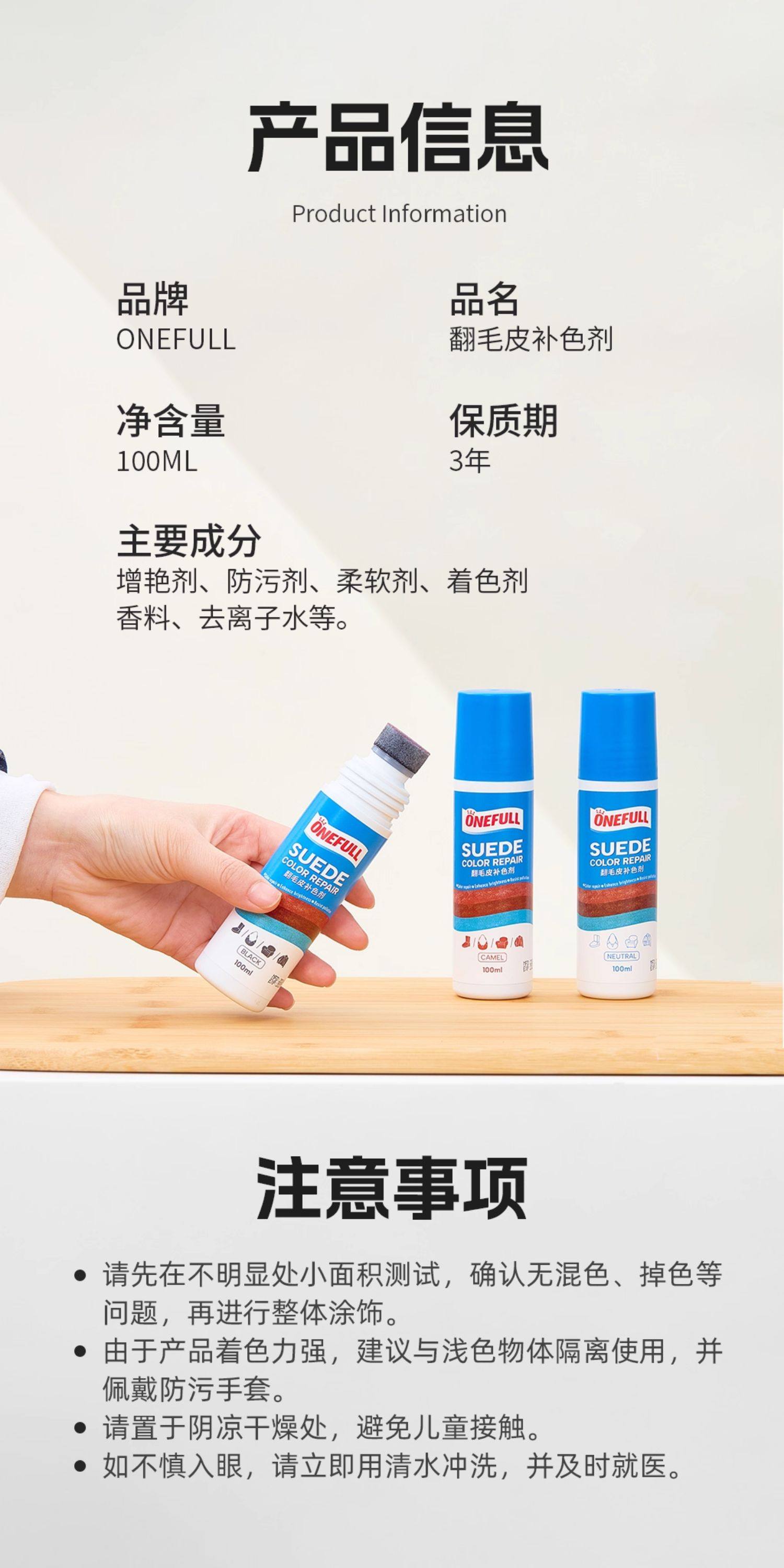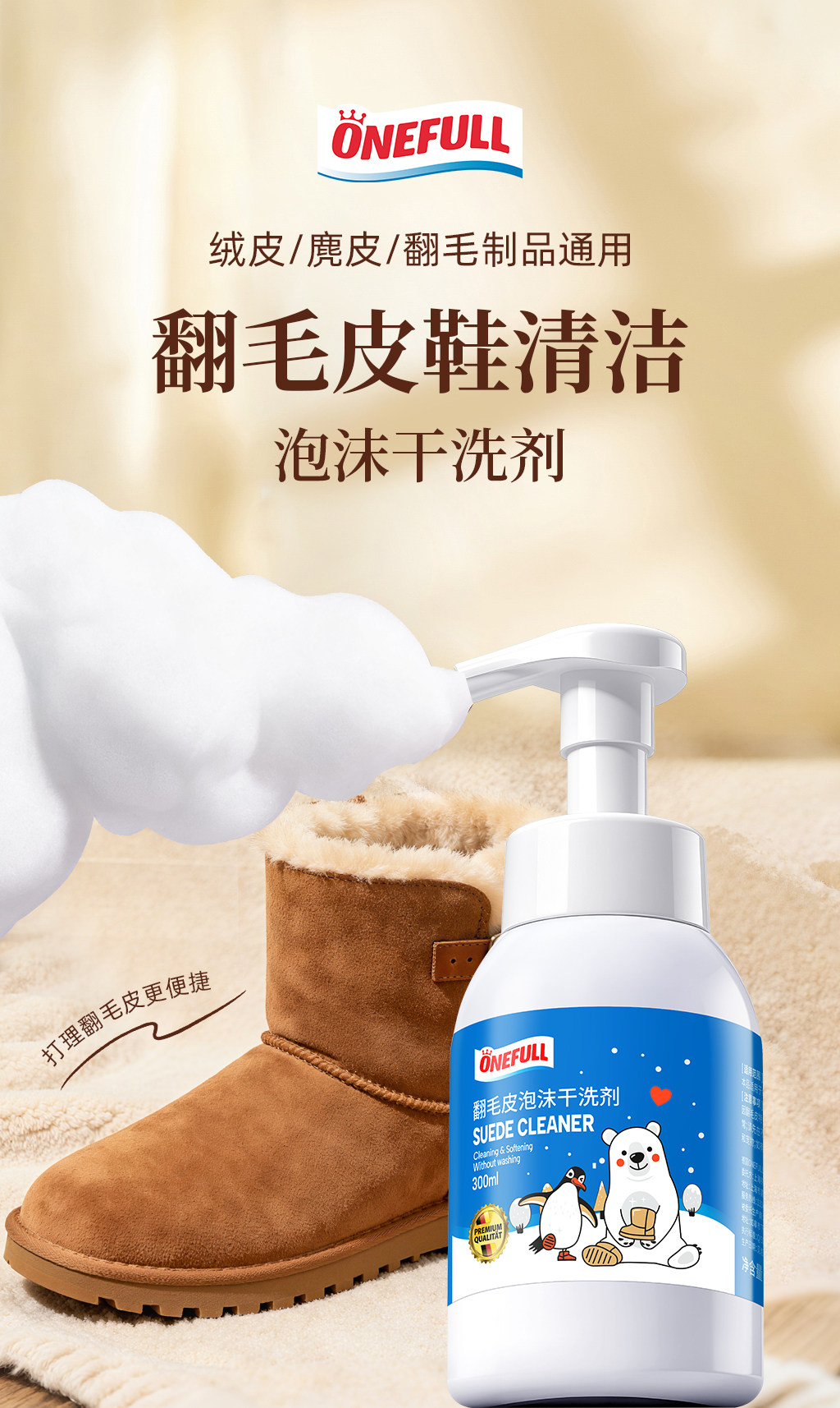 【限时送工具!雪地靴去污利器】onefull 翻毛皮泡沫清洗剂 300ml/瓶 翻毛皮补色剂100ml/瓶 免水清洗 植物提取成分 配方温和 深层去污 配合补色剂效果更好