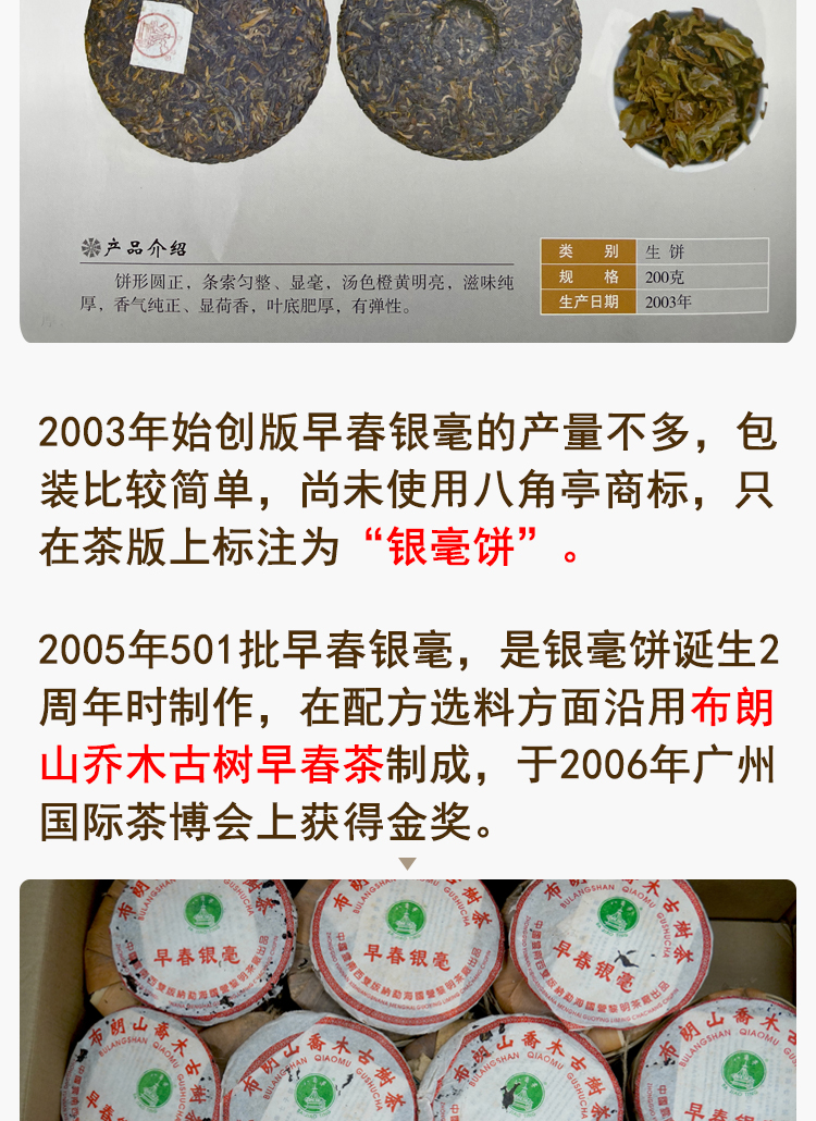 【特别推荐】经典干仓高香 2005年501批次国营黎明茶厂早春银毫 标杆普洱茶生茶干仓珍藏 200克一片单片标价