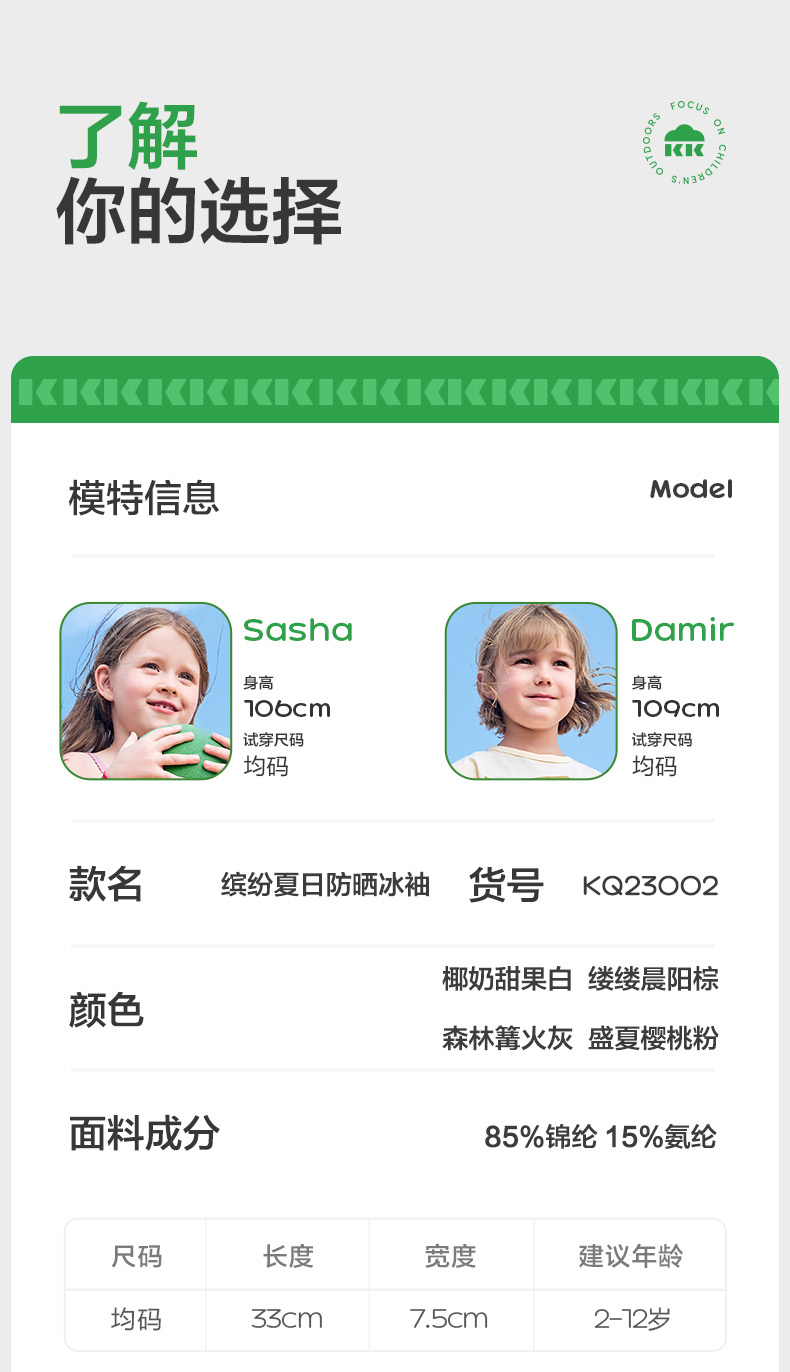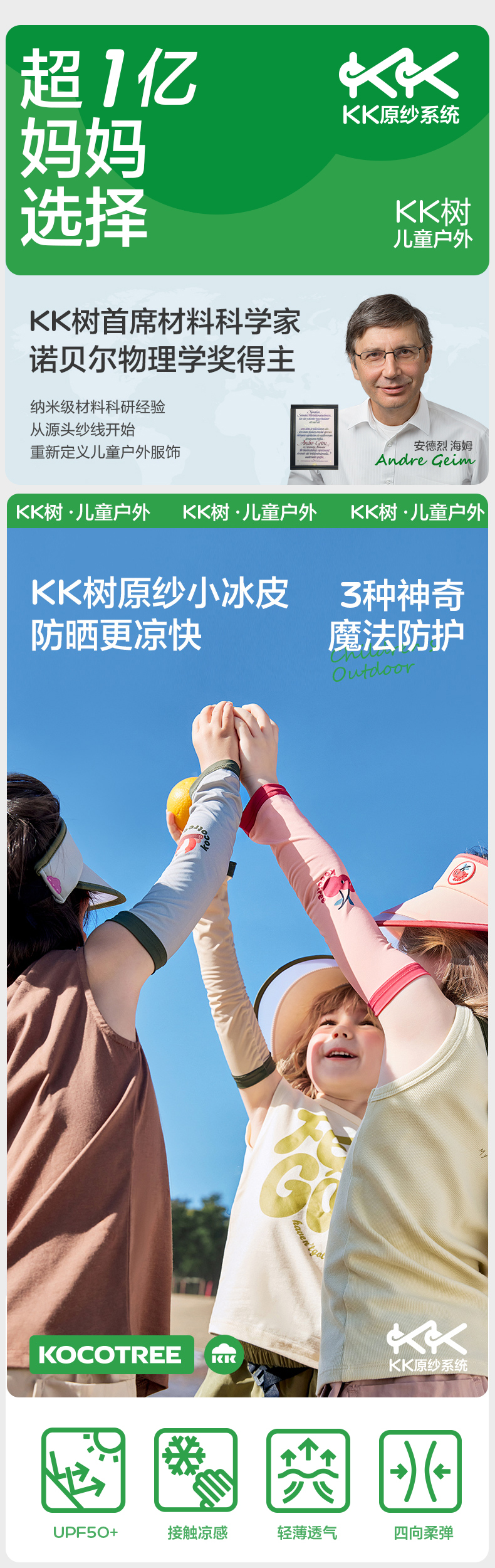 KK树儿童防晒冰袖男女童凉感防紫外线冰丝袖套宝宝遮阳透气冰袖夏缤纷夏日防晒冰袖