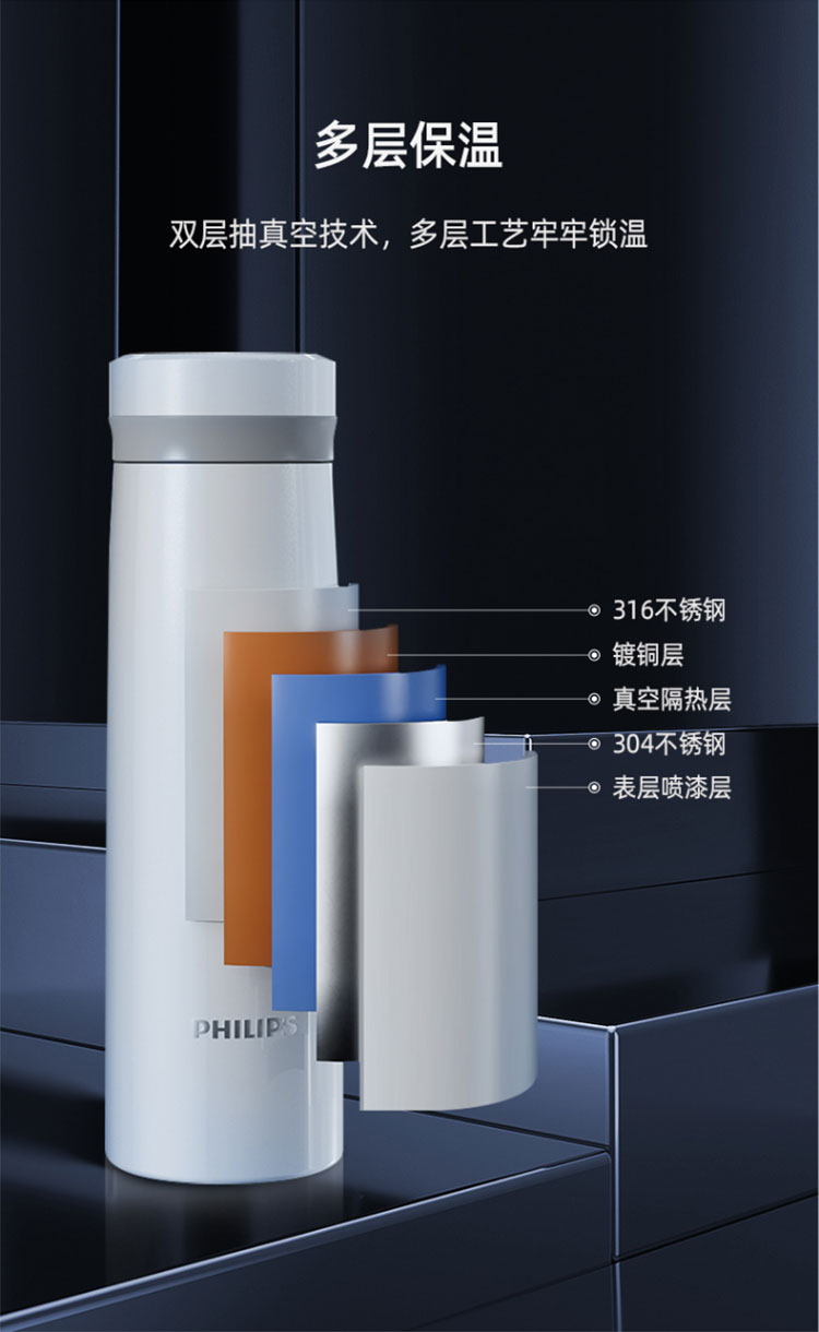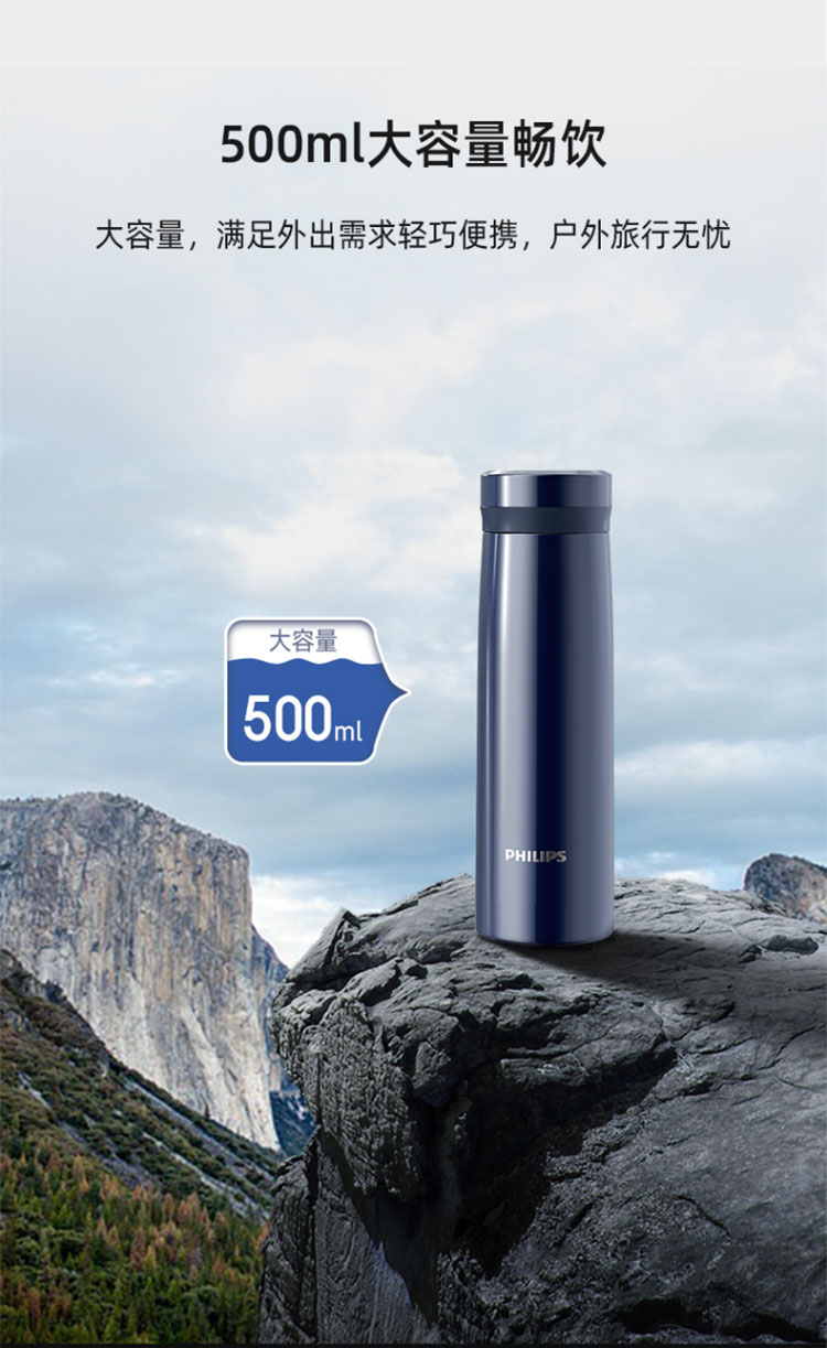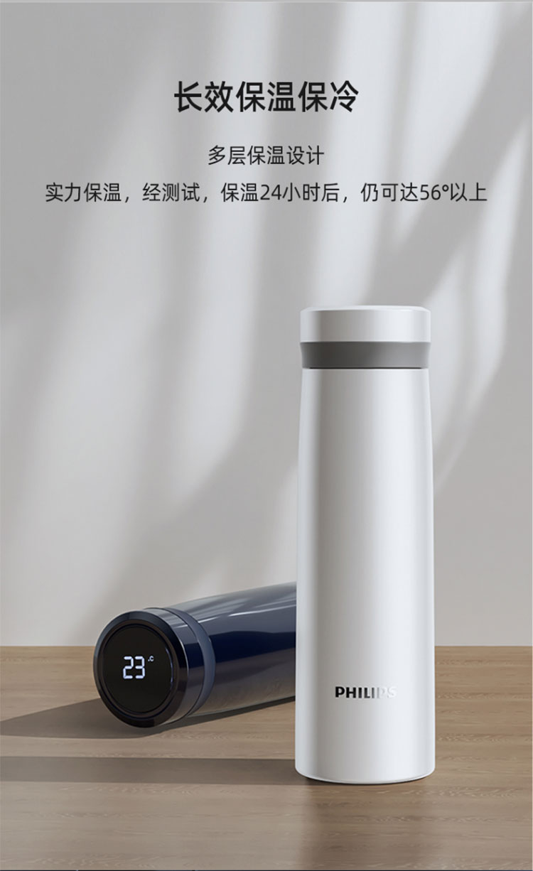 【品牌直发】飞利浦PHILIPS保温杯茶水分离智能温显杯316L不锈钢泡茶杯车载办公水杯500ml AWP2658