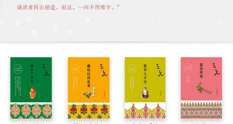 三毛(1943~1991),本名陈懋平,因为学不会写“懋”字,就自己改名为陈平。旅行和读书是她生命中的两颗一级星,快乐与疼痛都夹杂其中,而写作之初纯粹是为了让父母开心。她踏上广袤的撒哈拉,追寻前世的乡愁,和荷西在沙漠结婚,从此写出一系列风靡无数读者的散文作品,把大漠的狂野温柔和活力四射的婚姻生活,淋漓尽致展现在大家面前,“三毛热”迅速从台港横扫整个华文世界。然而荷西的突然离世,让她差点要放弃生命,直到去了一趟中南美旅游,才终于重新提笔写作。接着她尝试写剧本、填歌词,每次出手必定撼动人心。直到有,她又像儿时那样不按常理出牌,流浪到了遥远的天国。