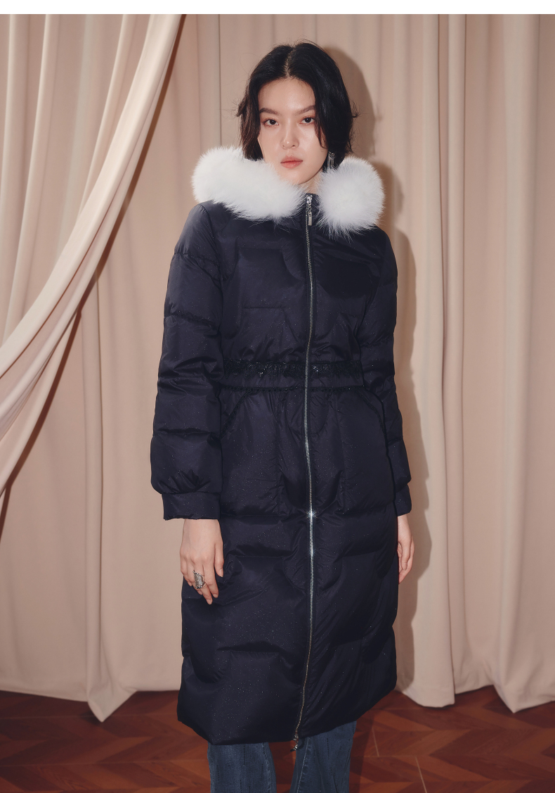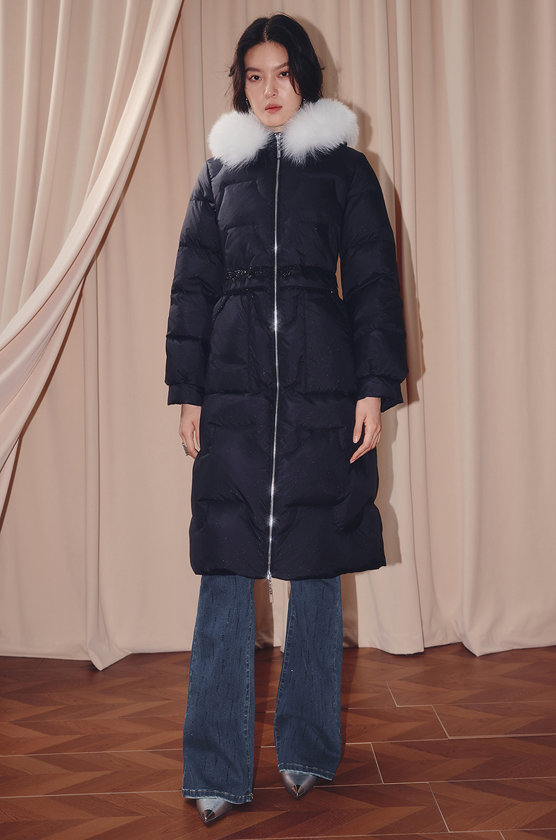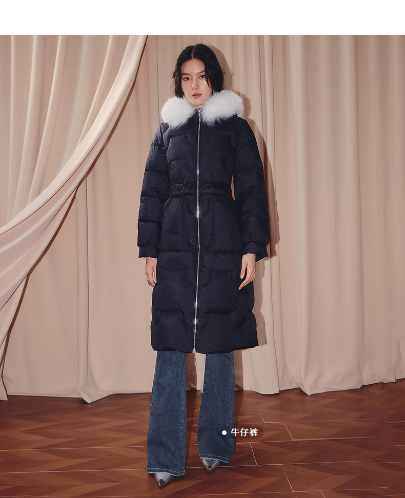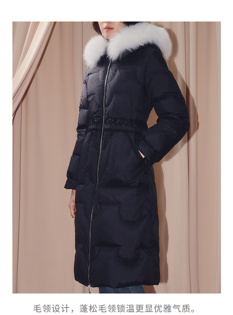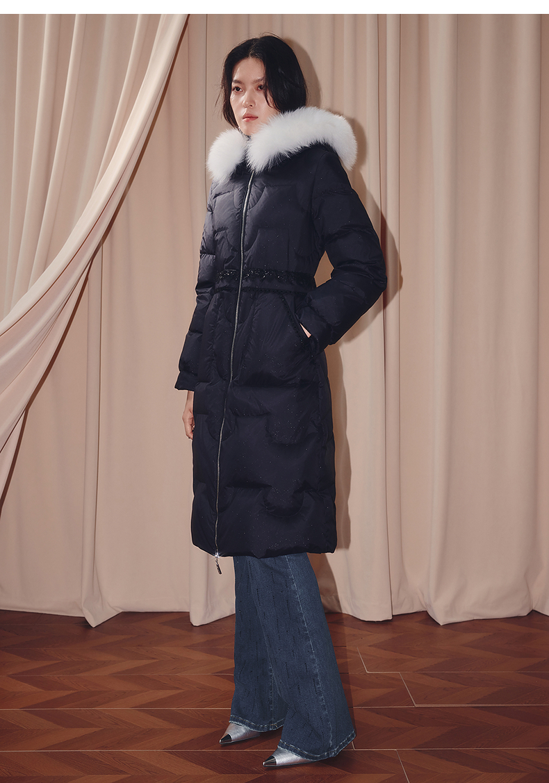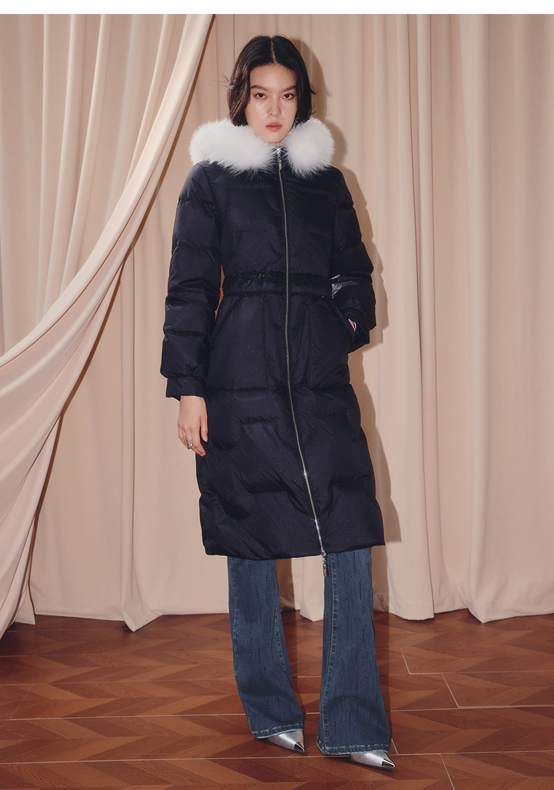 MAXRIENY商场同款简约廊形狐狸毛领长过膝羽绒服长款25冬鸭绒外套(货号:MF86DC510)