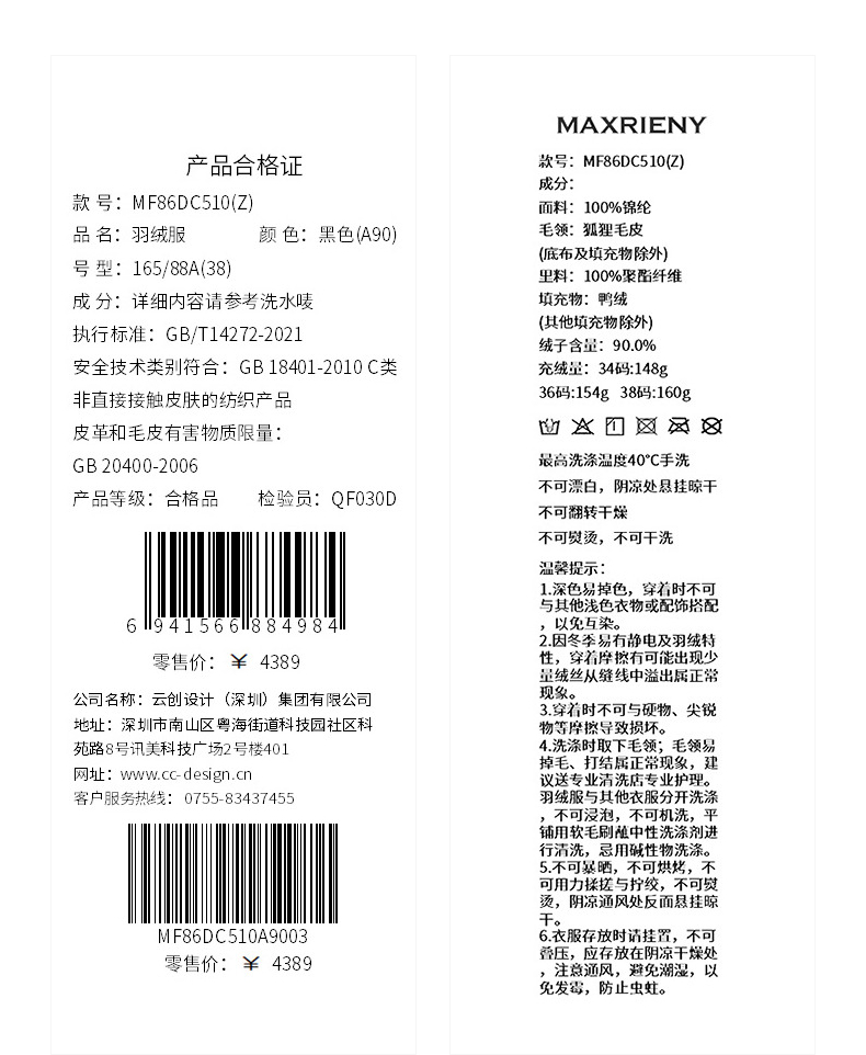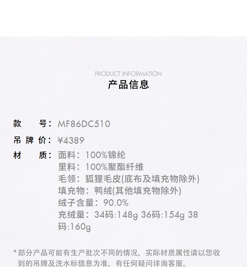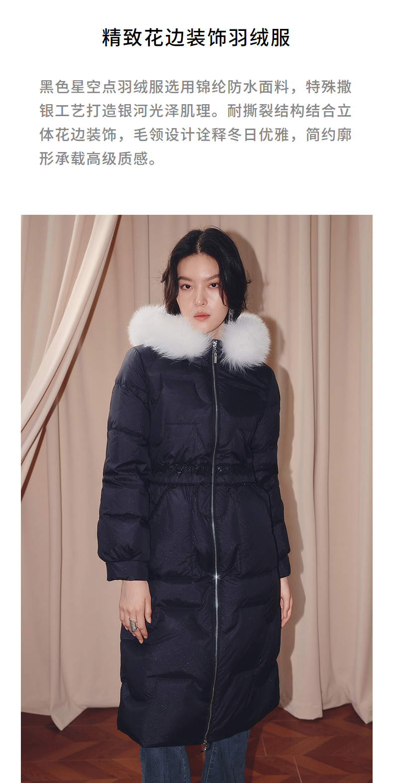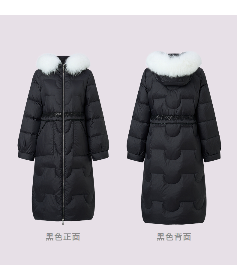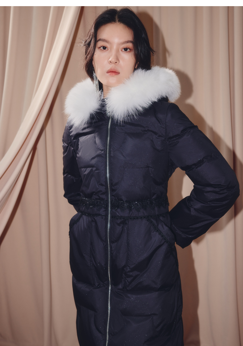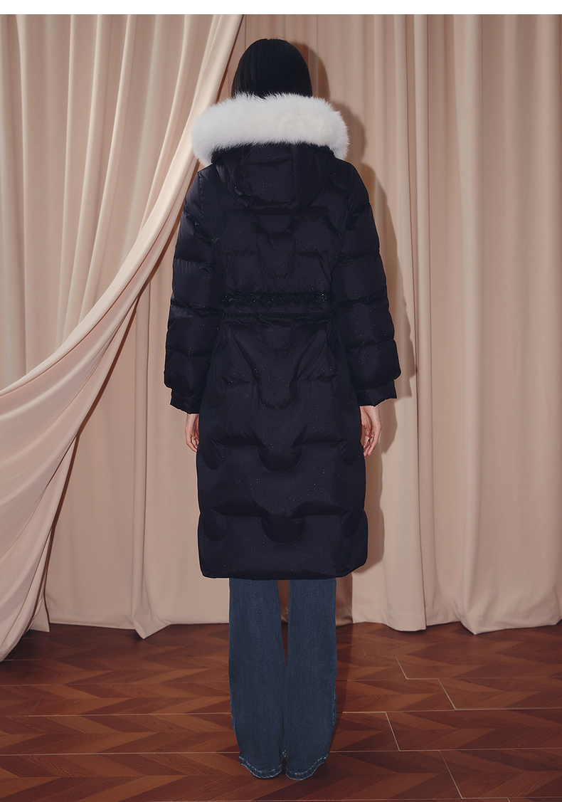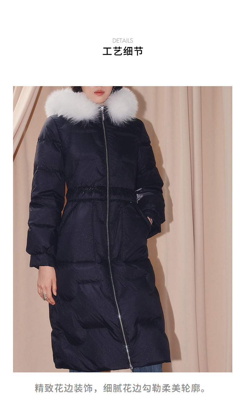 MAXRIENY商场同款简约廊形狐狸毛领长过膝羽绒服长款25冬鸭绒外套(货号:MF86DC510)