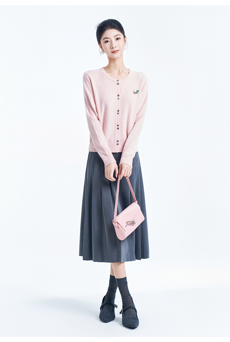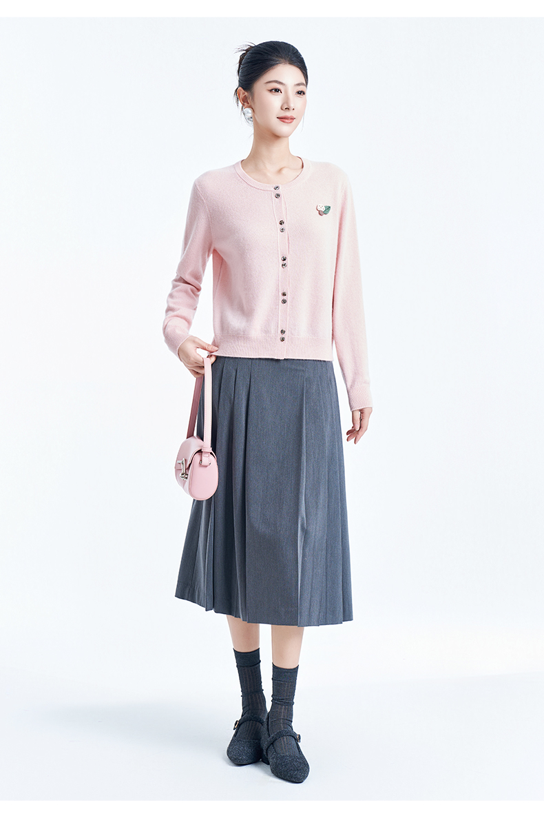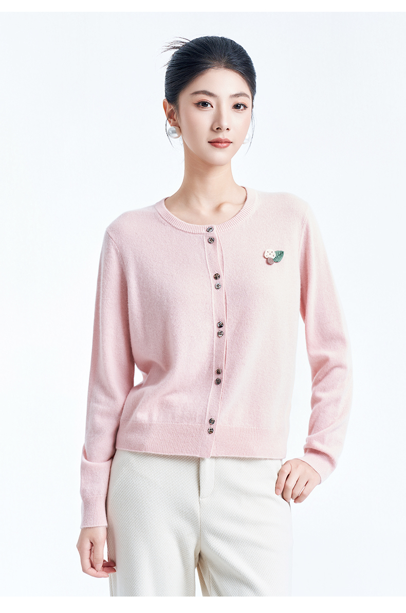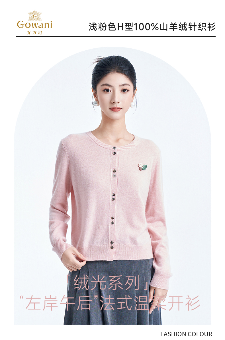 【100%山羊绒】乔万尼2025冬减龄圆领短款时尚针织开衫ED4M822