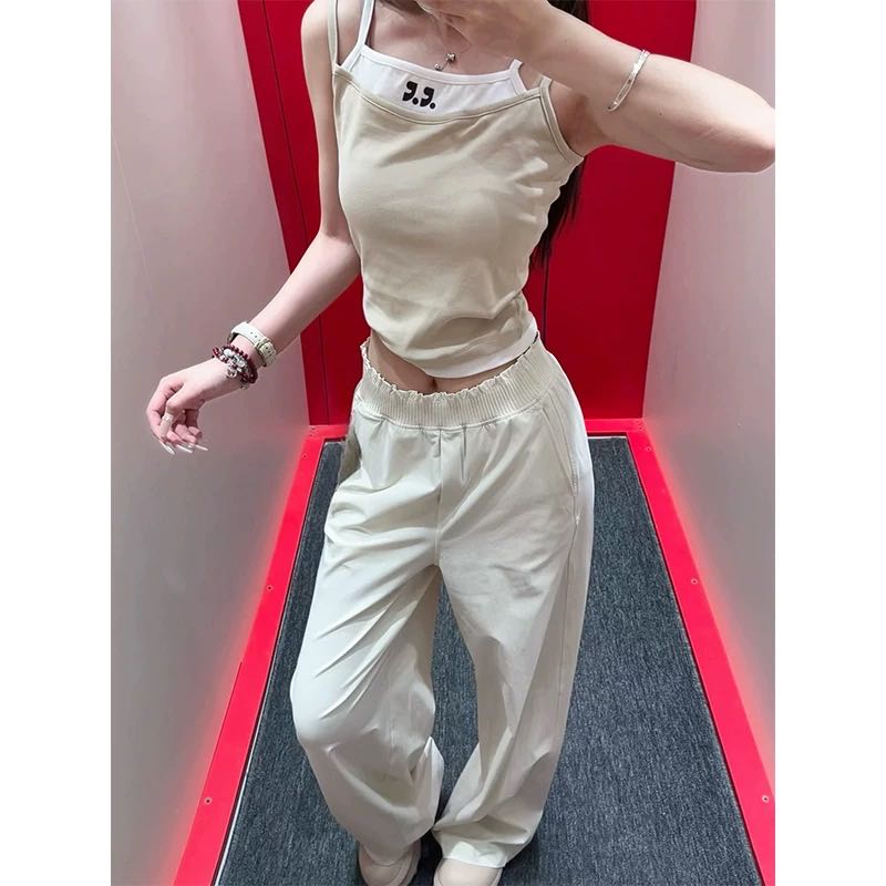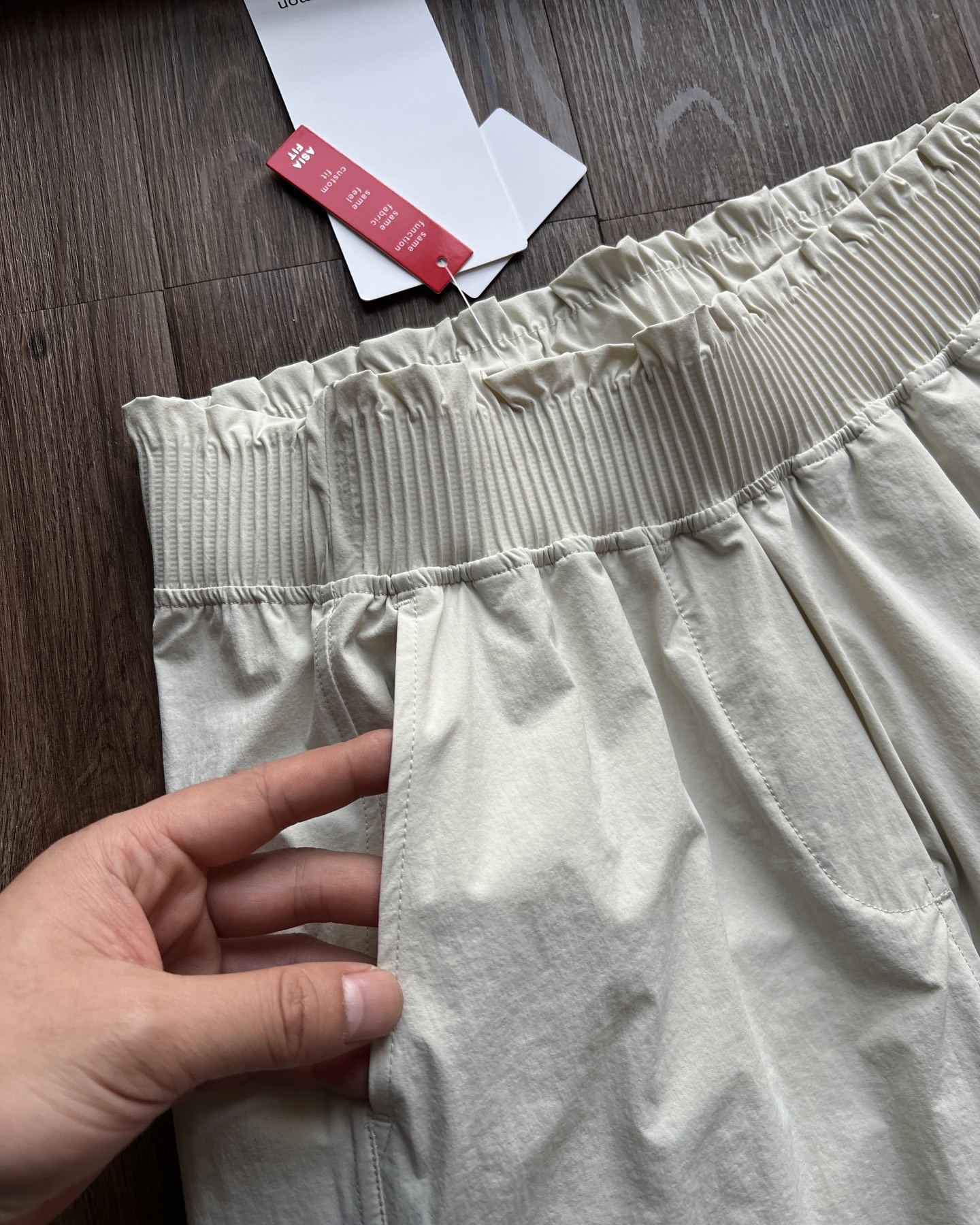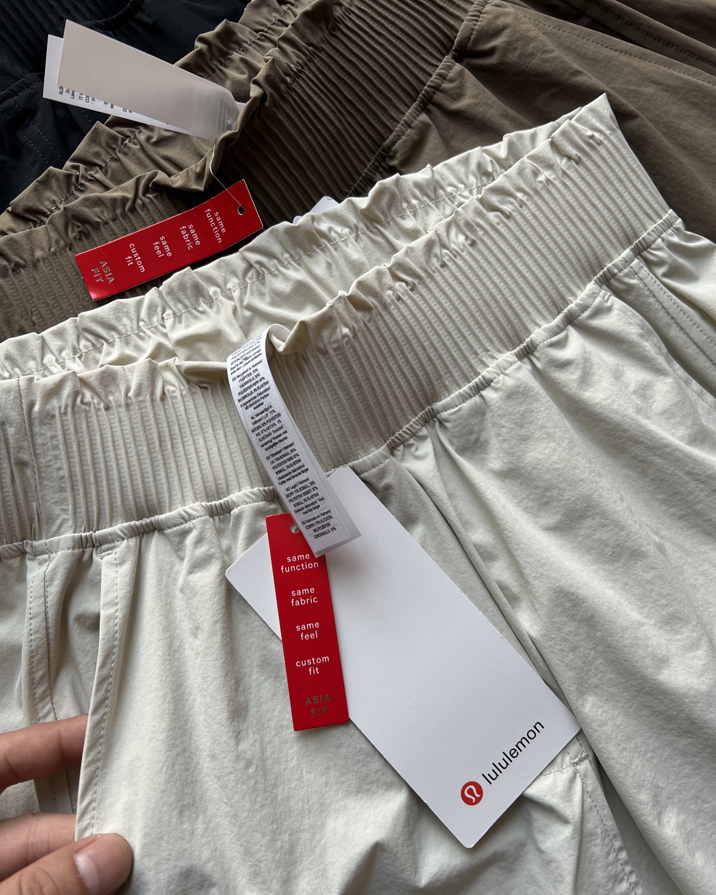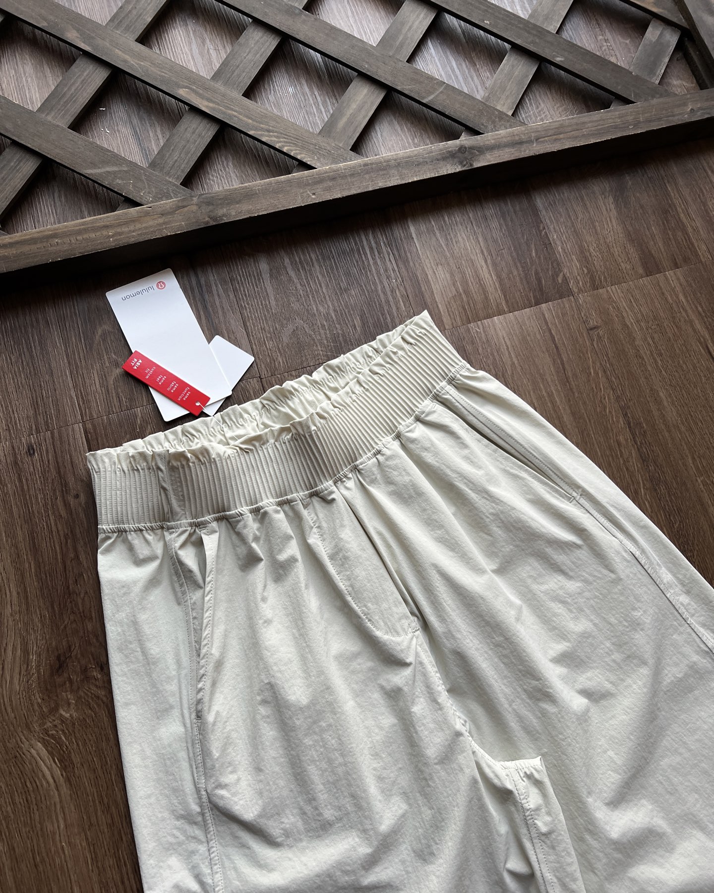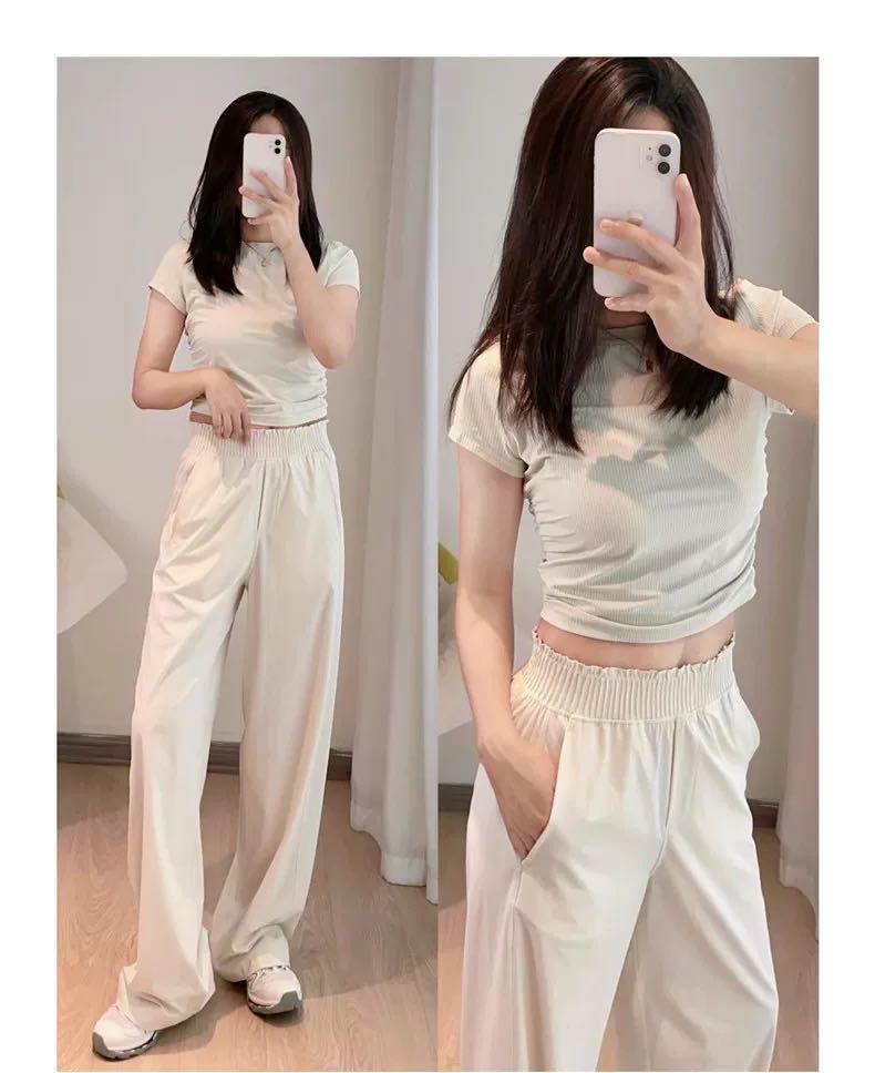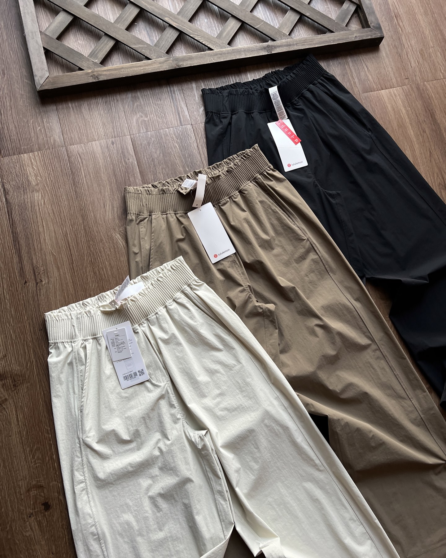 140 货号120733140 xj Lululemon新品腰部花边褶皱运动裤休闲长裤显瘦直筒阔腿速干裤!!