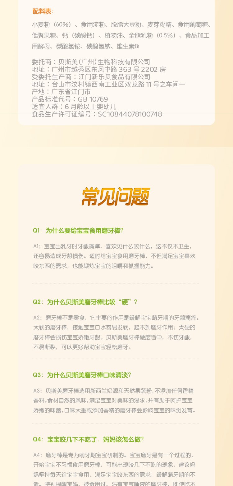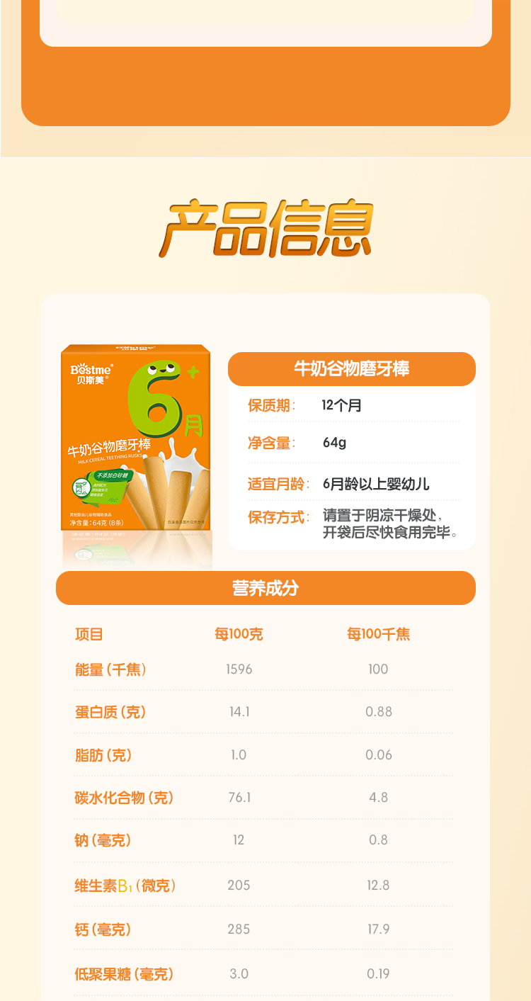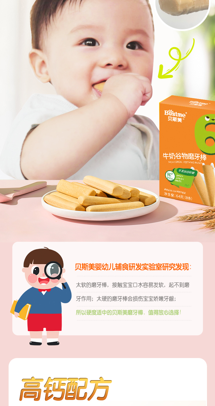 贝斯美婴幼儿蔬菜谷物磨牙棒64g