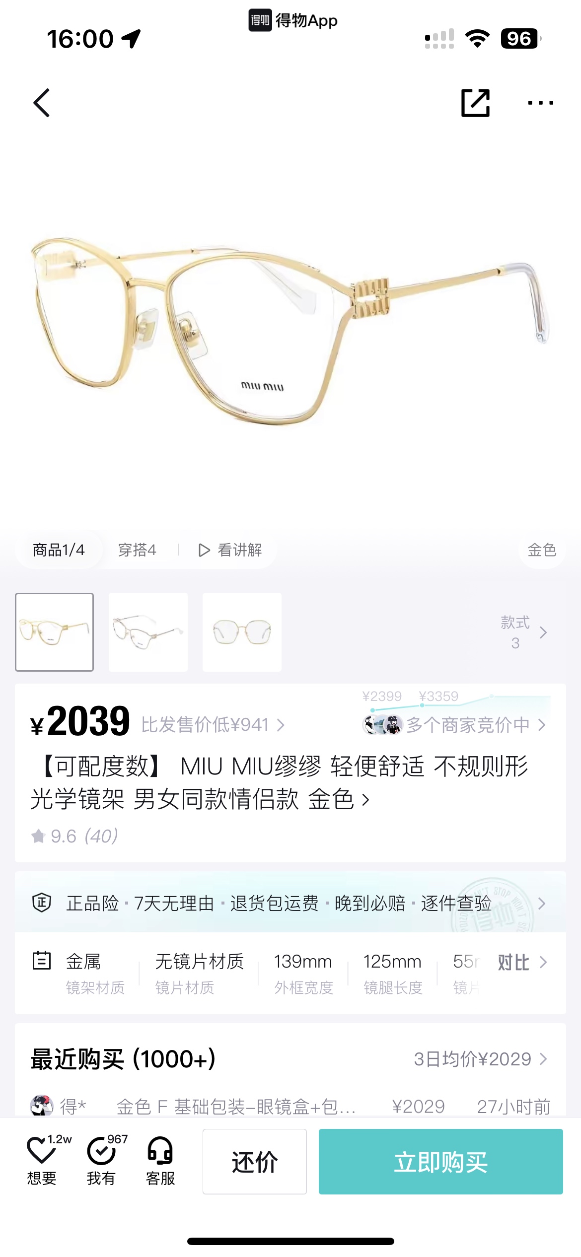 镜架外框宽139mm、镜腿长125mm,尺寸适配多数脸型,细节处的品牌标识更显质感。金色金属框自带贵气buff,不规则轮廓跳出千篇一律的死板,上脸瞬间拉满复古松弛感