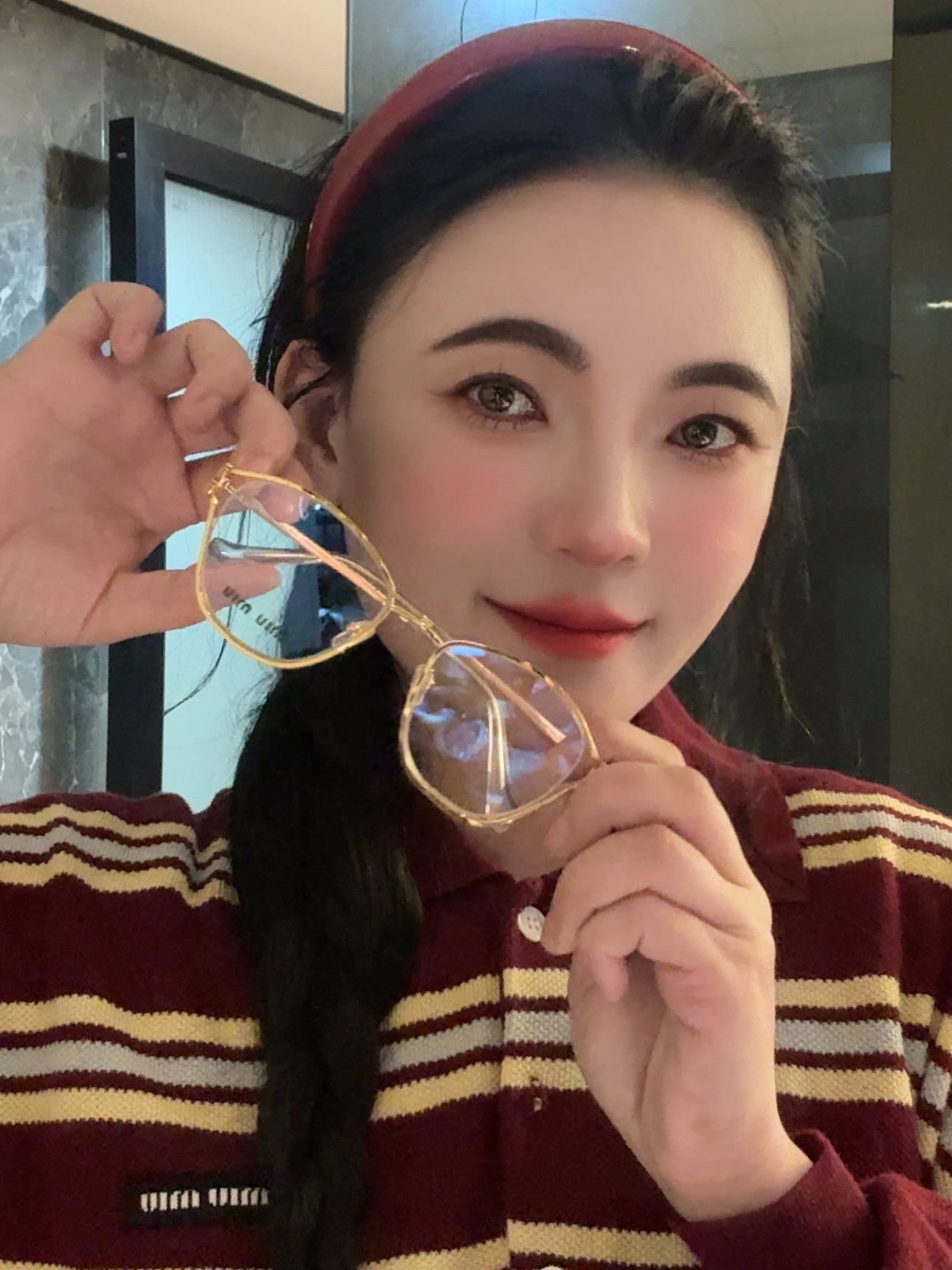 —不管是通勤搭衬衫,还是约会配连衣裙,都能低调显贵。关键是能配度数!轻便材质戴着不压鼻,长时间办公、逛街都舒服,情侣同框戴更是」司感直接拉满~ 这款显脸小 巨好看!适合方圆脸