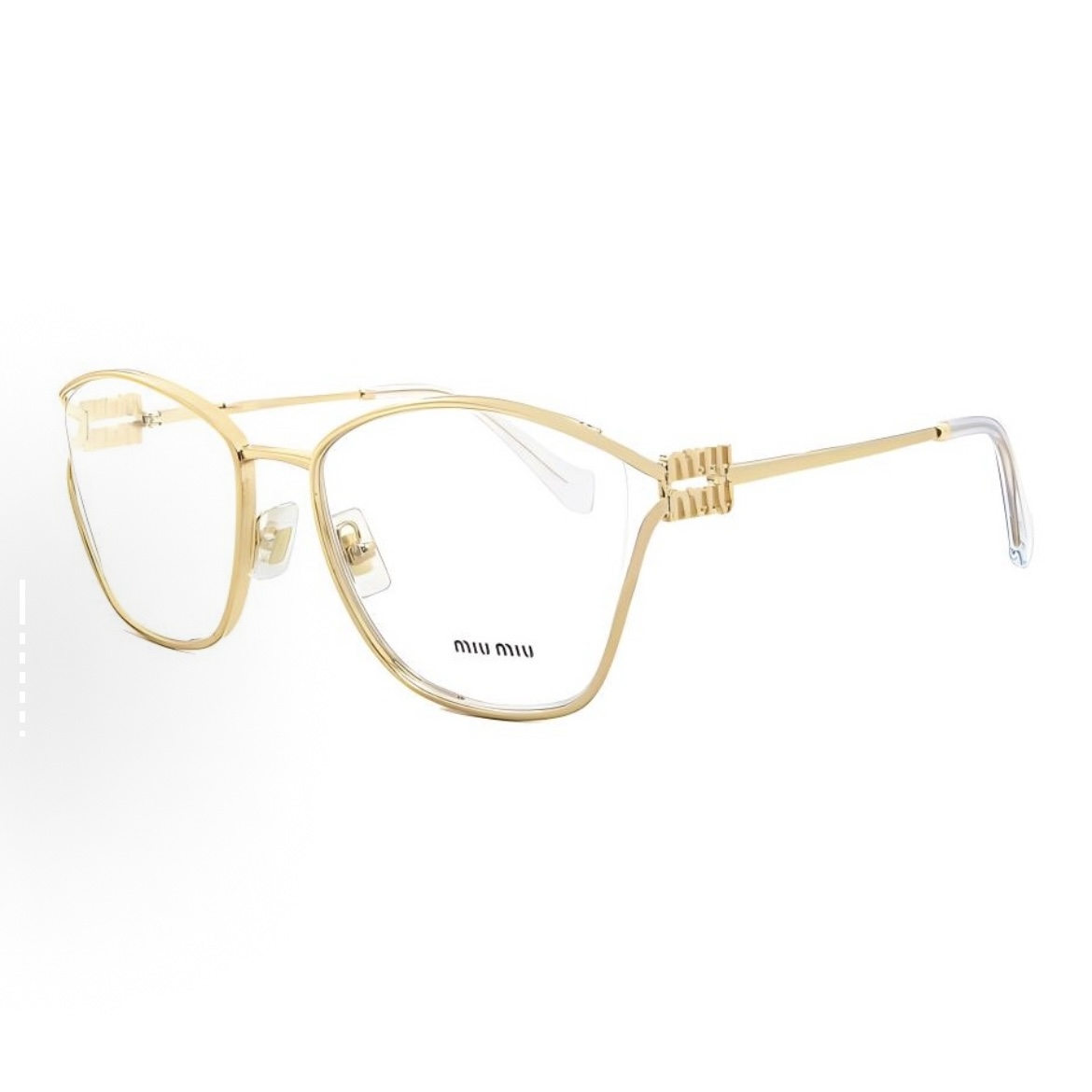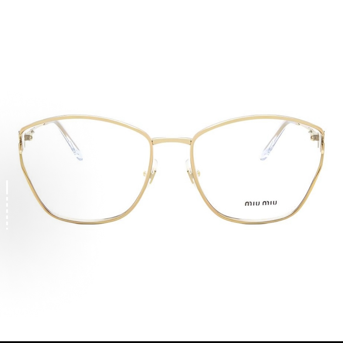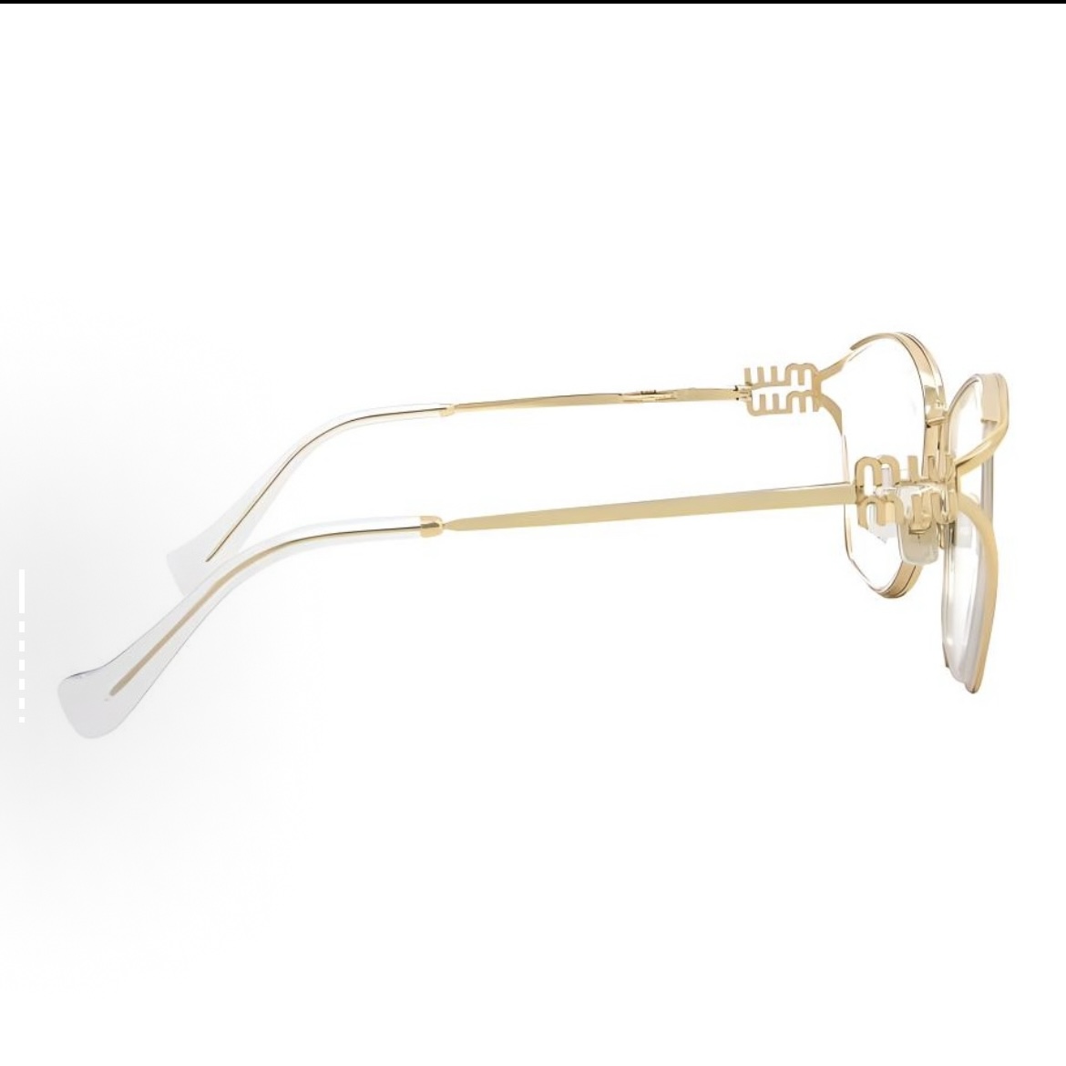 光学镜架 男女同款情侣款 金色。这是 MIU MIU缪缪推出的不规则形光学镜架,采用金色金属材质打造,整体轻便舒适,适配日常长时间佩戴。作为男女同款情侣款,它兼具时尚感与实用性—不规则镜框设计打破常规,自带复古轻奢气质;支持搭配度数镜片,满足近视/远视人群的视物需求。