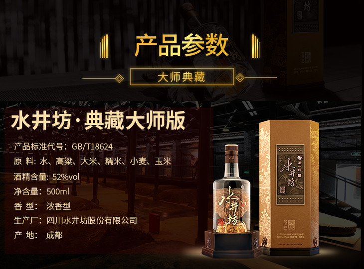 【推荐】水井坊 高度白酒 浓香型 典藏大师版 52度500ml单瓶装