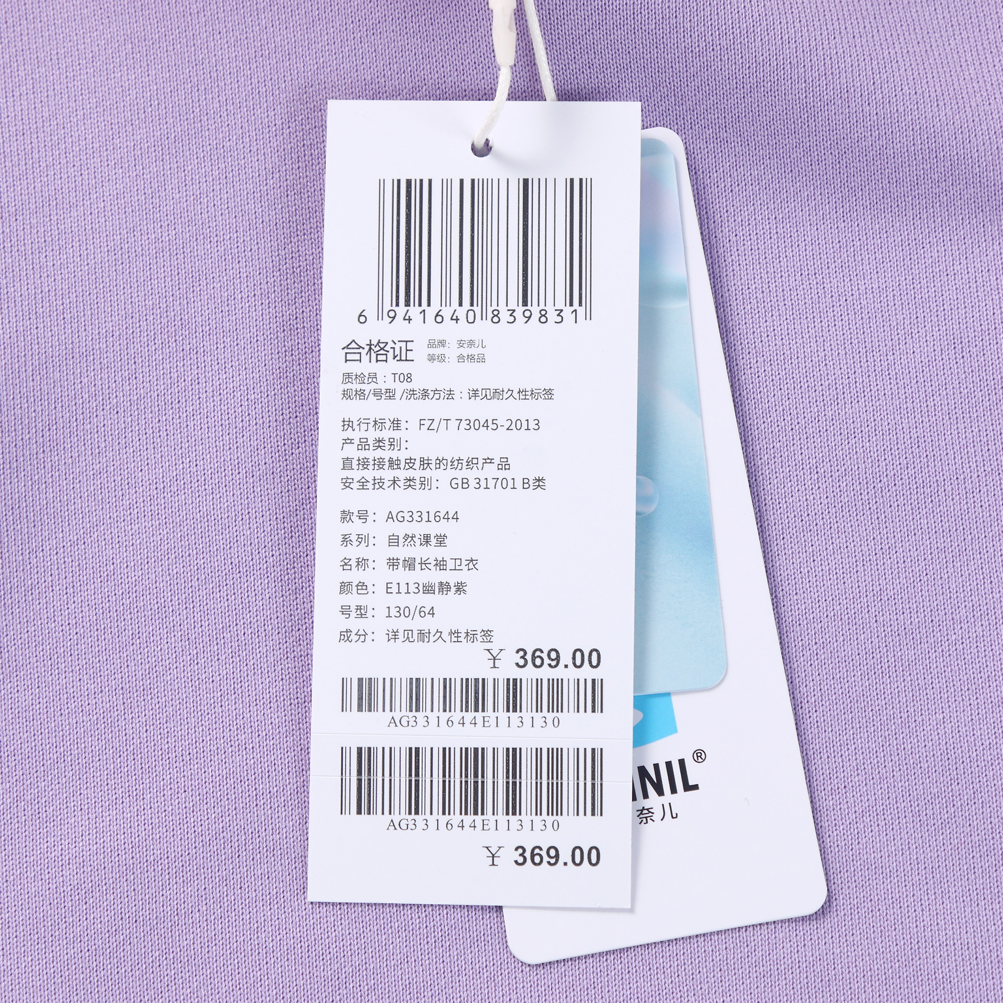 【实体店同款】女童液氨插肩袖带帽卫衣安奈儿童装AG331644