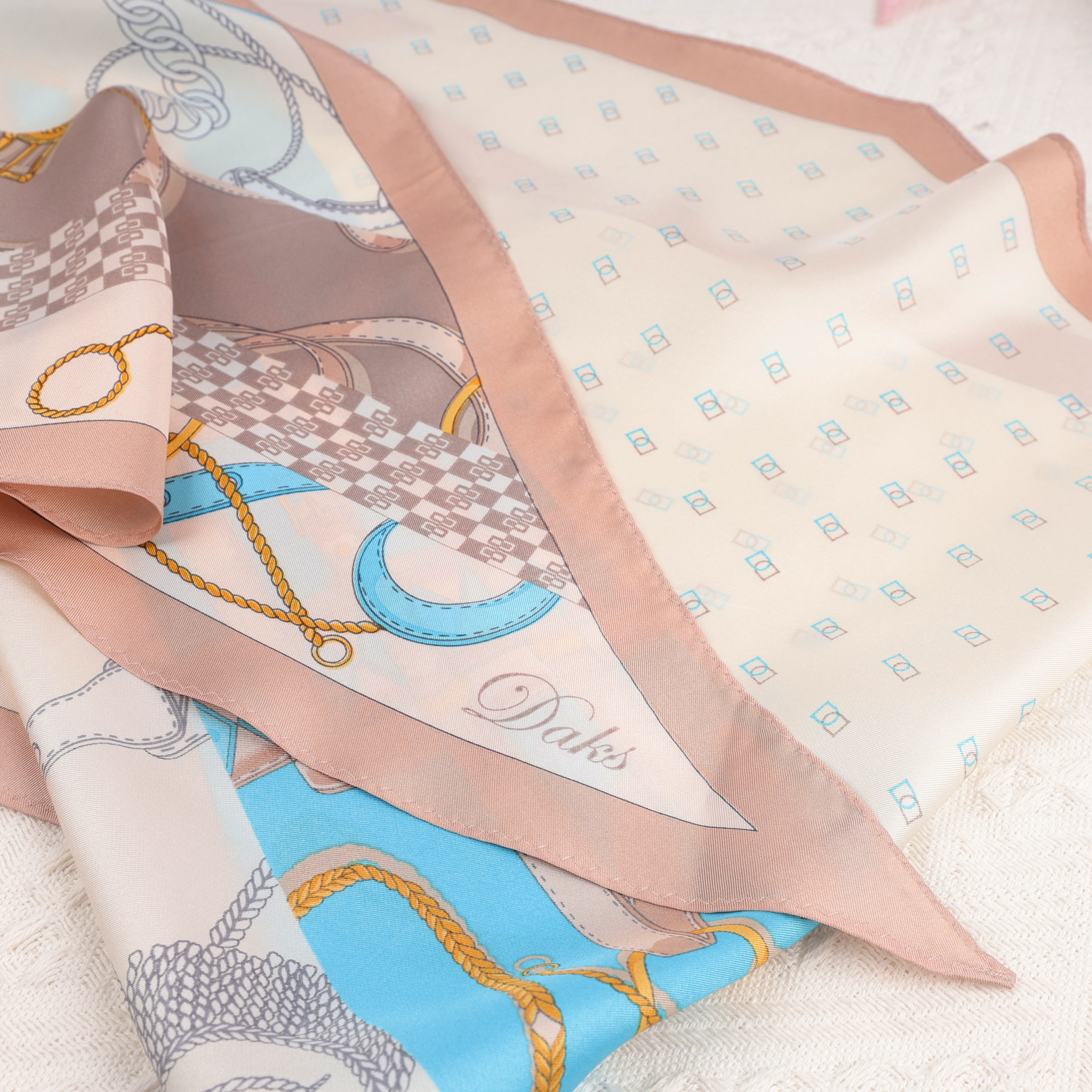 桑蚕丝斜纹绸印花方巾(出口韩国品牌ield余款)