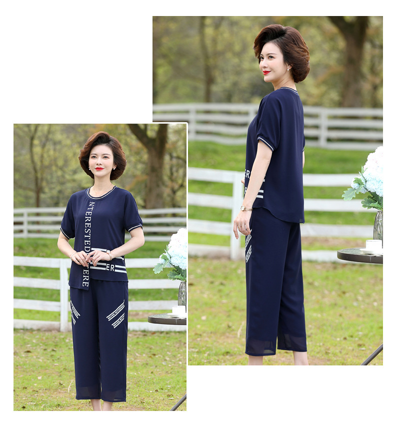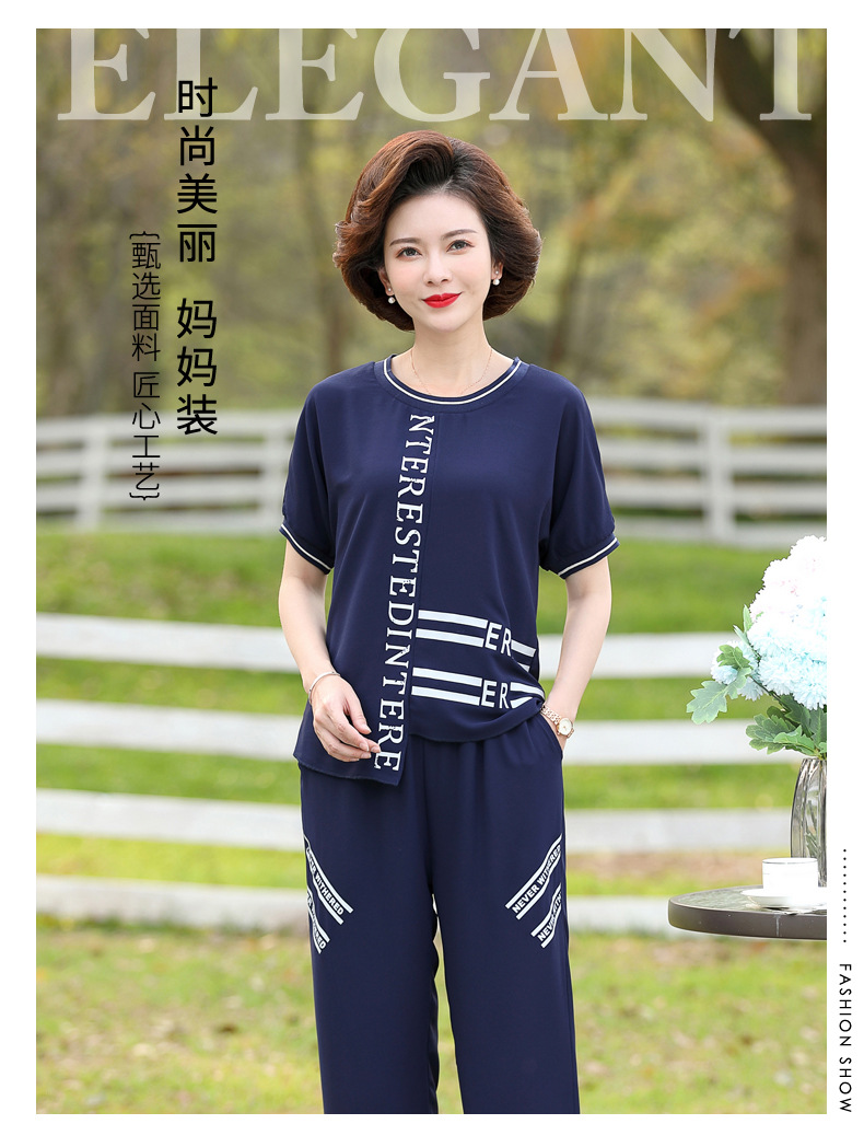 YCE-FLO-2053夏装新款洋气中老年短袖两件套