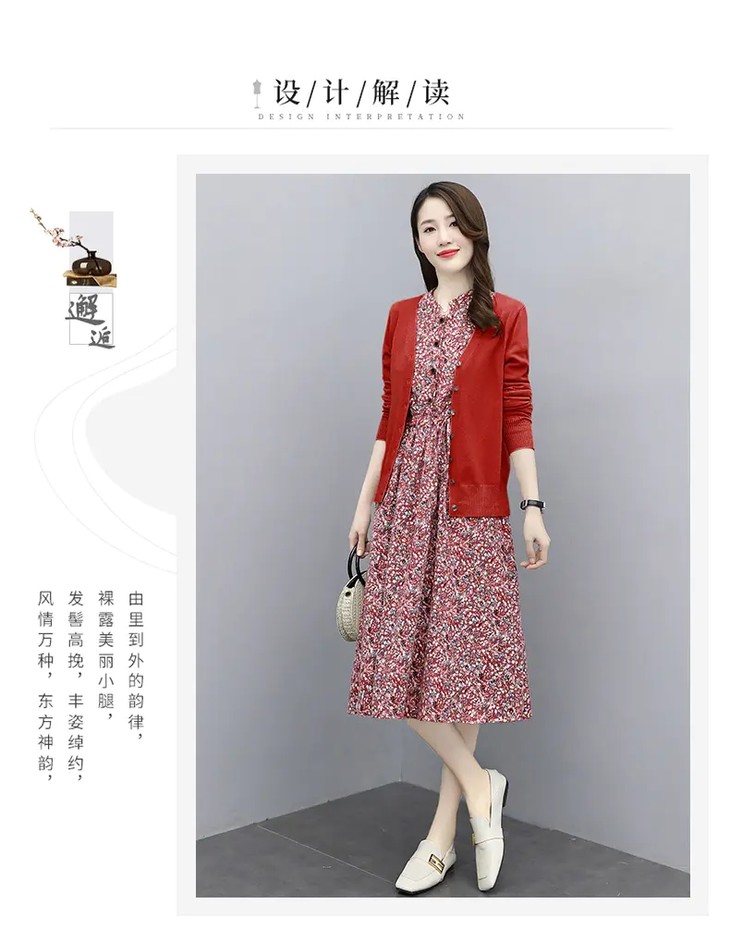 时尚印花,棉麻两件套连衣裙HR-XBL095
