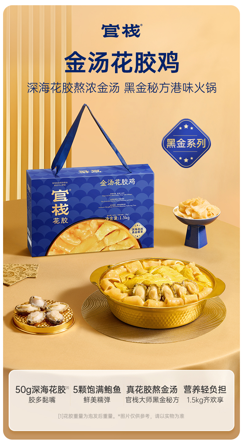 官栈 港式金汤花胶鸡鲍鱼加热即食秋冬滋补家庭聚餐送礼礼盒1.5kg【该商品不支持用券】