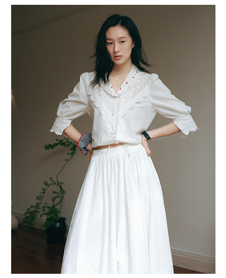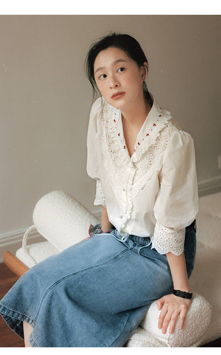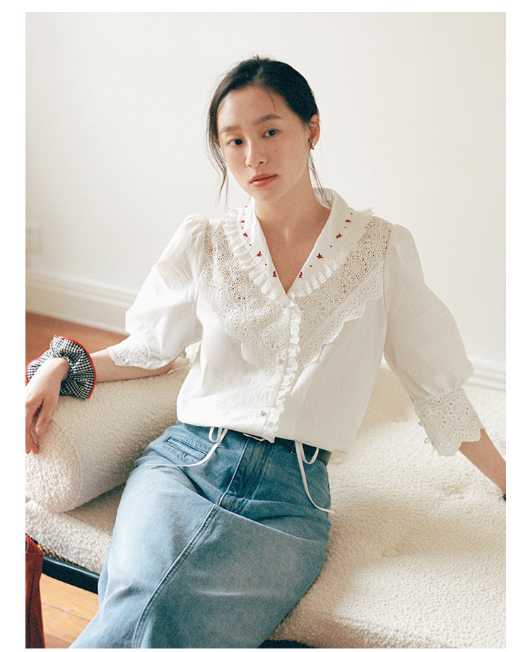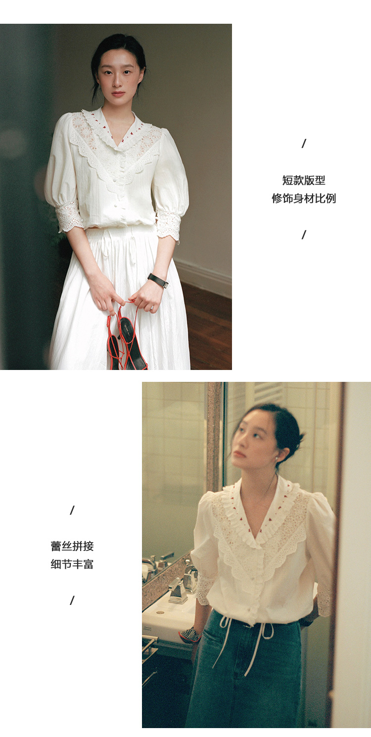 Even Vintage | 浪漫氛围感 原创设计法式复古刺绣蕾丝拼接白衬衫