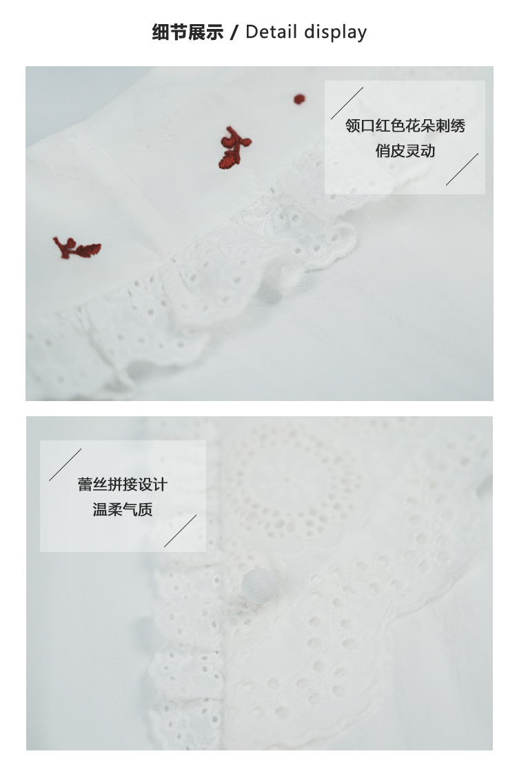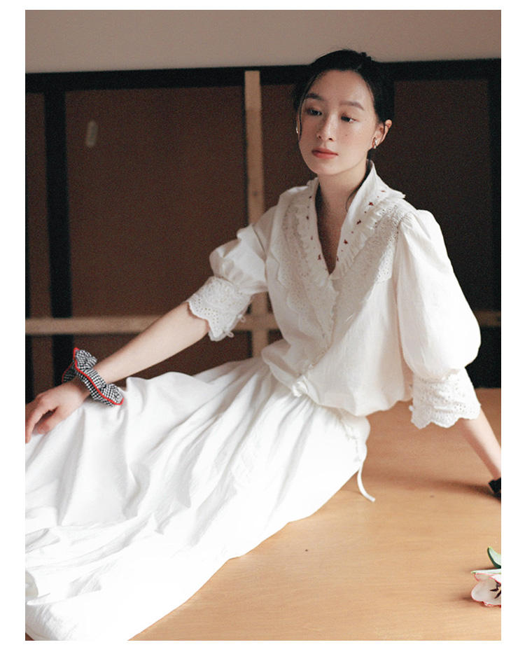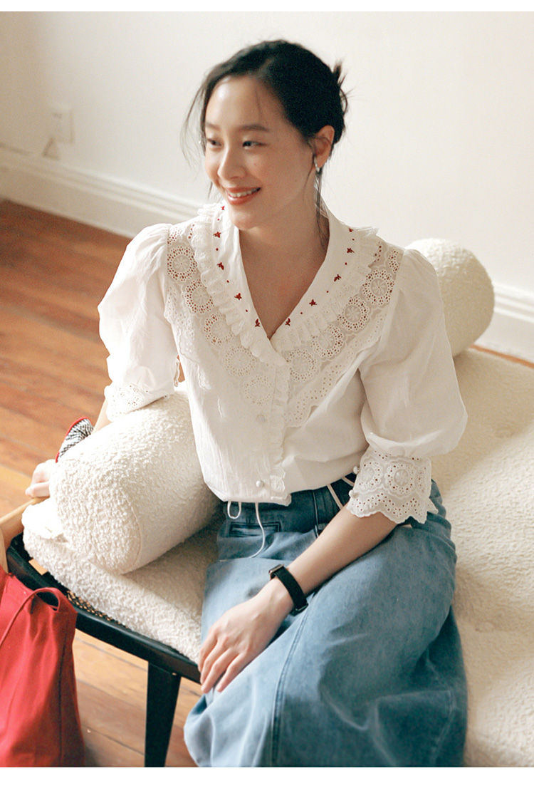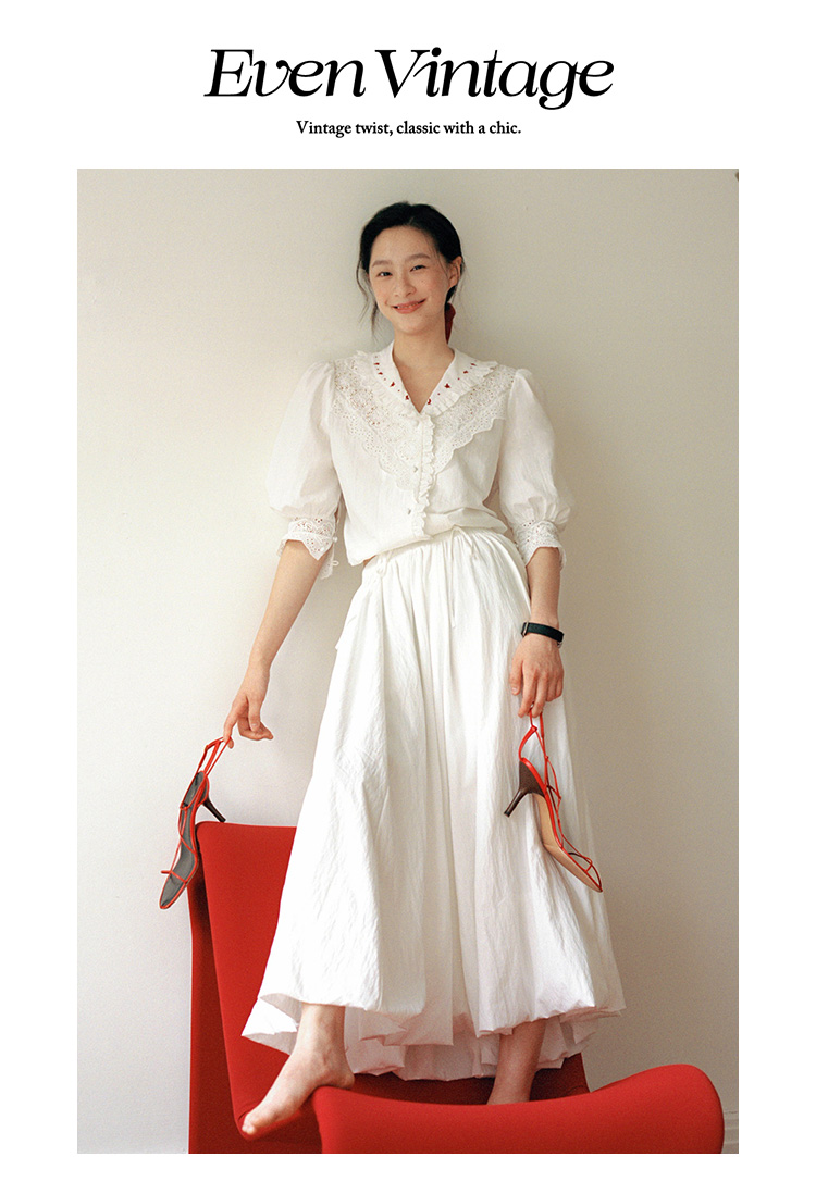 Even Vintage | 浪漫氛围感 原创设计法式复古刺绣蕾丝拼接白衬衫