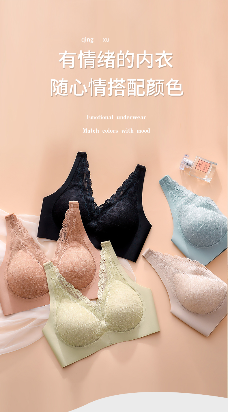 【安梨口袋星空点点蕾丝内衣】无缝贴合无感文胸性感蕾丝杯面W塑形聚拢定型宽肩带更舒适加宽侧比锁住副乳贴身呵护滋养抗Jun乳胶内杯舒适零束缚
