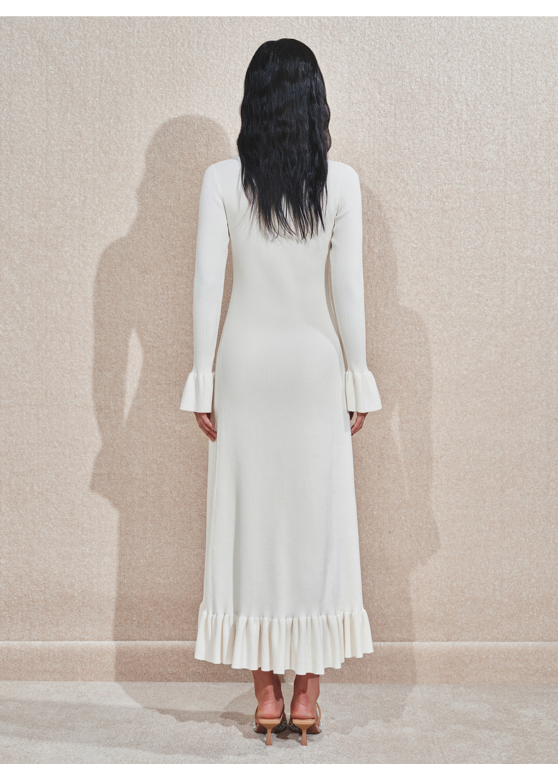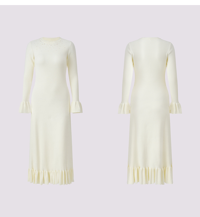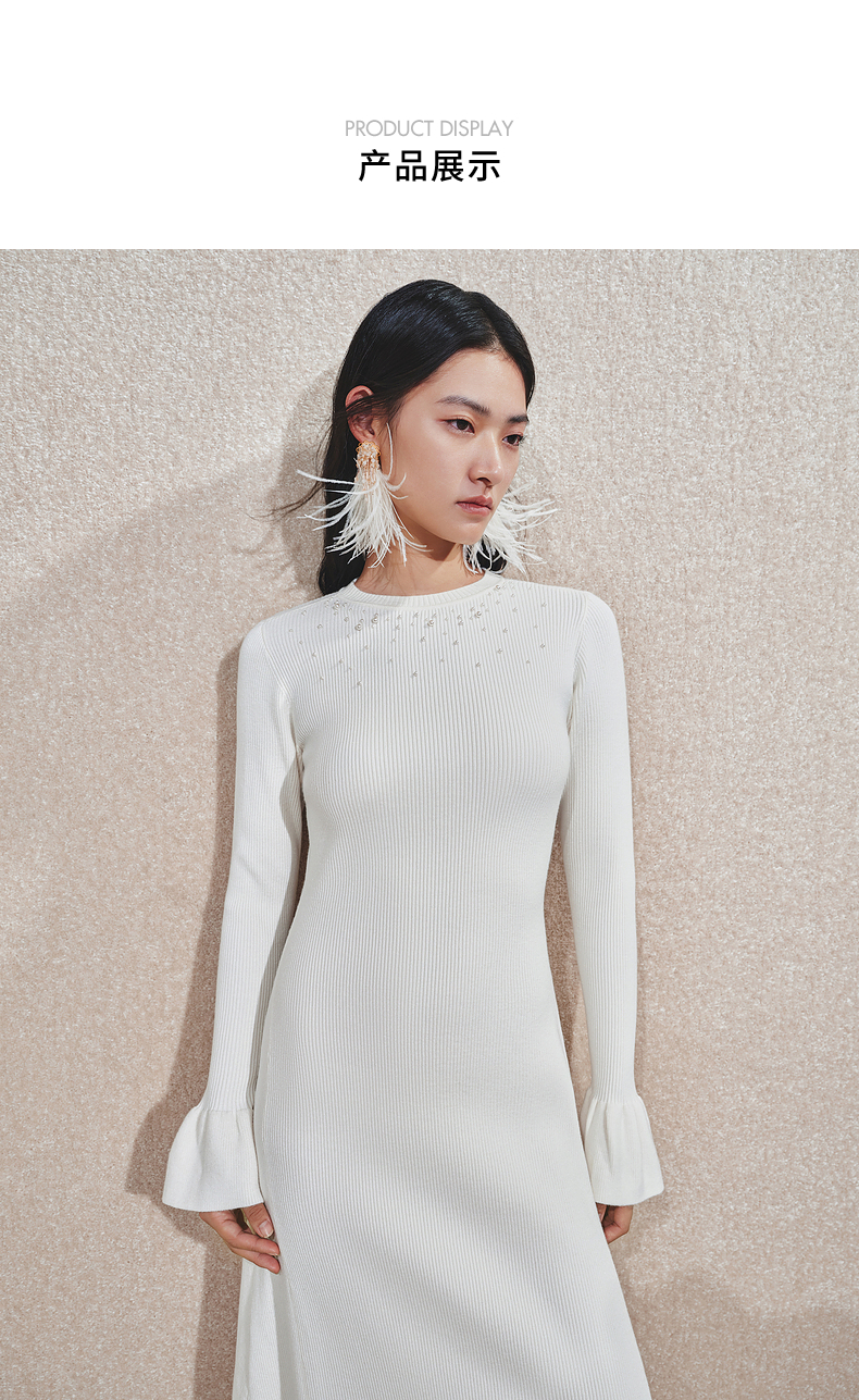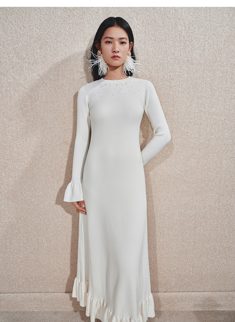 MAXRIENY千金温柔风连衣裙24冬新款米白色针织裙鱼尾长裙小白裙(货号:MS85DR754)