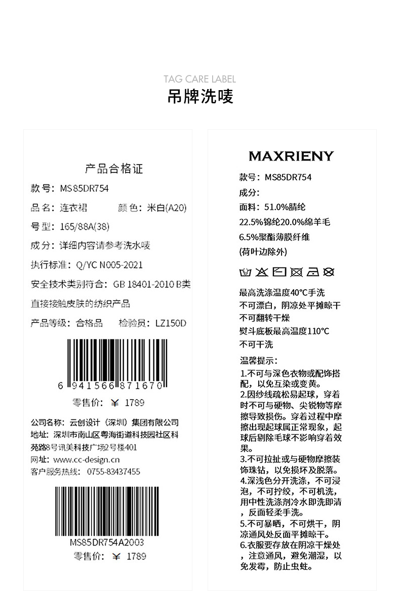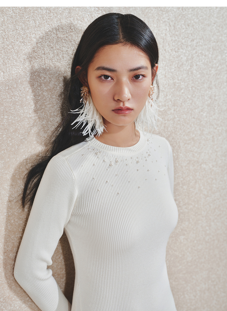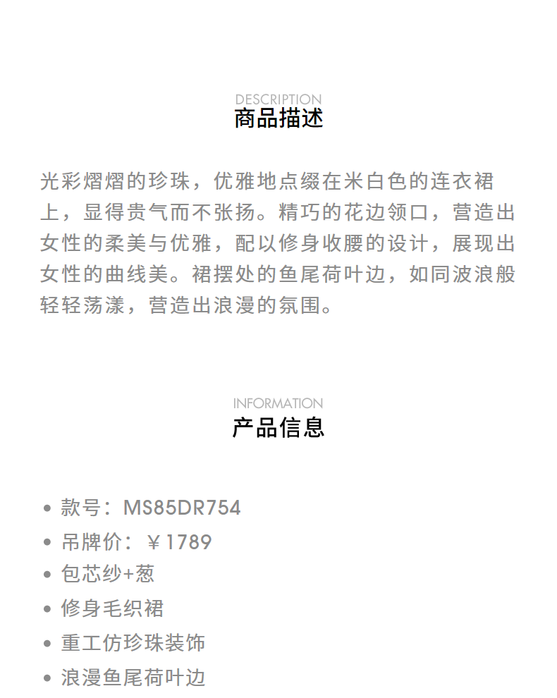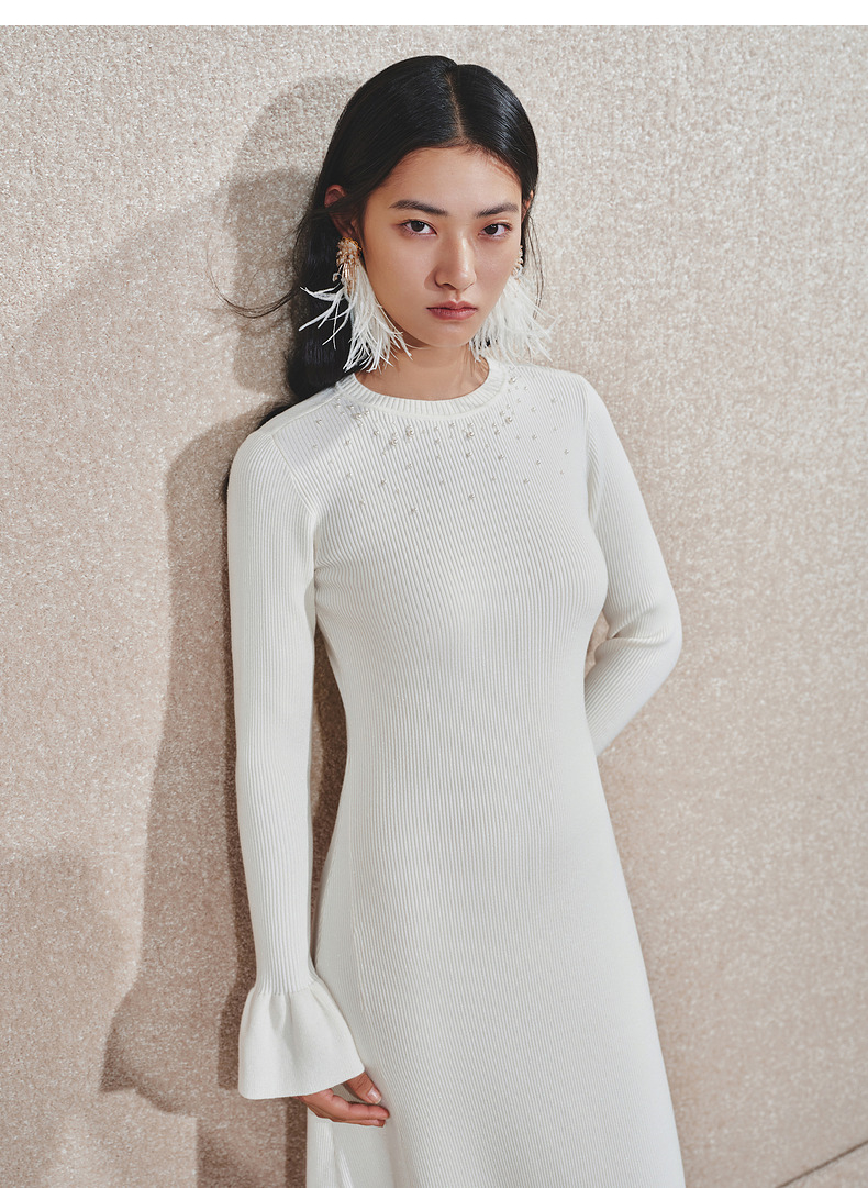 MAXRIENY千金温柔风连衣裙24冬新款米白色针织裙鱼尾长裙小白裙(货号:MS85DR754)