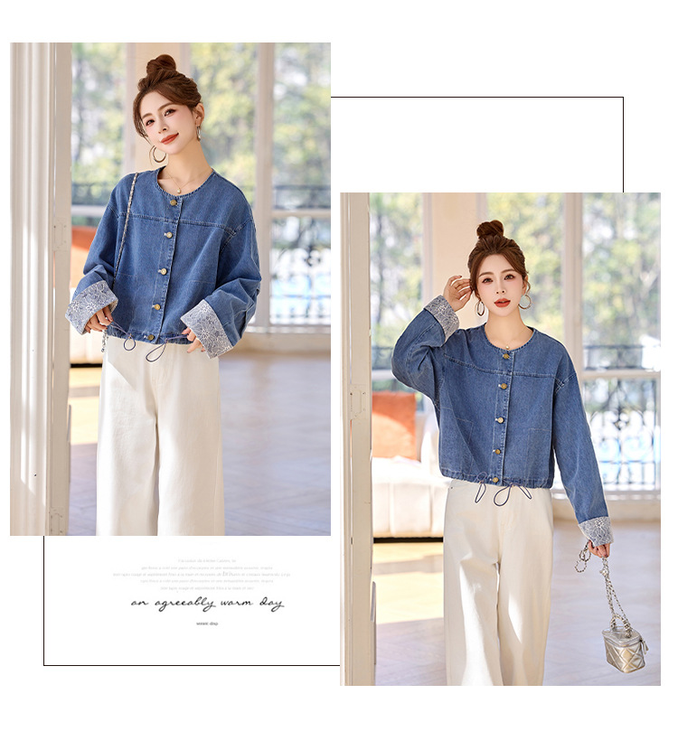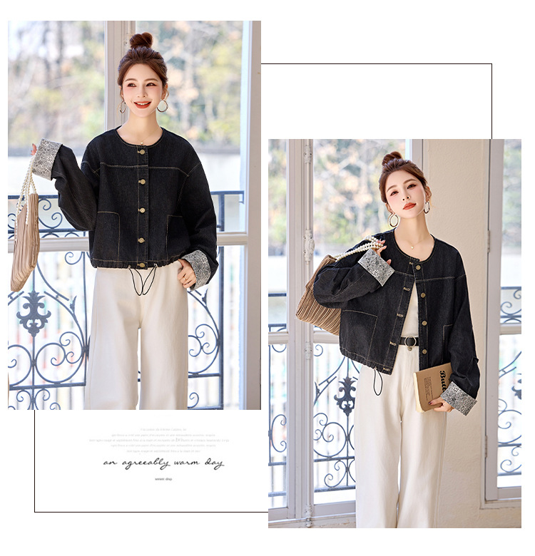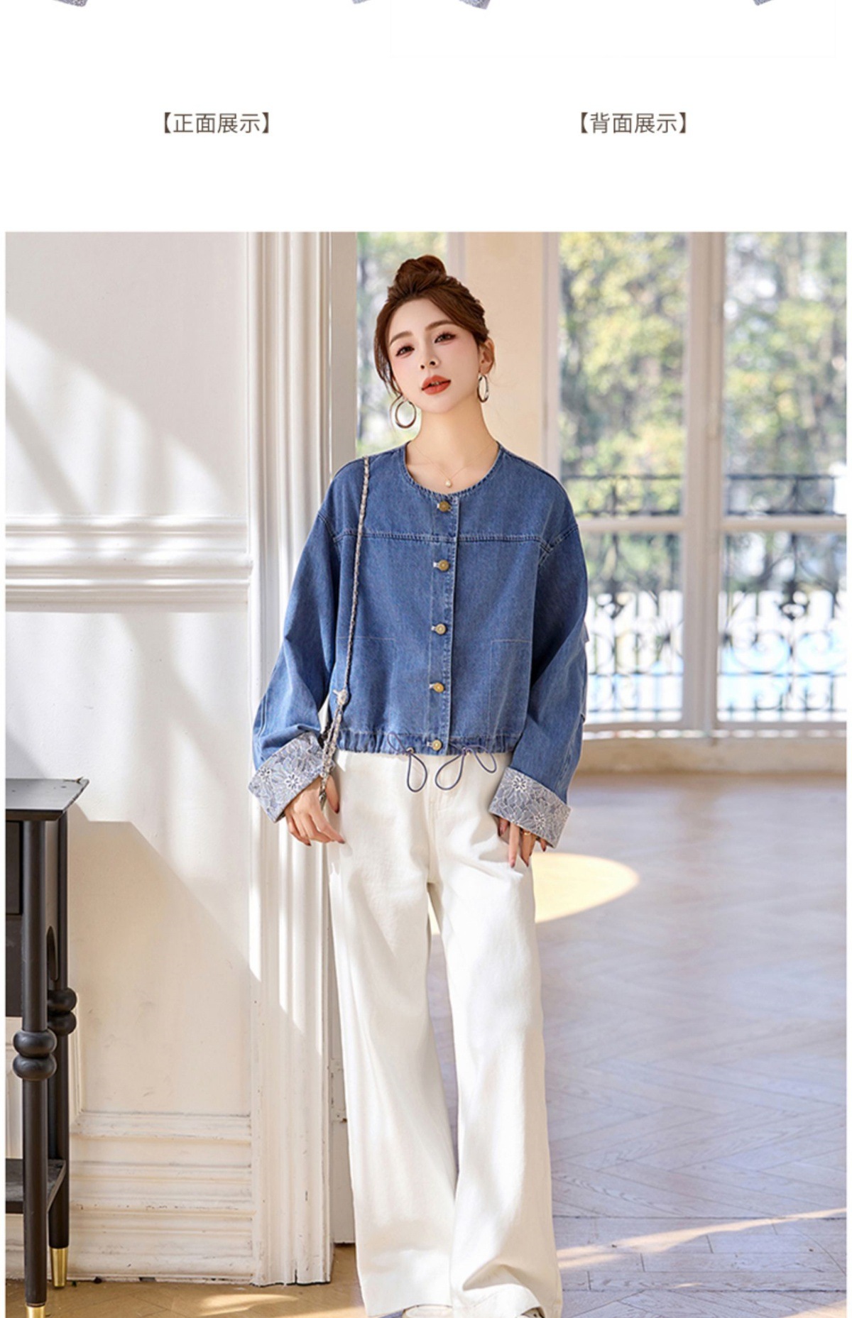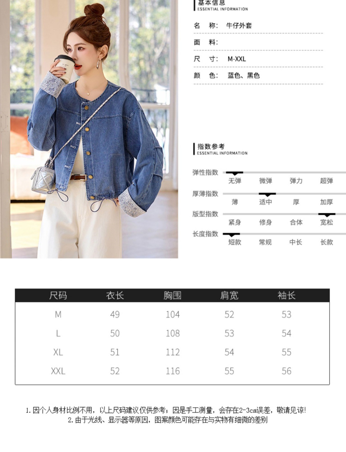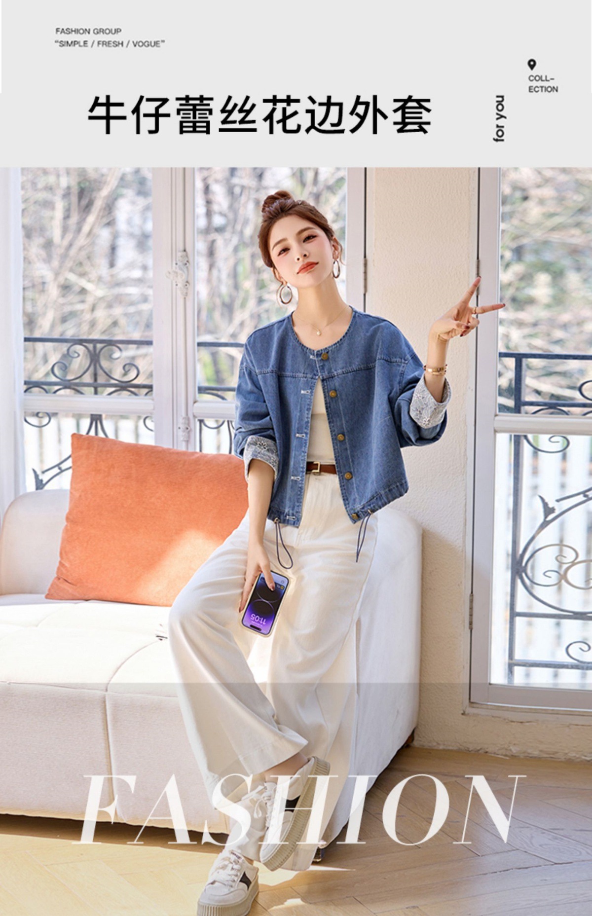 复古牛仔外套,拼接蕾丝设计感超好看夹克上衣HR-ASLZ7583
