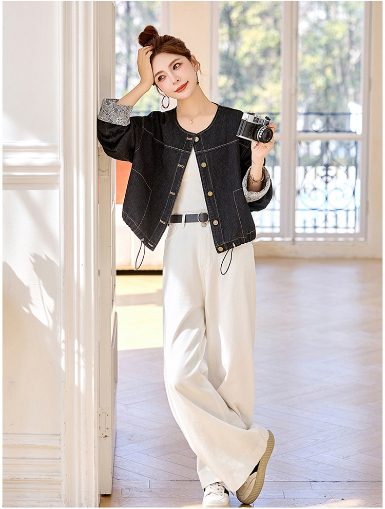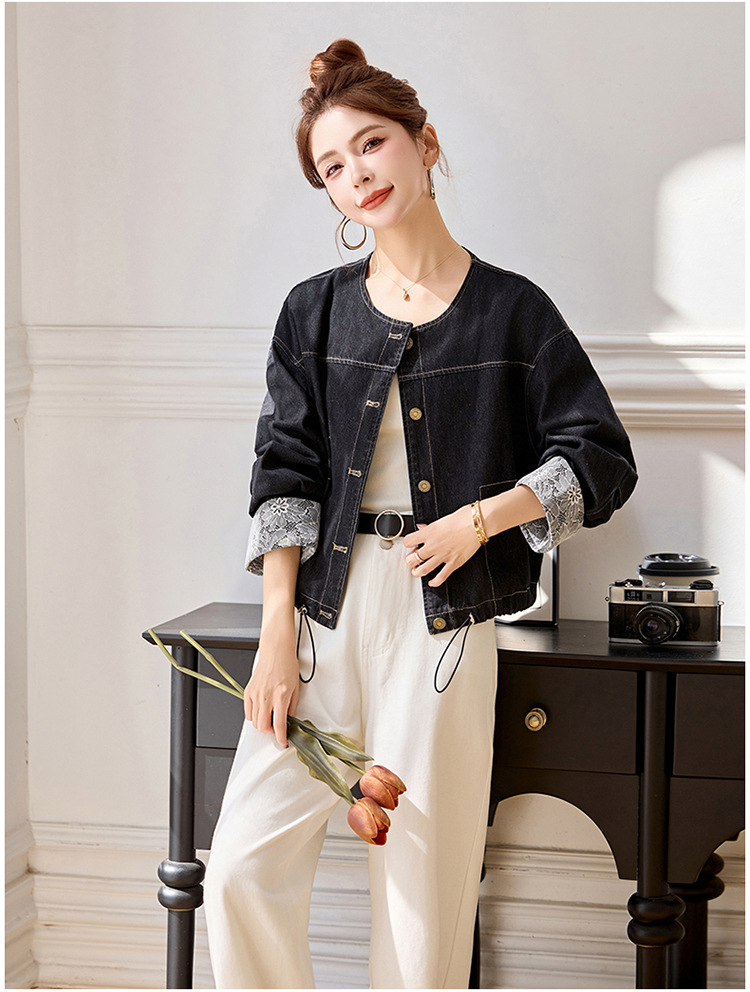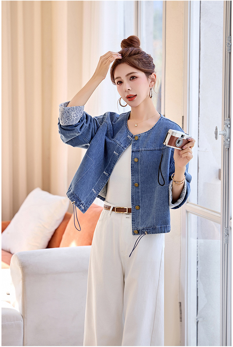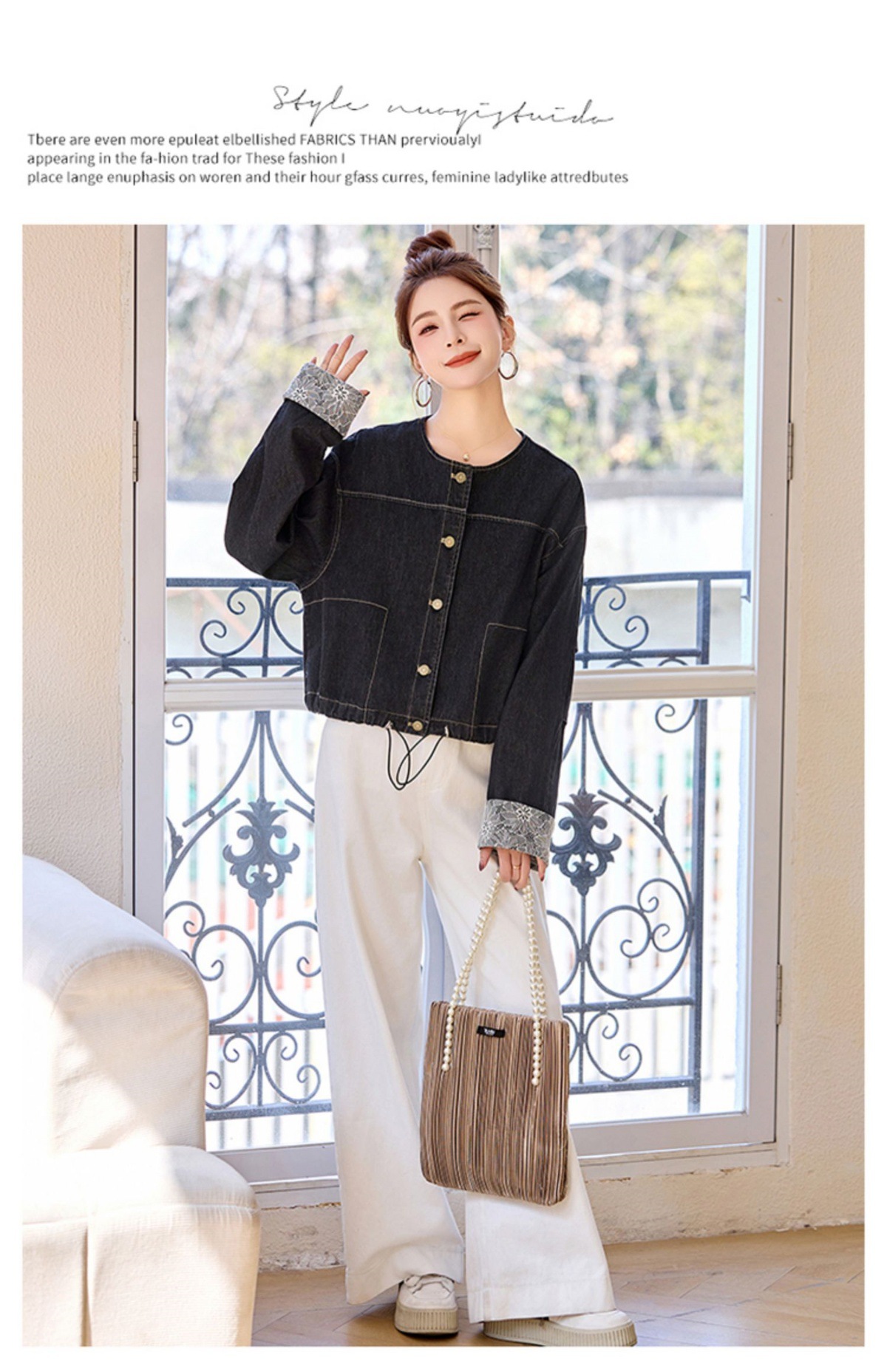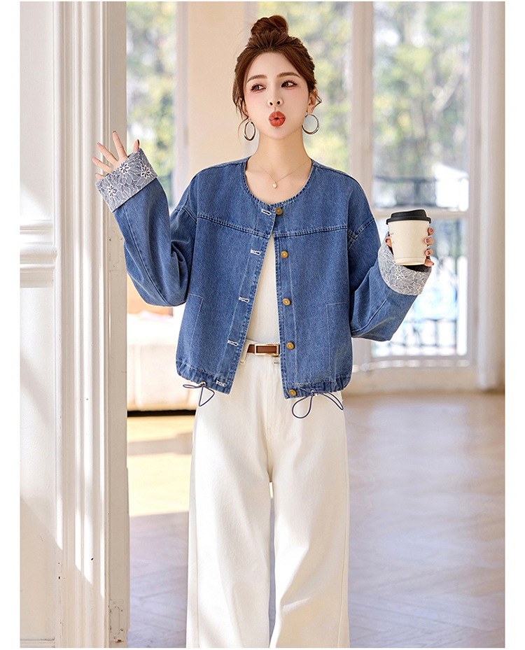 复古牛仔外套,拼接蕾丝设计感超好看夹克上衣HR-ASLZ7583