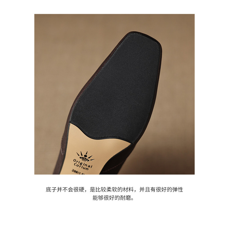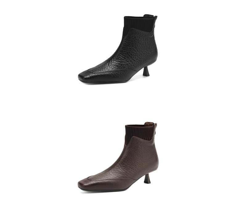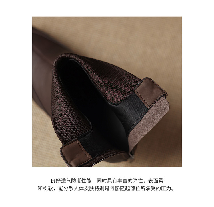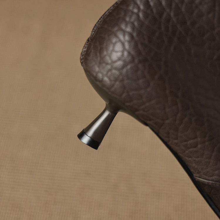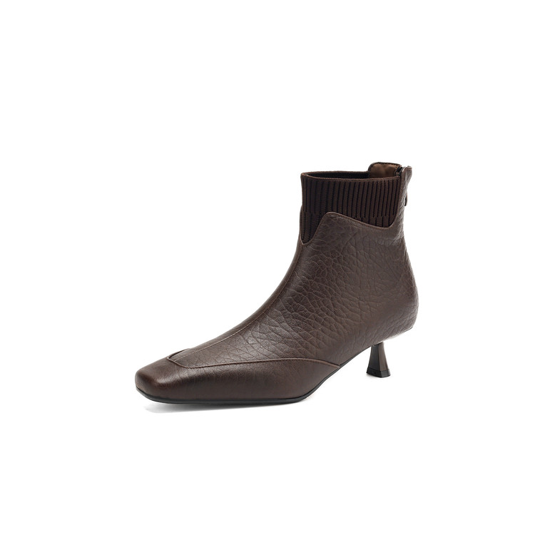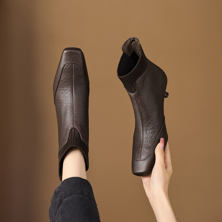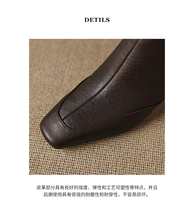 【预售5天】4.5cm牛皮尖头短靴女秋冬棕色切尔西靴子新款细跟弹力瘦瘦靴DMJFG&9558F