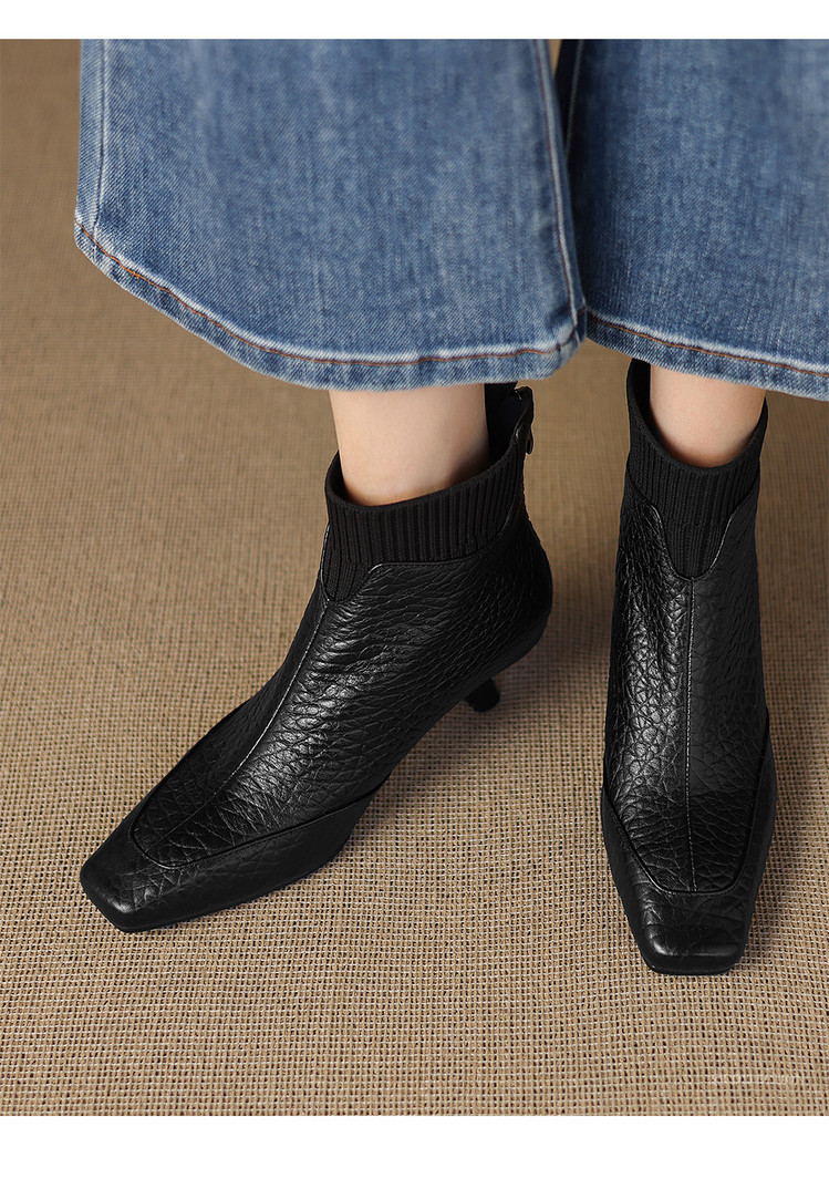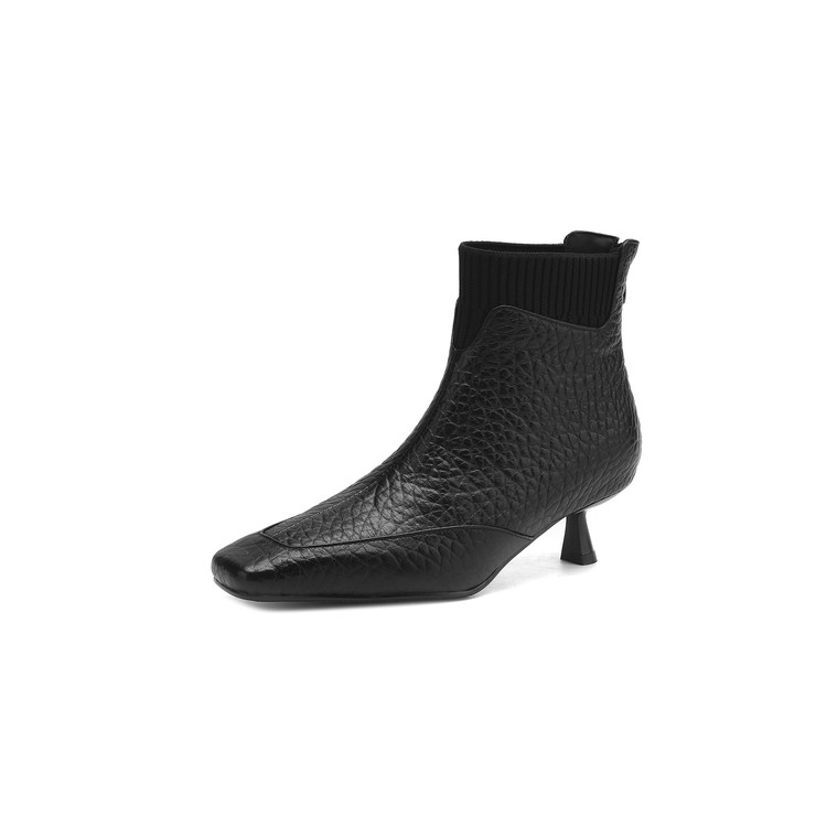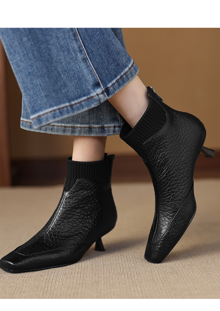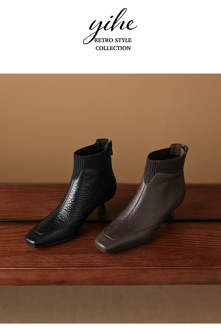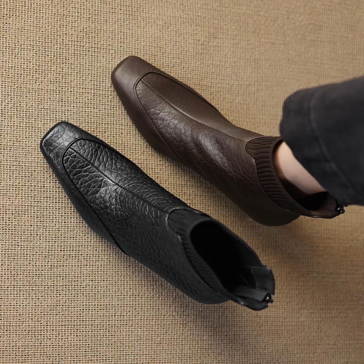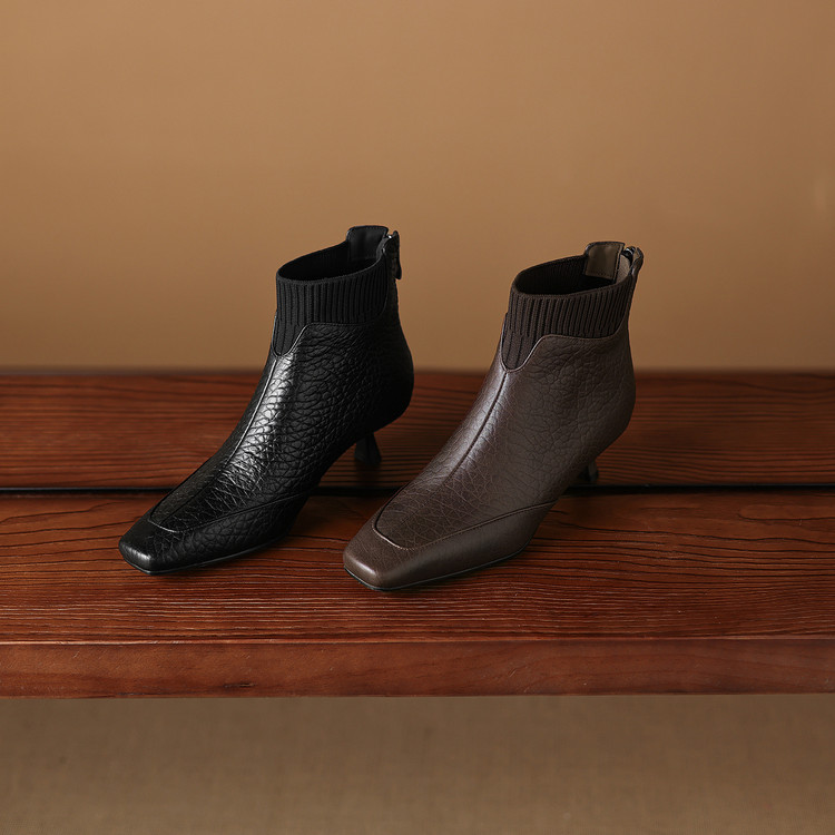 【预售5天】4.5cm牛皮尖头短靴女秋冬棕色切尔西靴子新款细跟弹力瘦瘦靴DMJFG&9558F