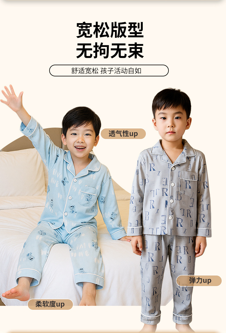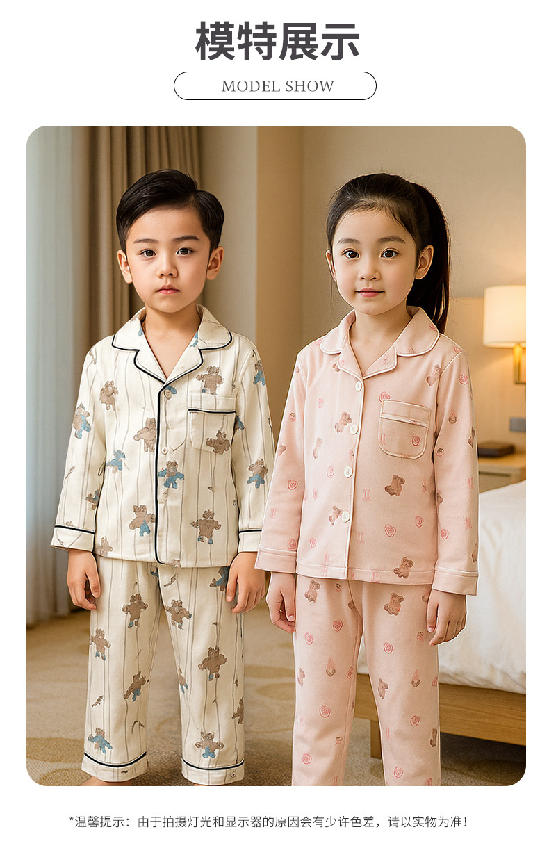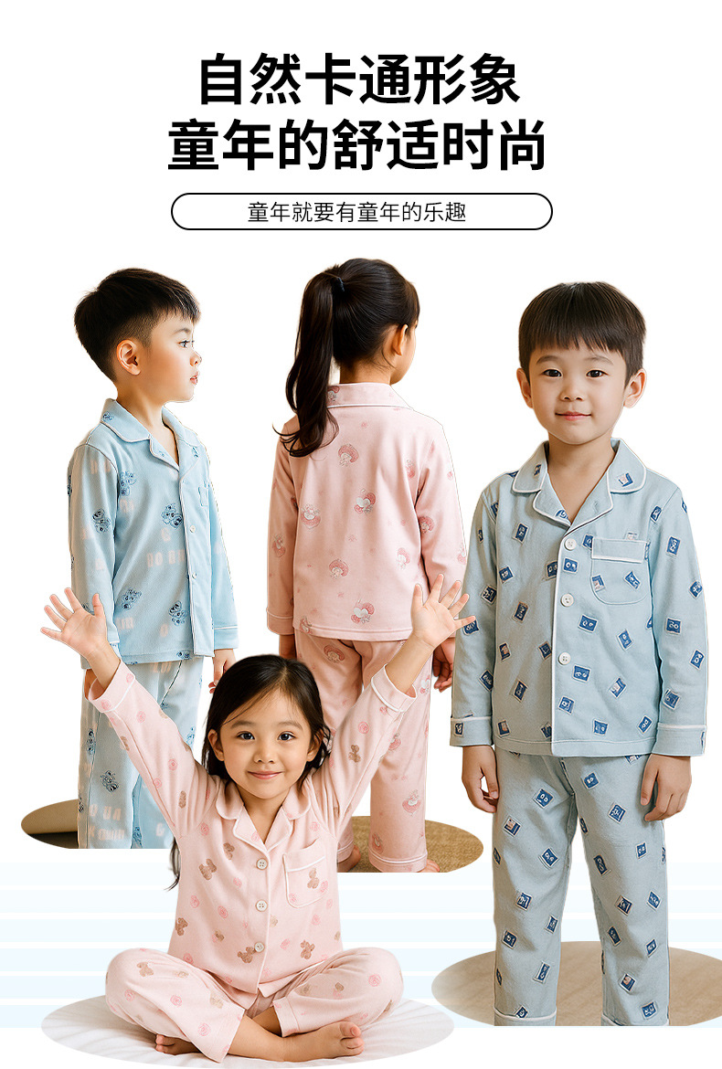 【秒杀】【39.9元/套起】儿童春季家居服套装翻领男童女童睡衣居家套装