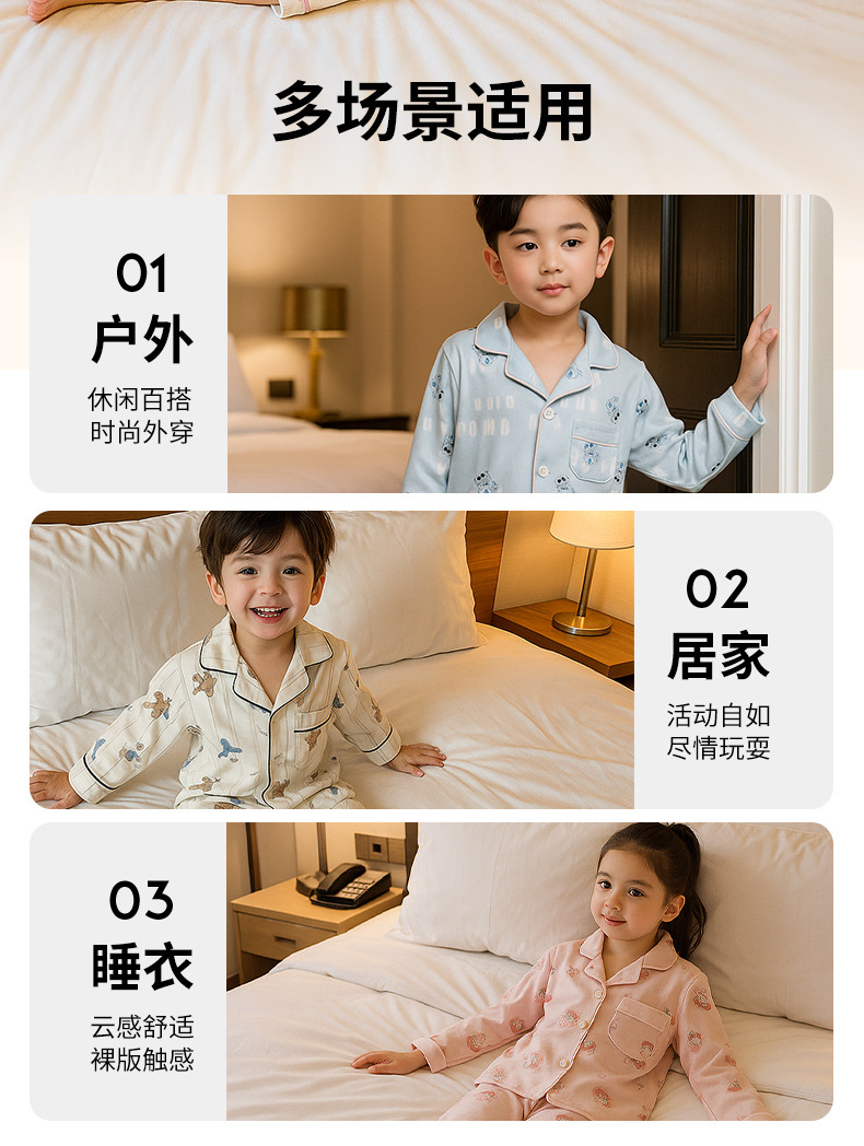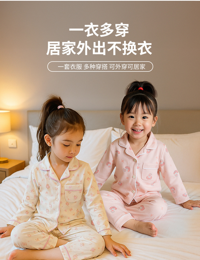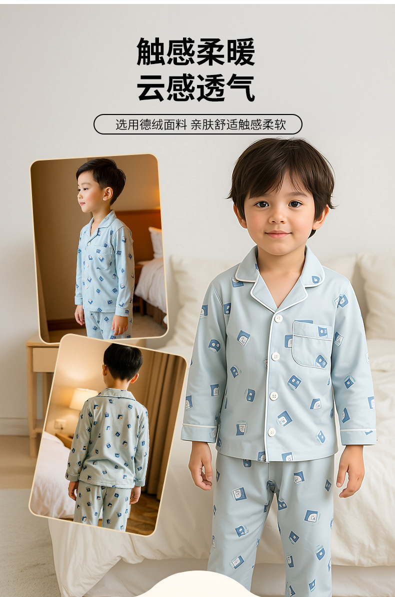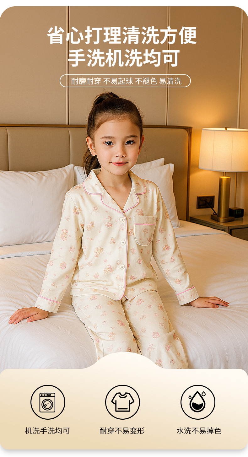 【秒杀】【39.9元/套起】儿童春季家居服套装翻领男童女童睡衣居家套装