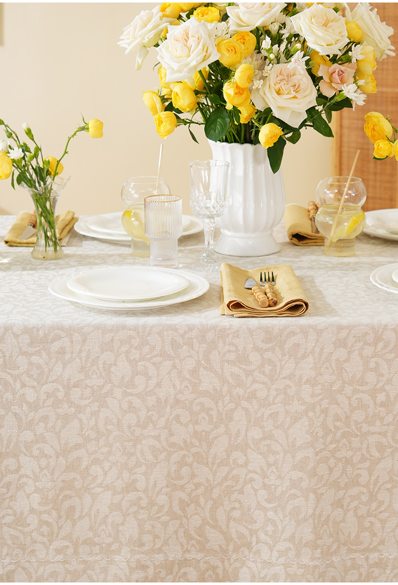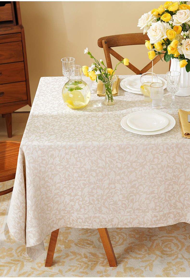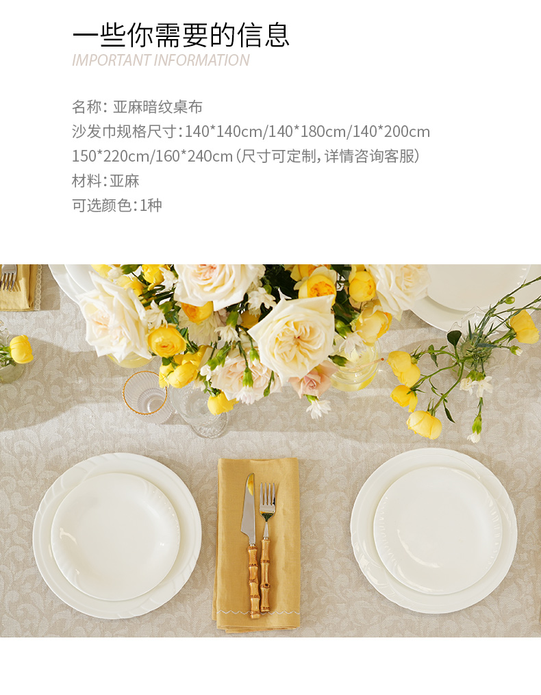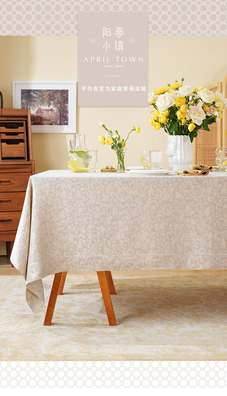 亚麻暗纹桌布茶几餐桌轻奢棉高级感长方形氛围感法式复古结婚定制