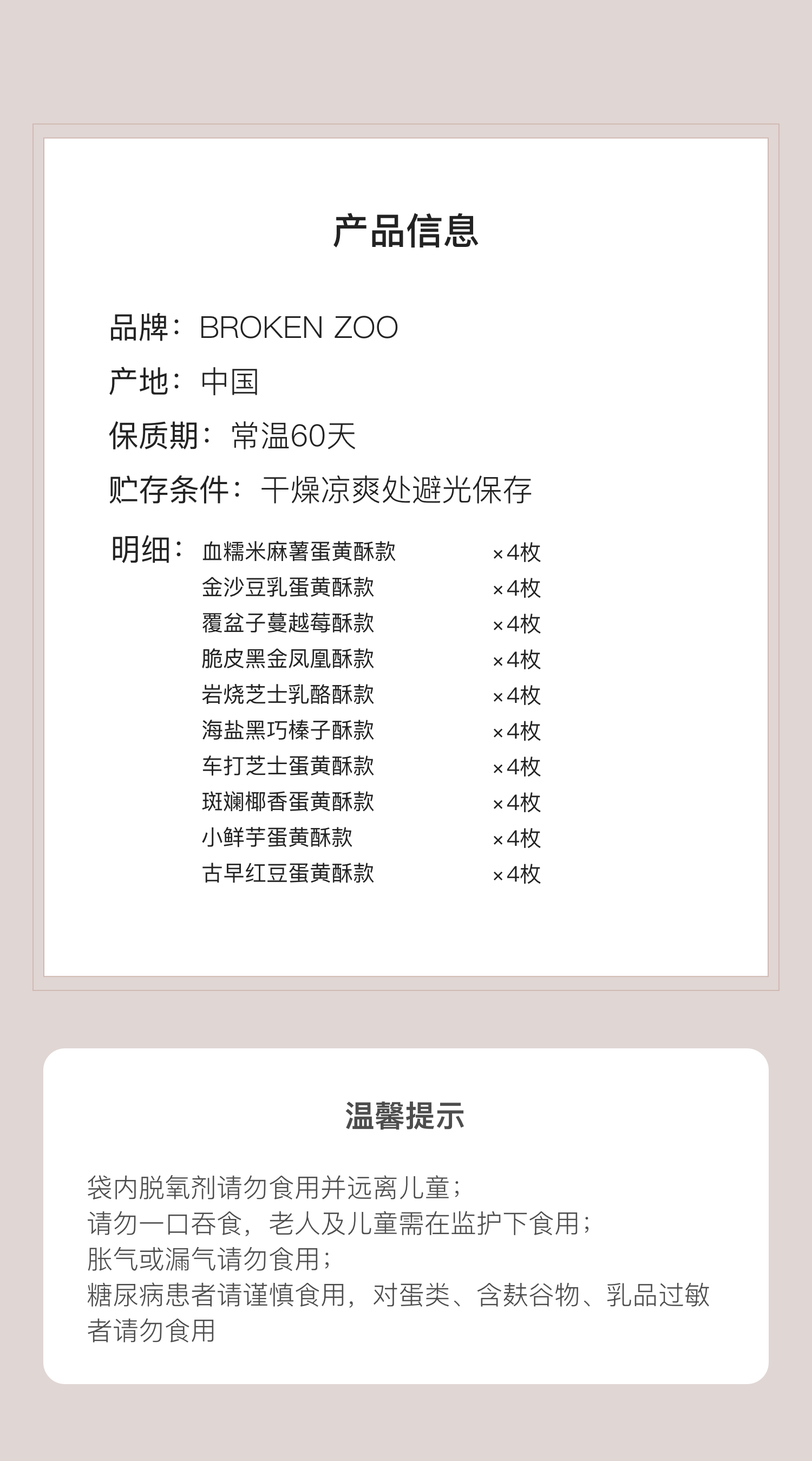 BROKEN ZOO 覆盆子蔓越莓酥/岩烧芝士奶酪酥/血糯米麻薯蛋黄酥/金沙豆乳蛋蛋黄酥/海盐黑巧榛子酥/脆皮黑金凤凰酥