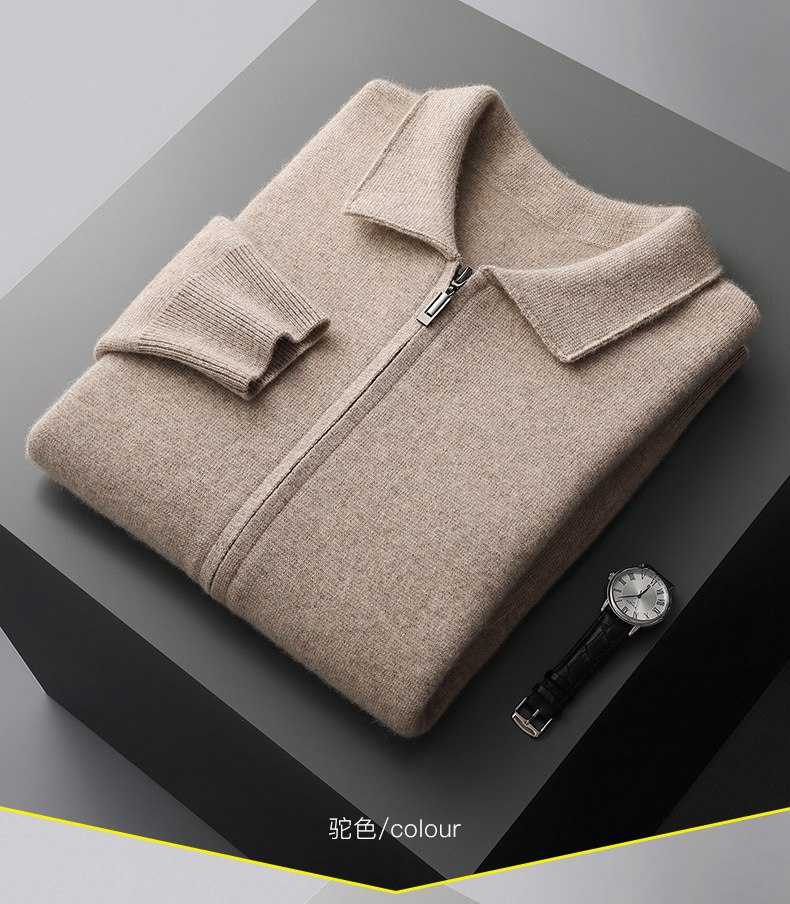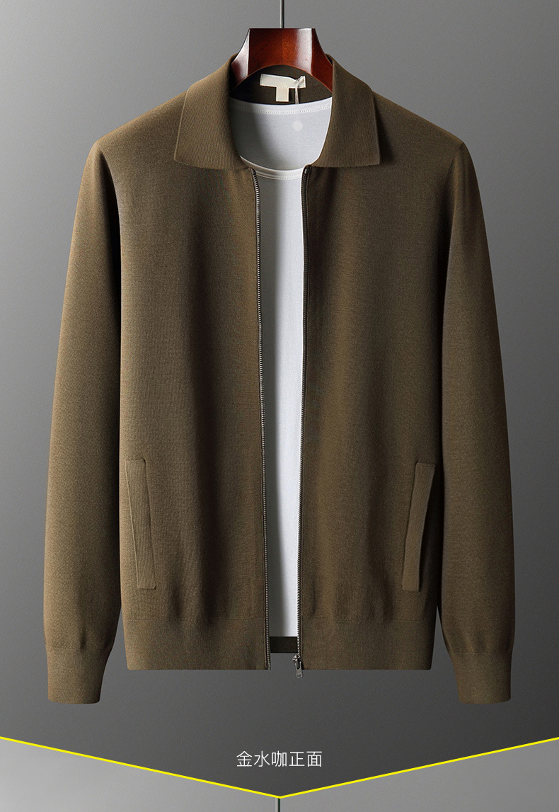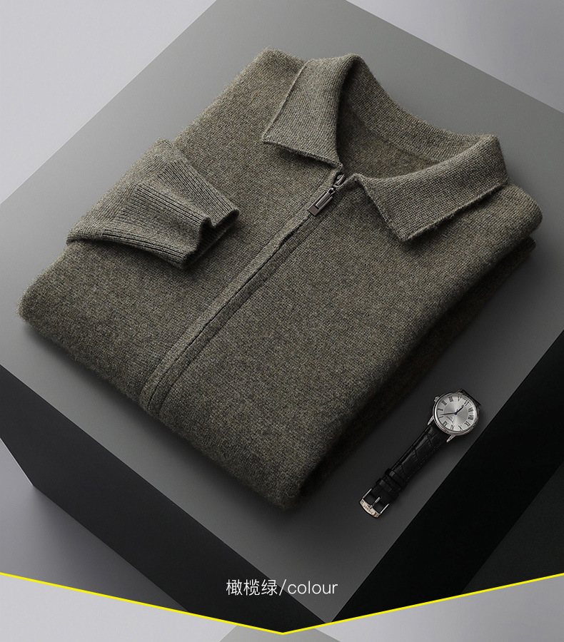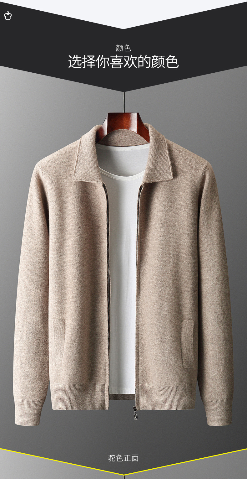 丁摩 100%纯羊毛开衫加厚秋冬男针织开衫宽松外穿潮流翻领大码外套4ZF-2340