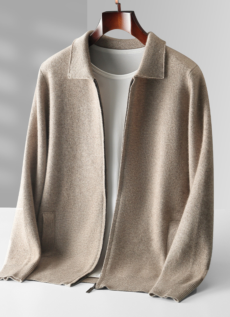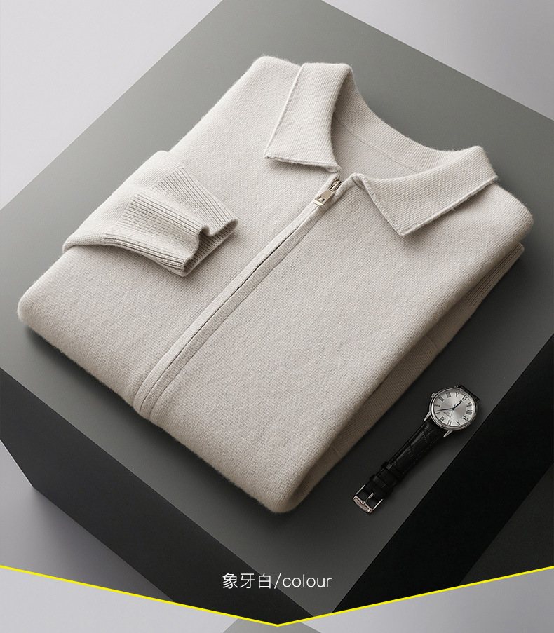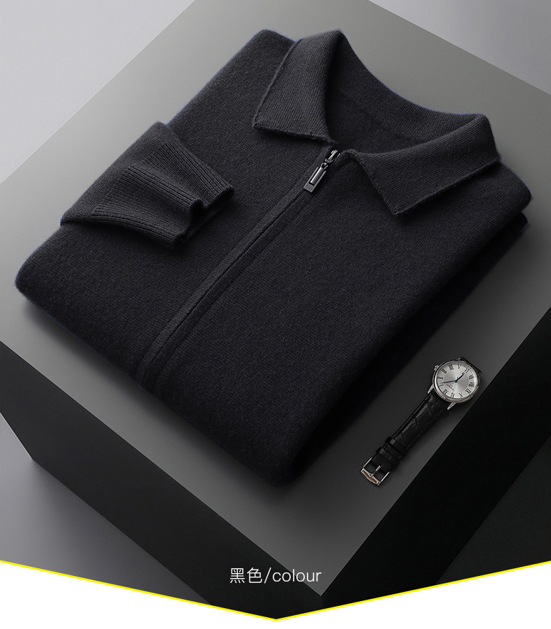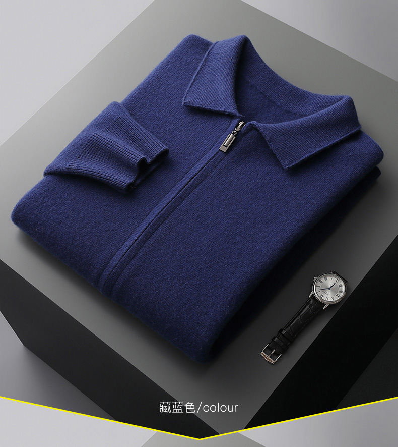 丁摩 100%纯羊毛开衫加厚秋冬男针织开衫宽松外穿潮流翻领大码外套4ZF-2340