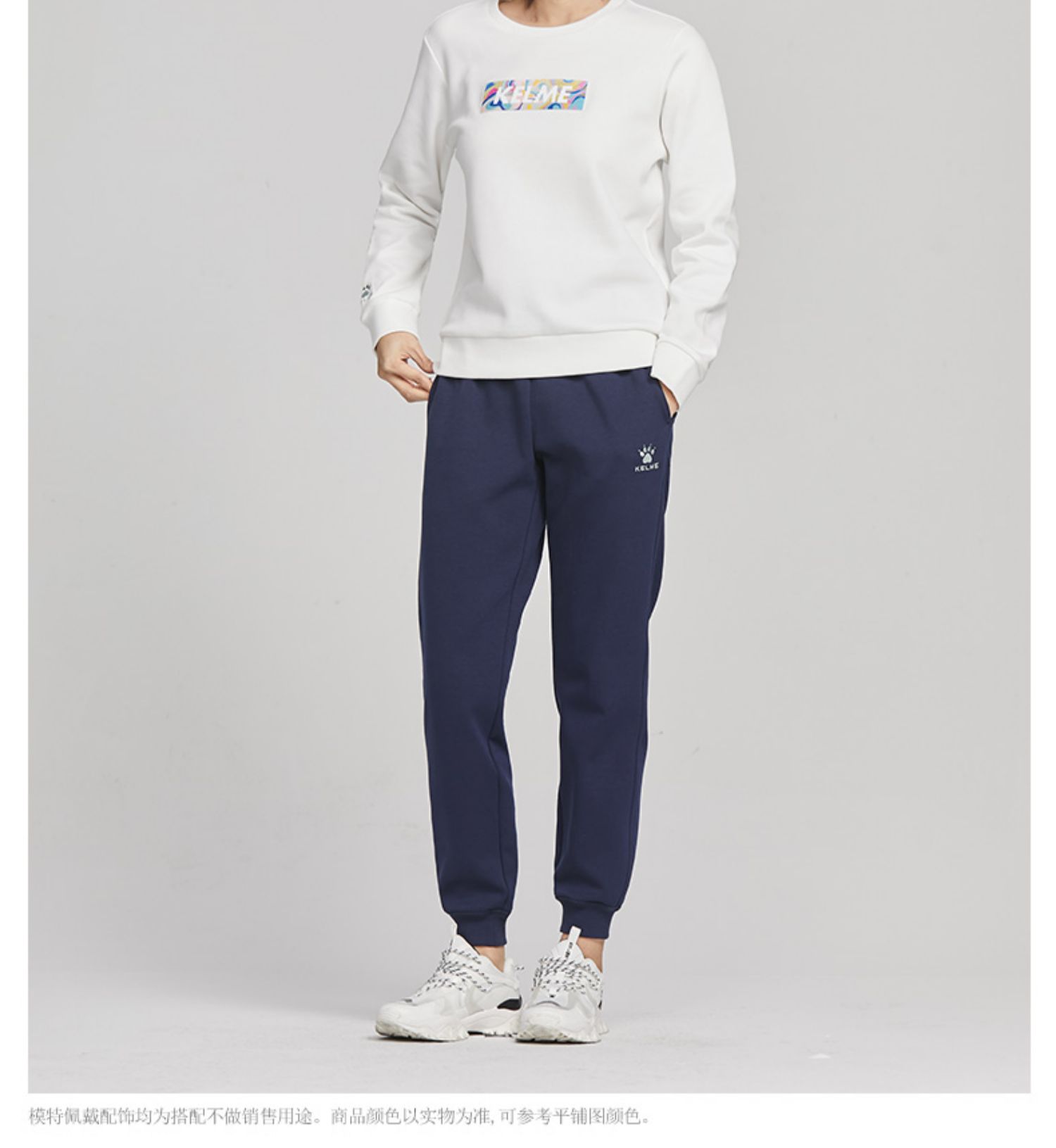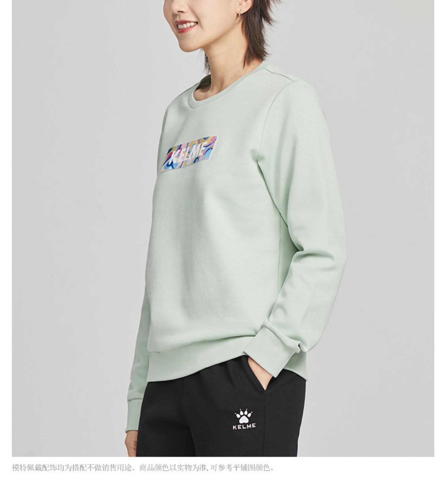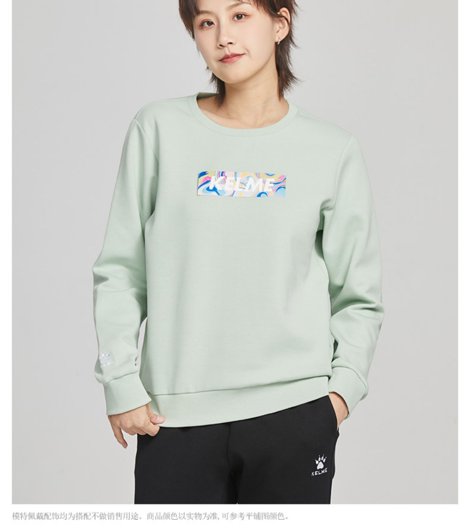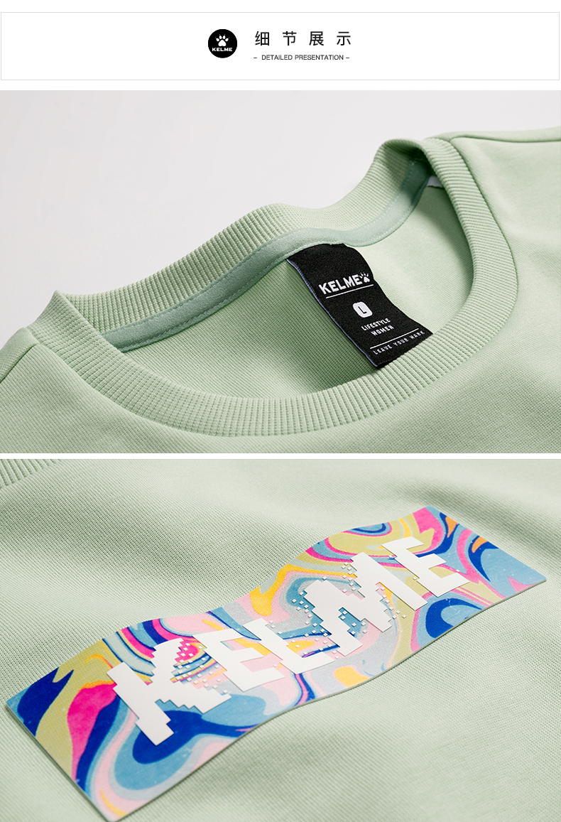 KELME卡尔美圆领卫衣女春季韩版时尚宽松休闲白色拼色字母上衣