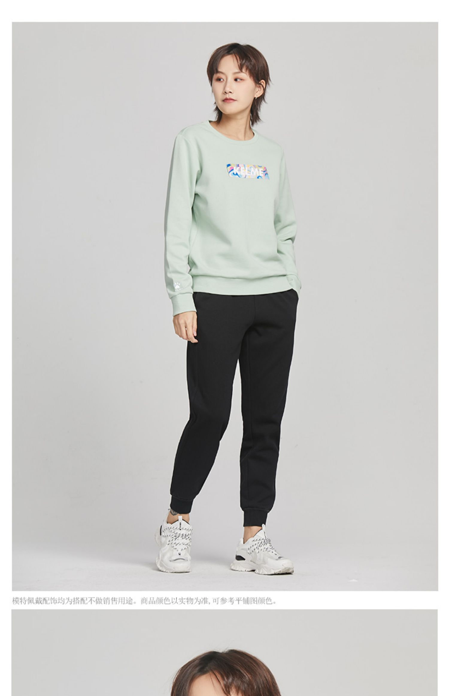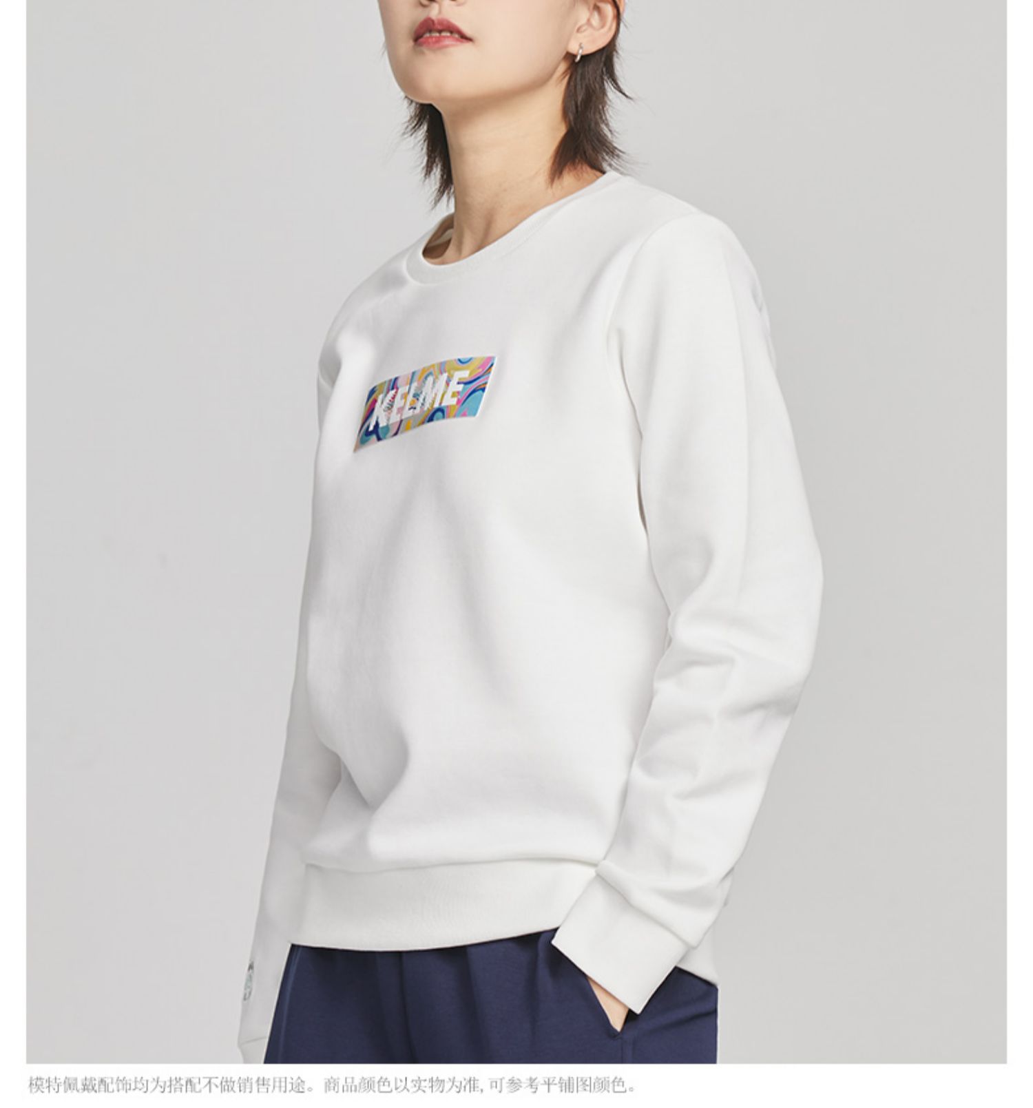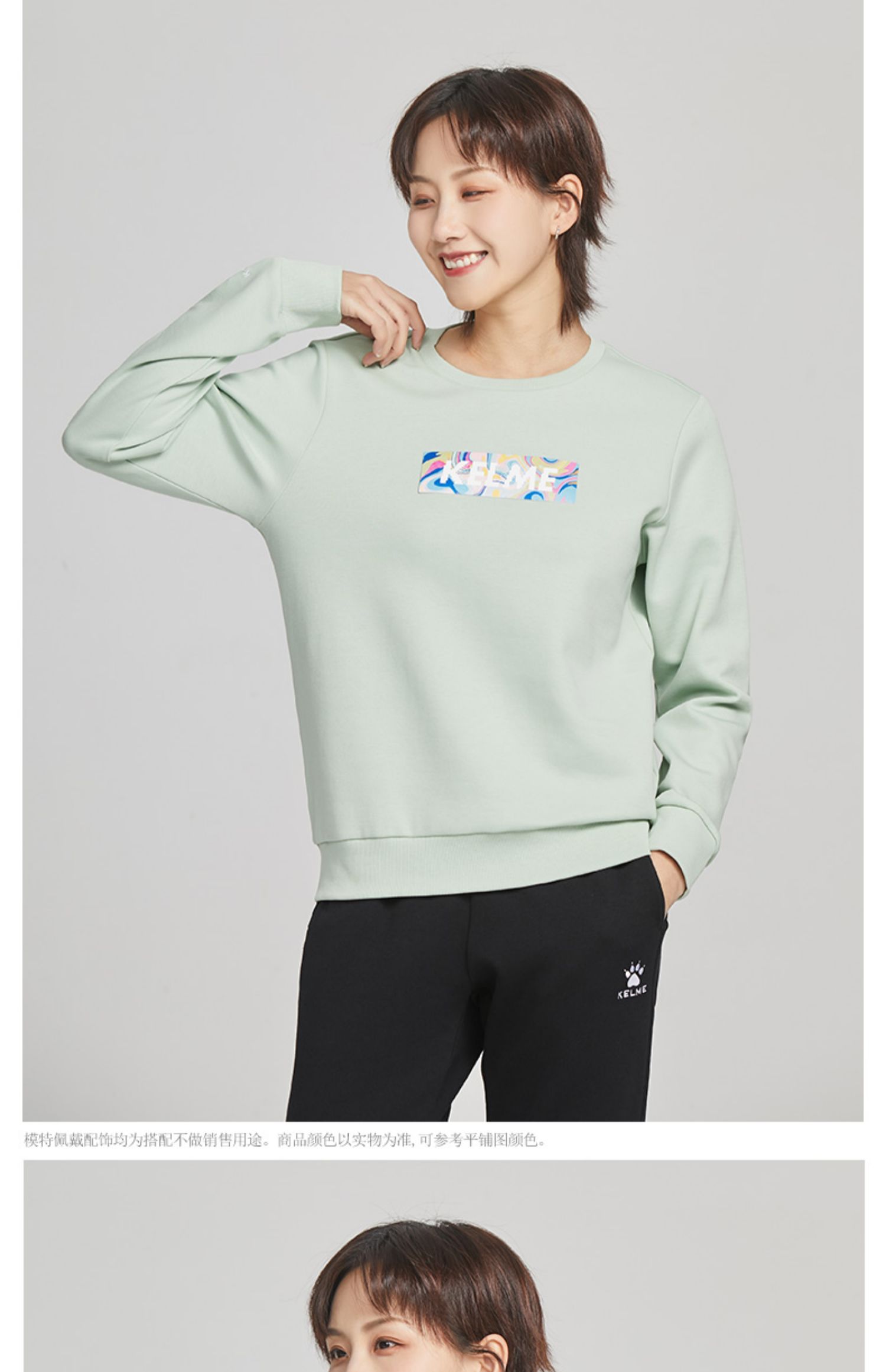 KELME卡尔美圆领卫衣女春季韩版时尚宽松休闲白色拼色字母上衣