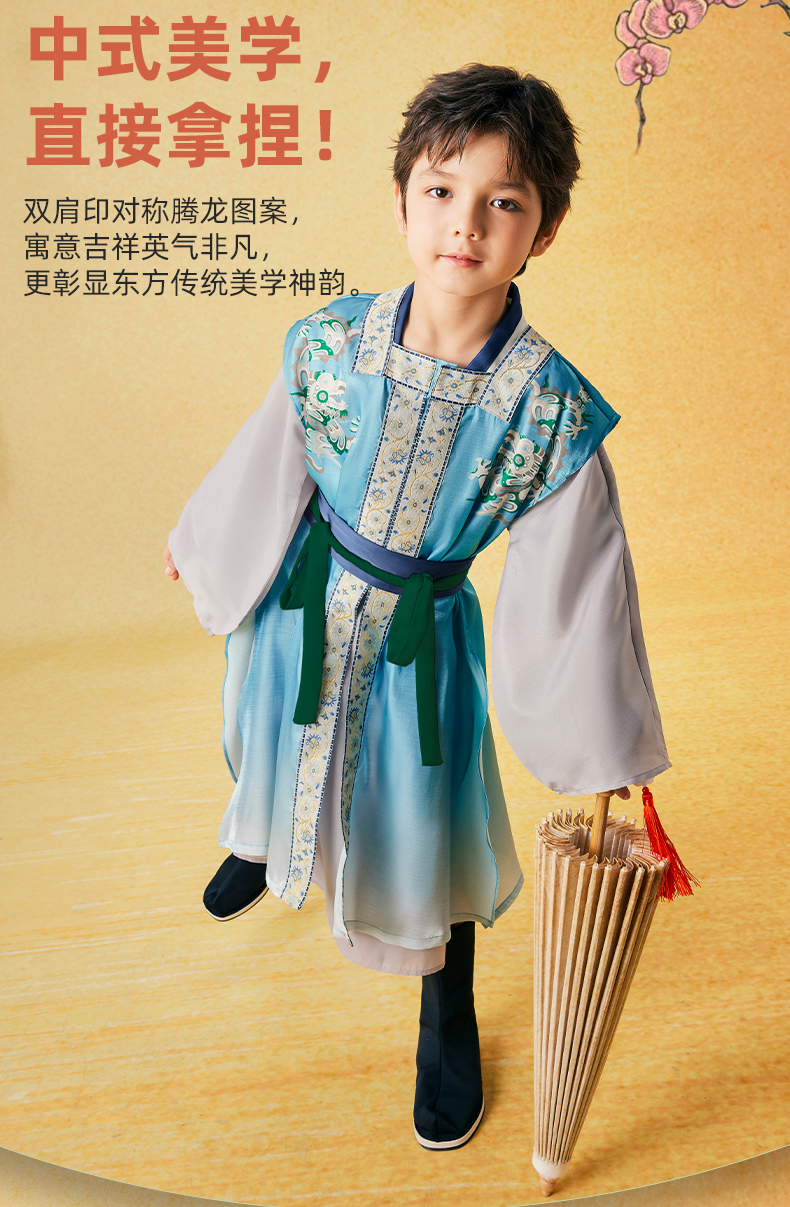 【年衣】童装男童汉服表演服春秋款儿童国风古装国学唐装演出服飞鱼服齐乐龙龙汉服