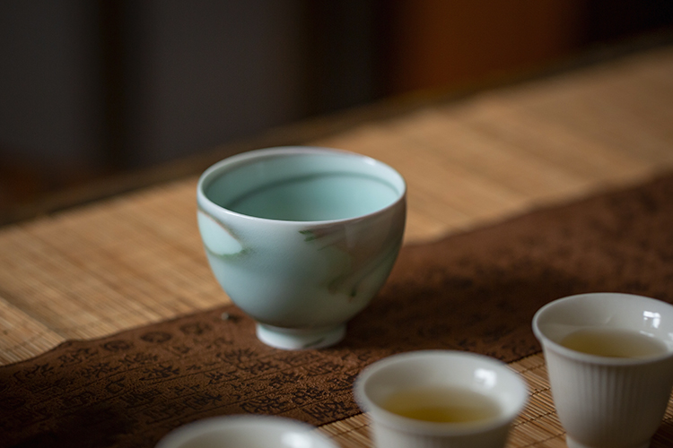采用少见的绞泥工艺,在常见青瓷中融入水墨晕染,