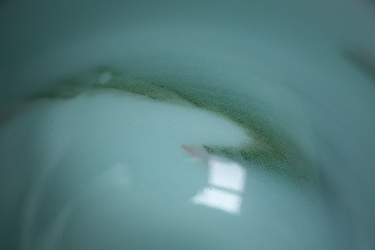 在莹润的釉面上形成了如同水墨一般的粉青晕染。
