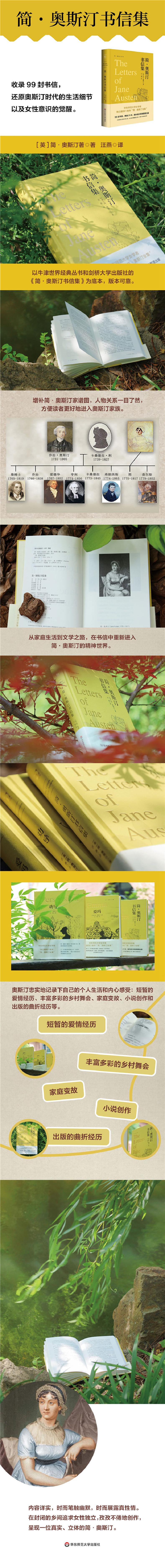 ☆从家庭生活到文学之路,在书信中重新进入简·奥斯汀的精神世界。奥斯汀忠实地记录下自己的个人生活和内心感受:短暂的爱情经历、丰富多彩的乡村舞会、家庭变故、小说创作和出版的曲折经历等。