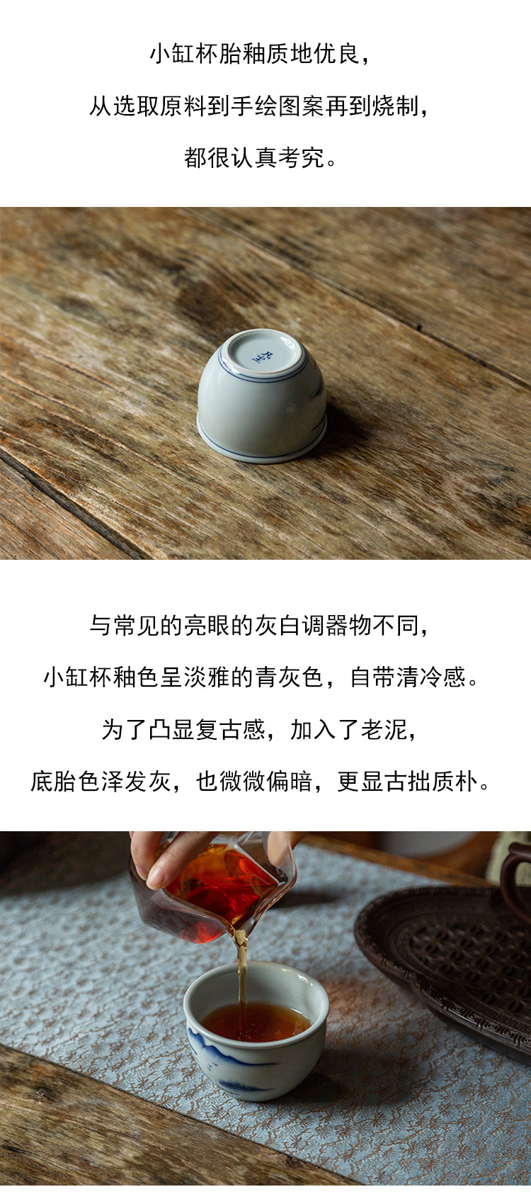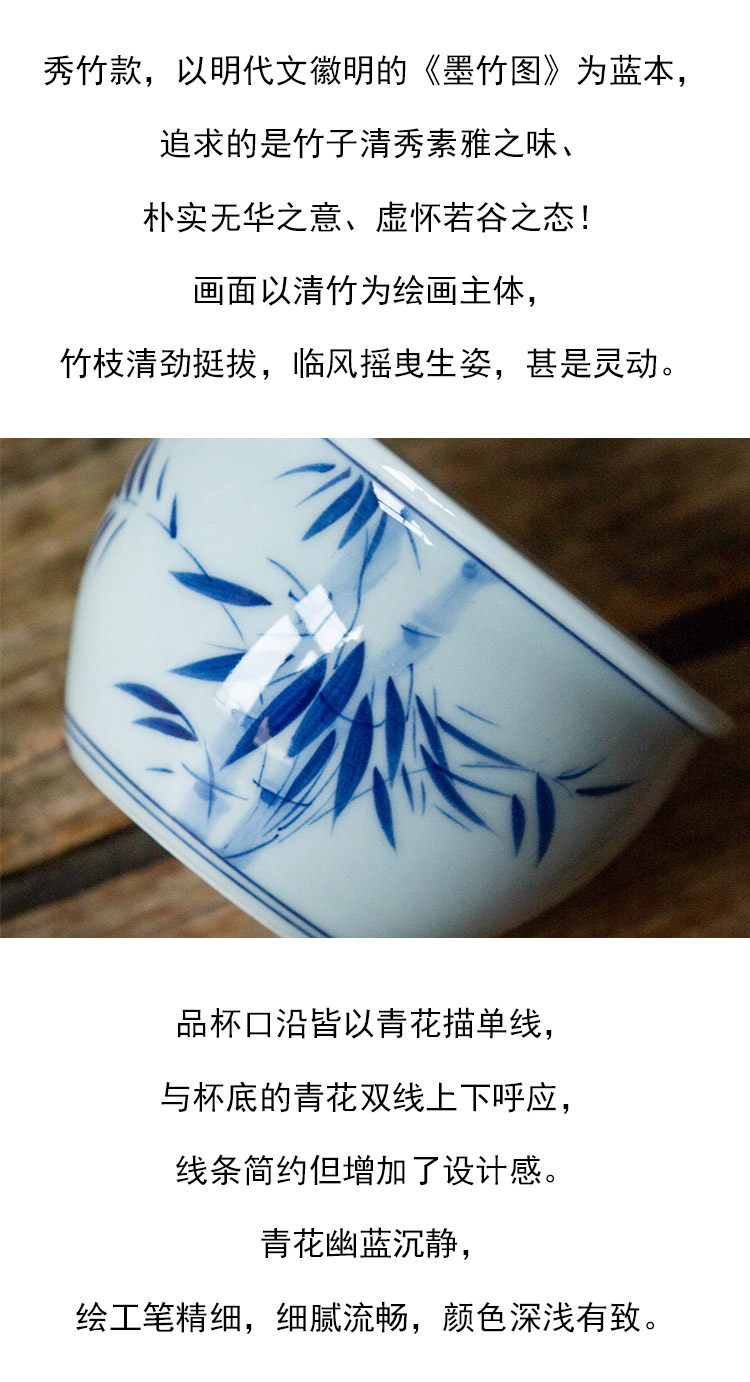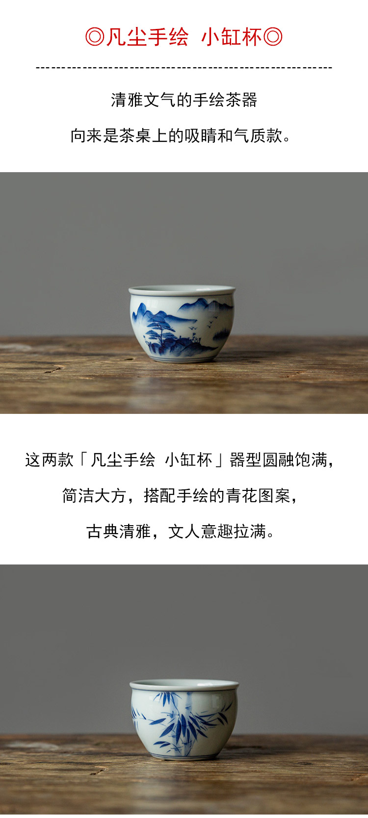 茶香记 120ml凡尘手绘青花秀竹小缸杯素净清雅茶杯质朴圆融饱满