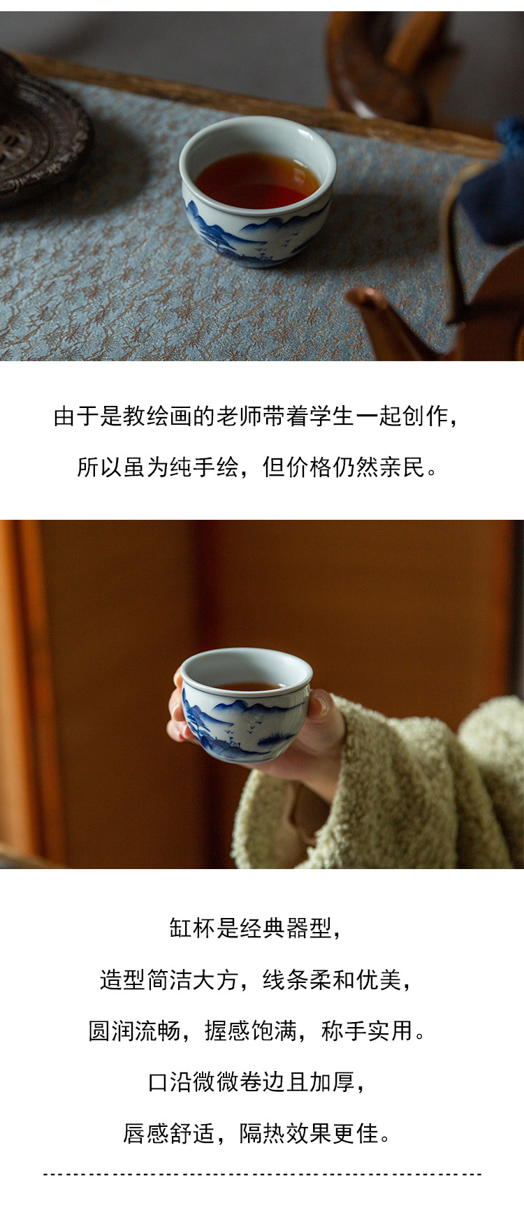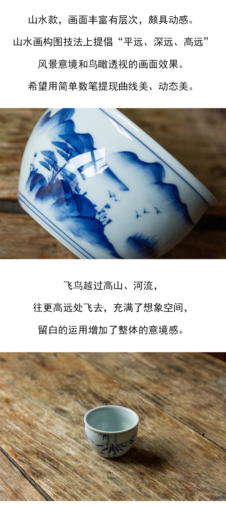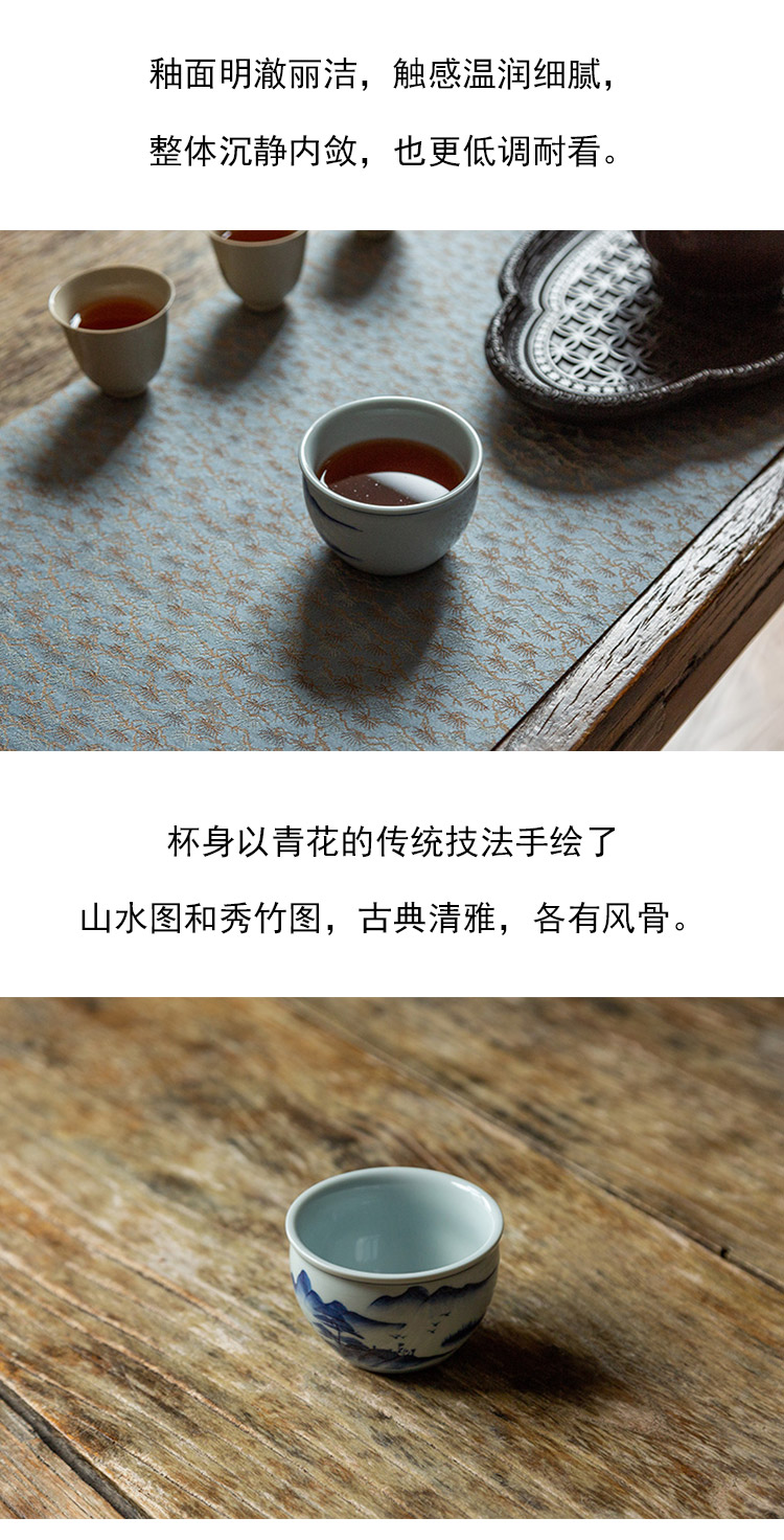 茶香记 120ml凡尘手绘青花秀竹小缸杯素净清雅茶杯质朴圆融饱满