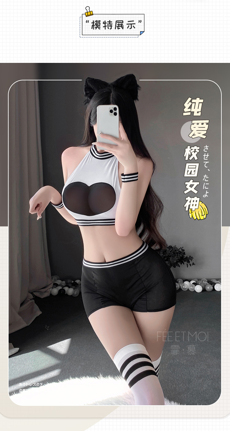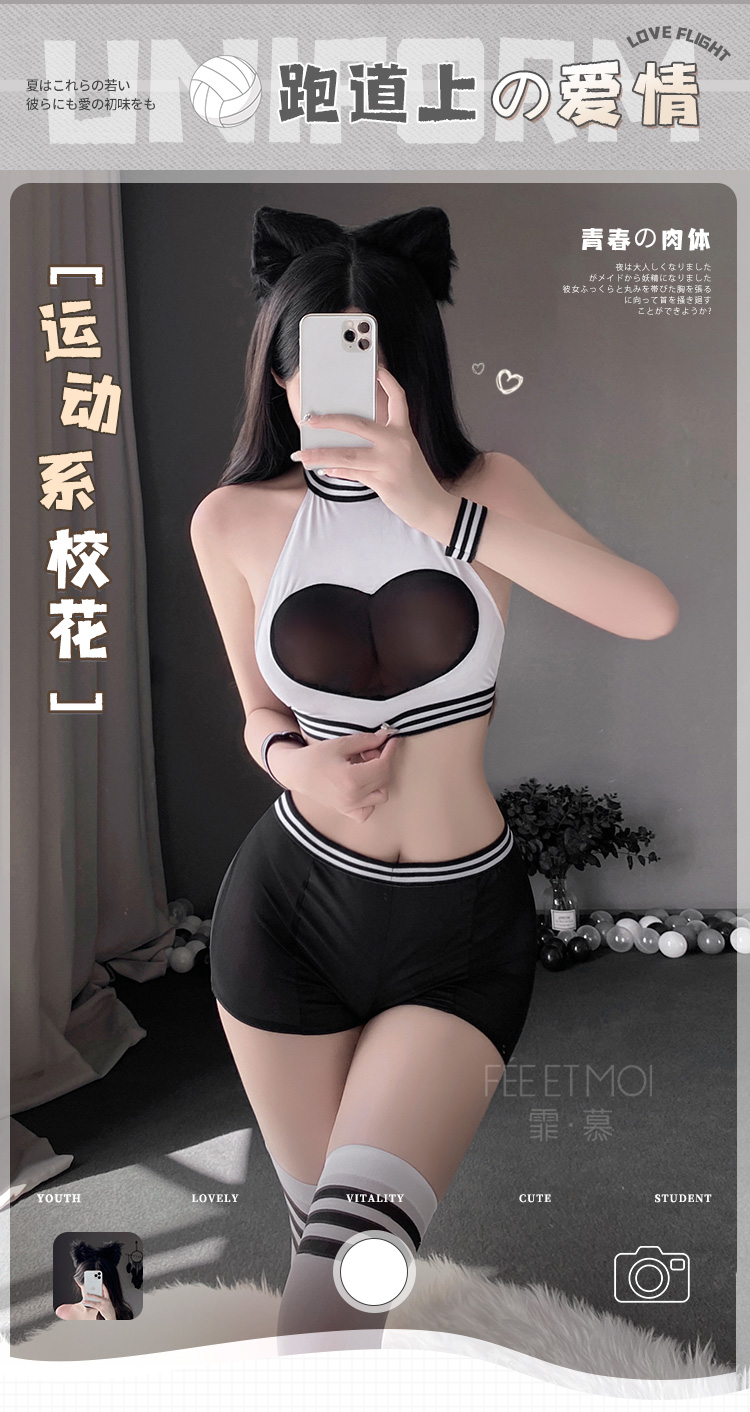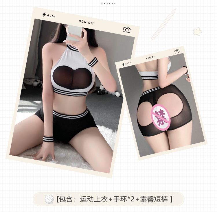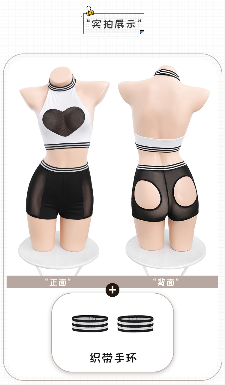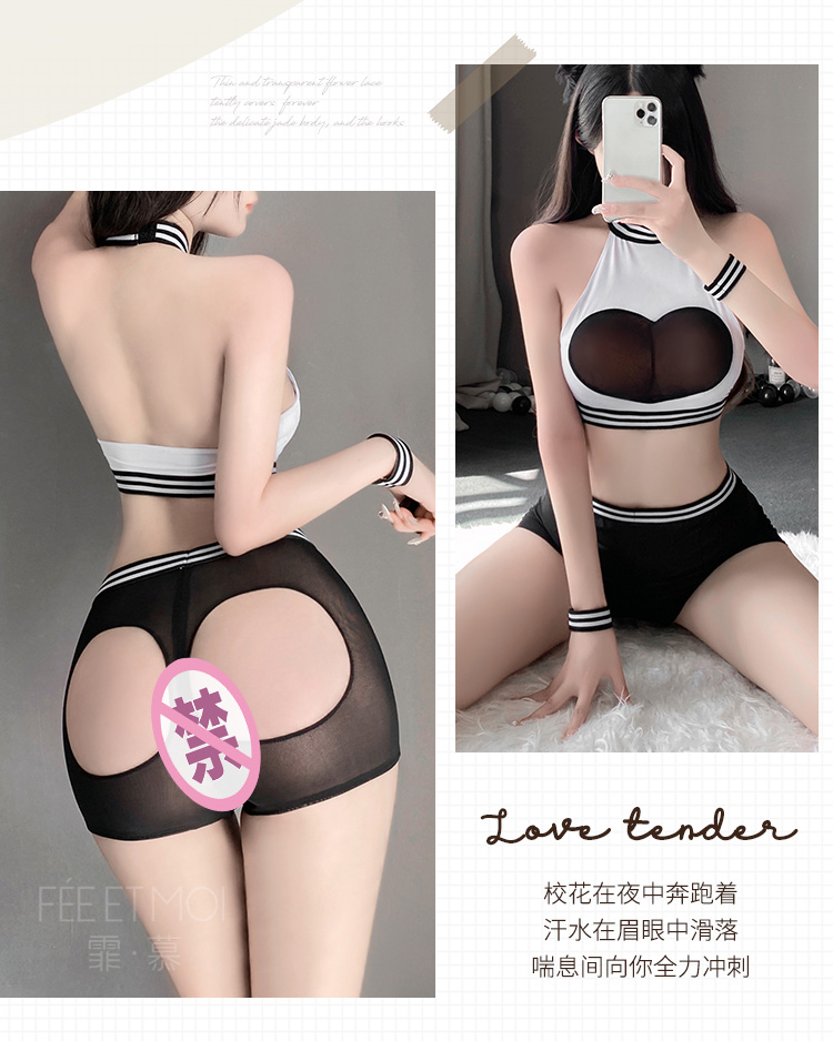 【健身靓妹】霏慕 爱心透纱挖空露臀运动装6561