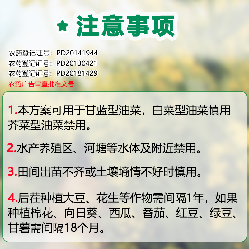 油菜田苗后除草方案禾阔双除精准除草防除多种杂草正品烯草酮农用
