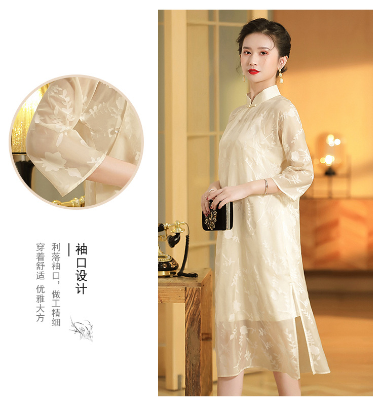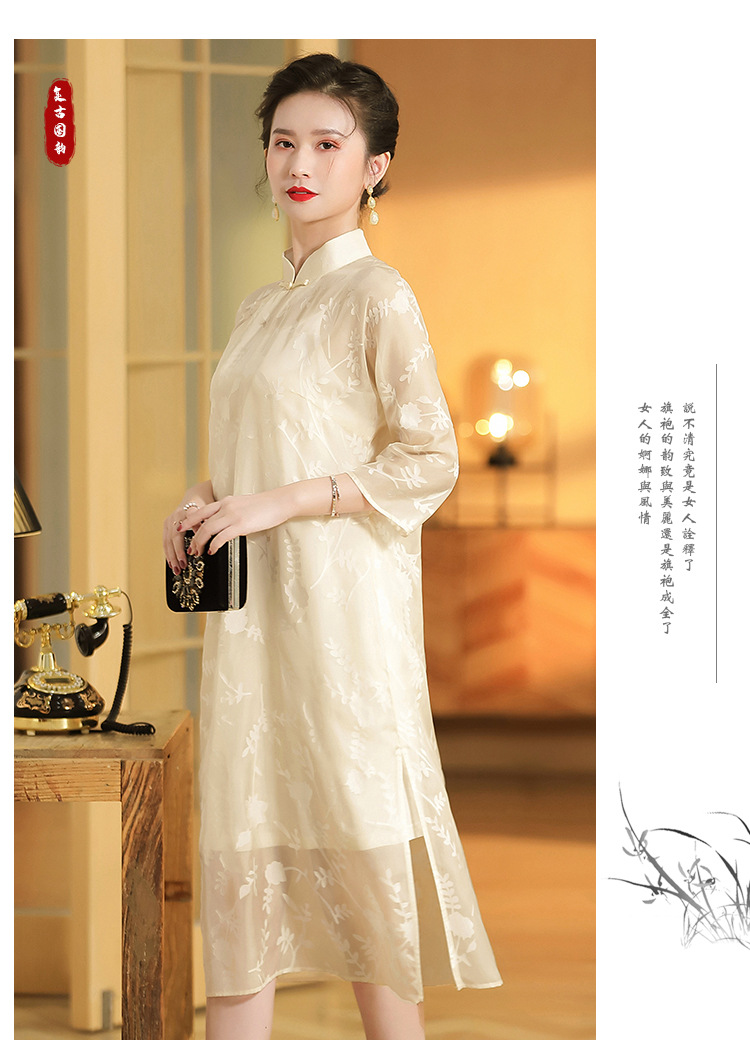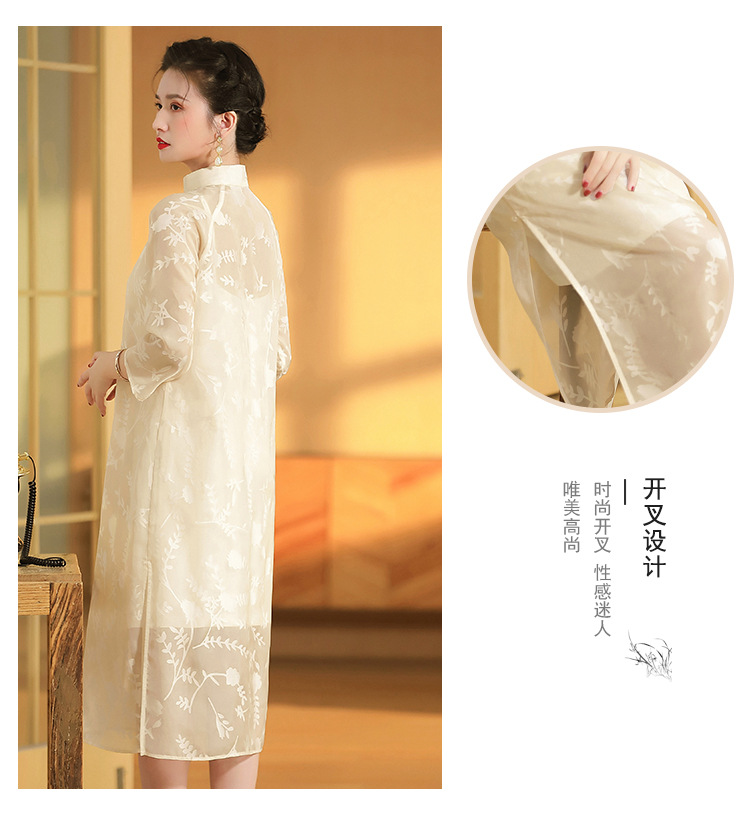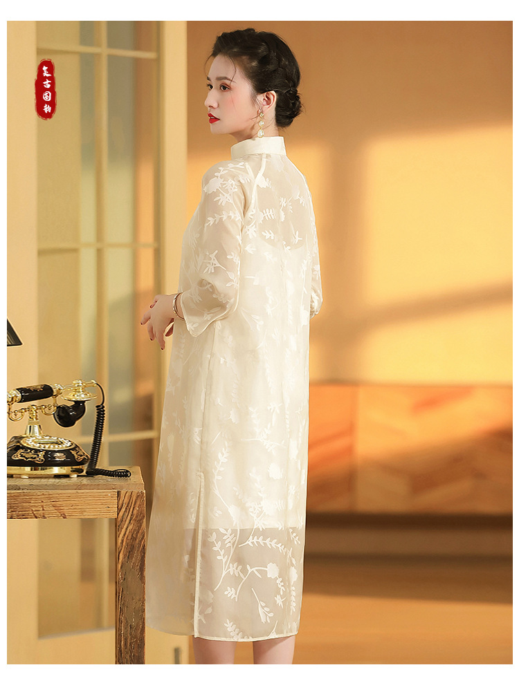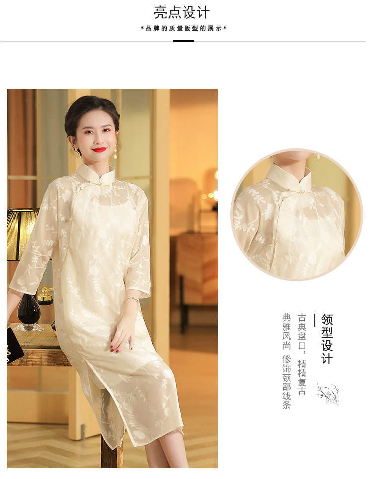上海旗袍厂AYK-QF-200723纱网拼接假两件宽松旗袍裙复古改良立领七分袖旗袍