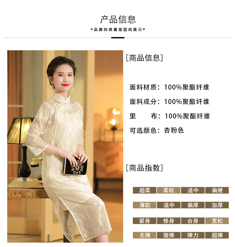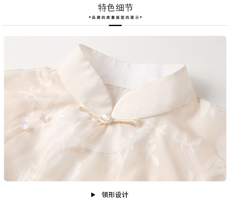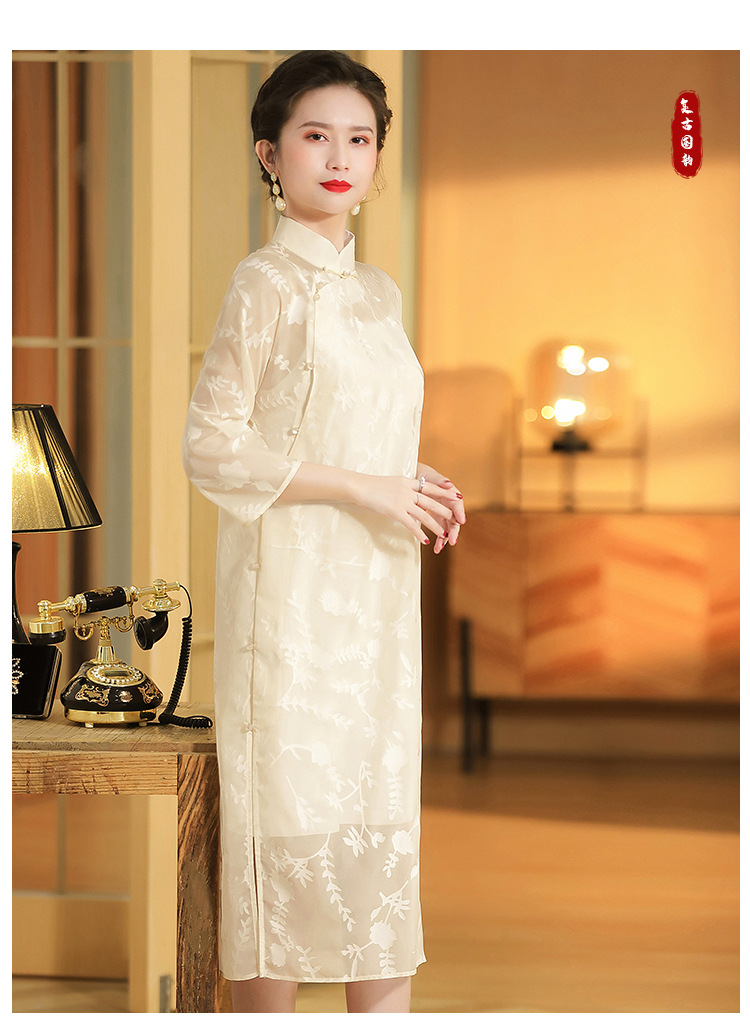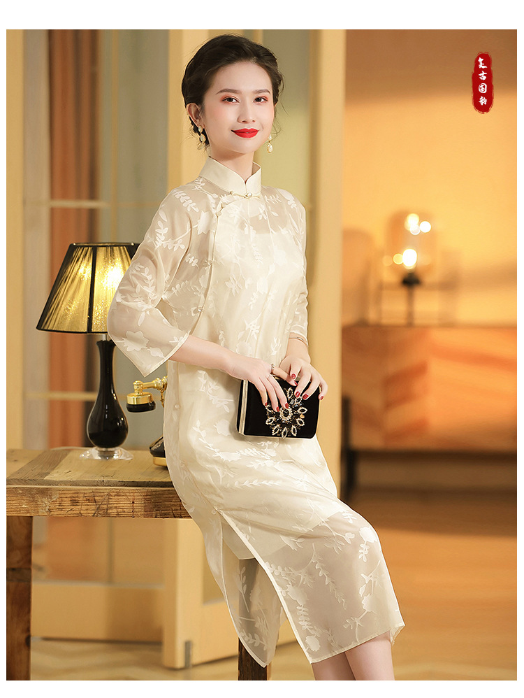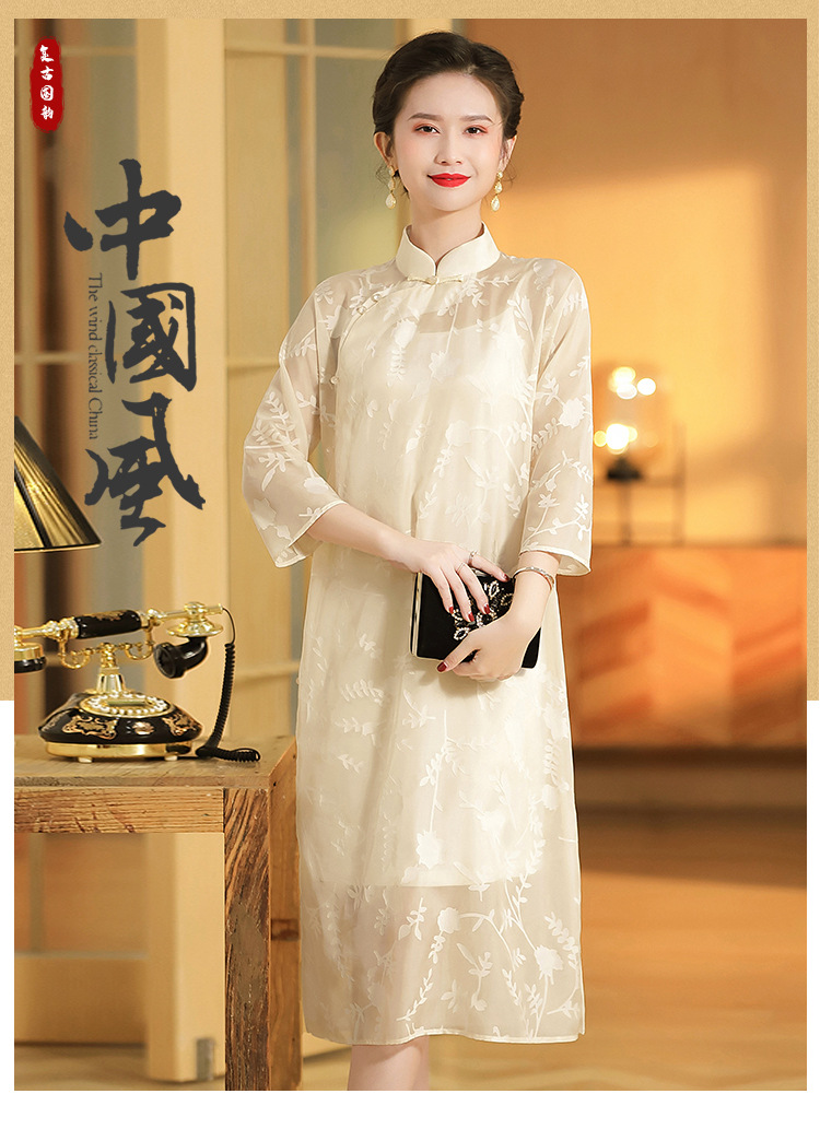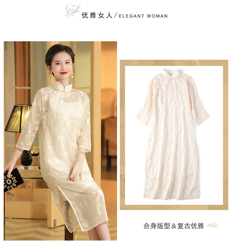 上海旗袍厂AYK-QF-200723纱网拼接假两件宽松旗袍裙复古改良立领七分袖旗袍