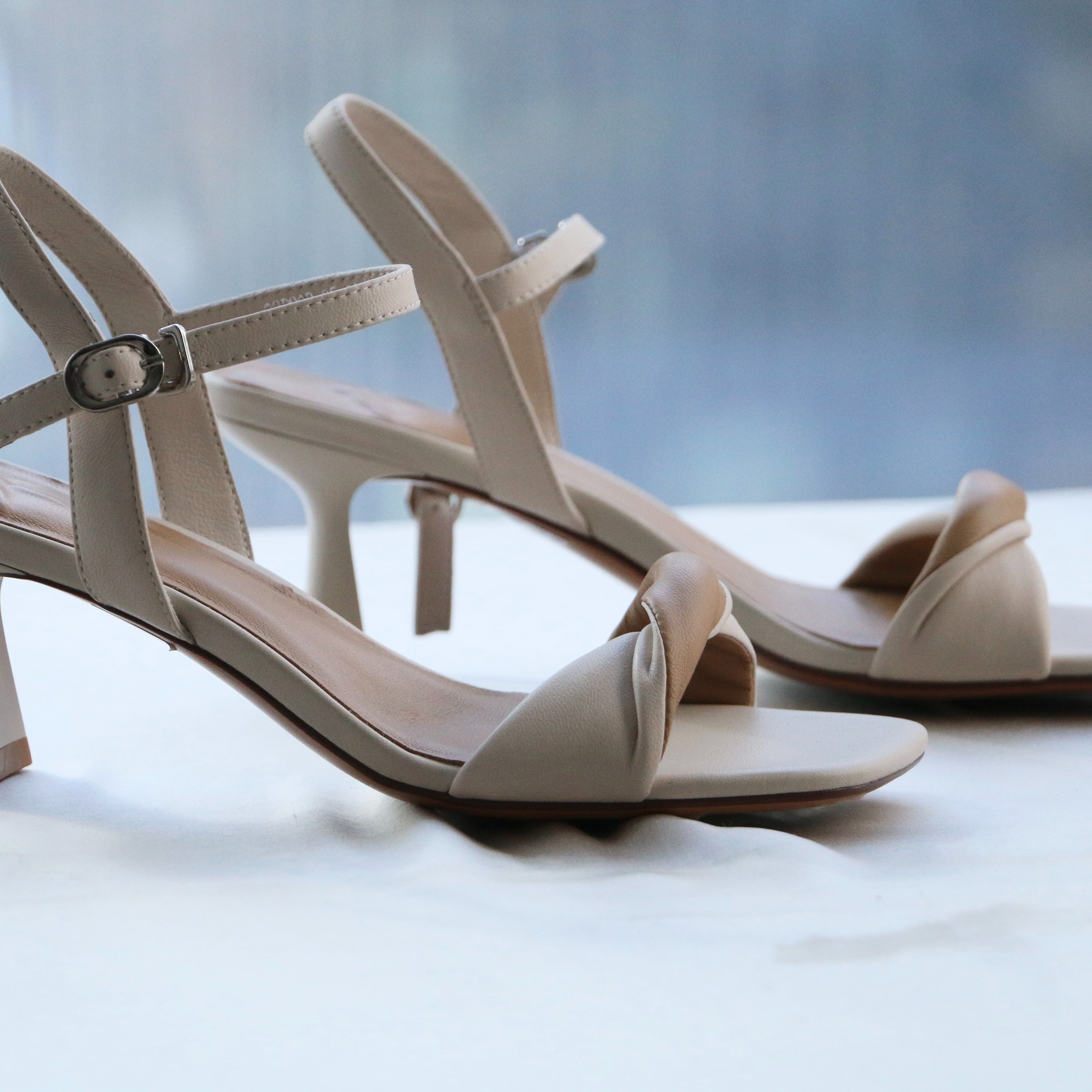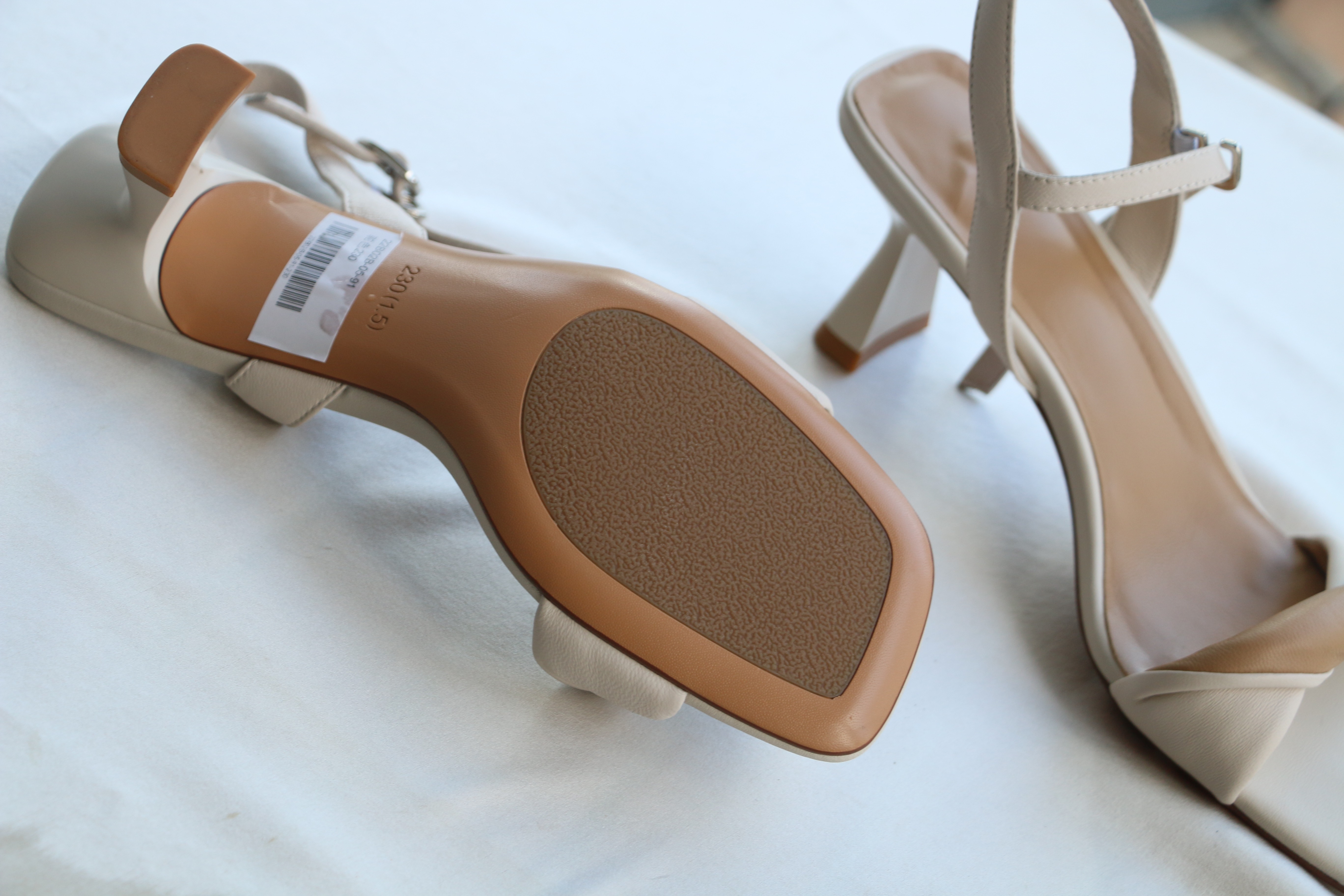 【à perles 】杏色和米白色相间 通勤高跟凉鞋,新增绿色【3-7个工作日】