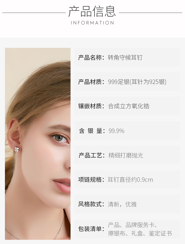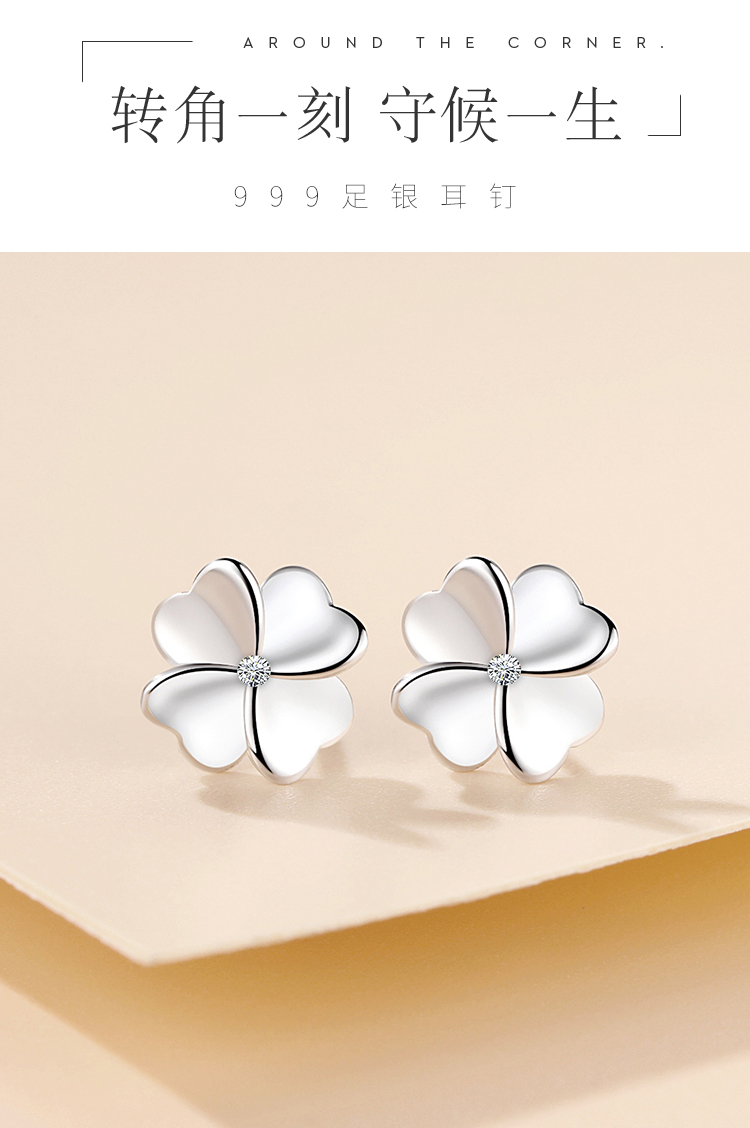 Winy925纯银转角守候耳钉送女友闺蜜节日生日礼物